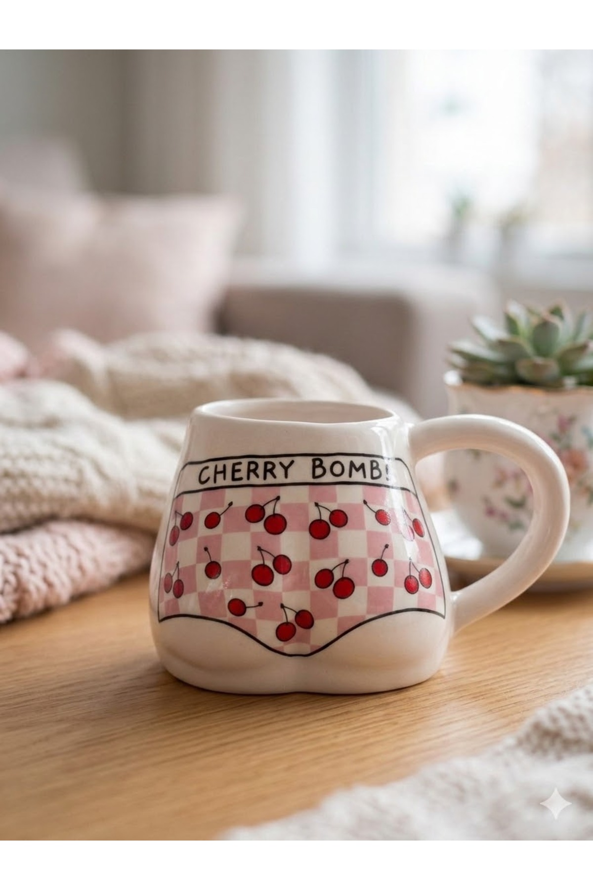 PALTO TASARIM Cherry Bomb! Bikini Handmade White Shiny Butt Mug - Handcrafted Gift Mug Mug | ByTR