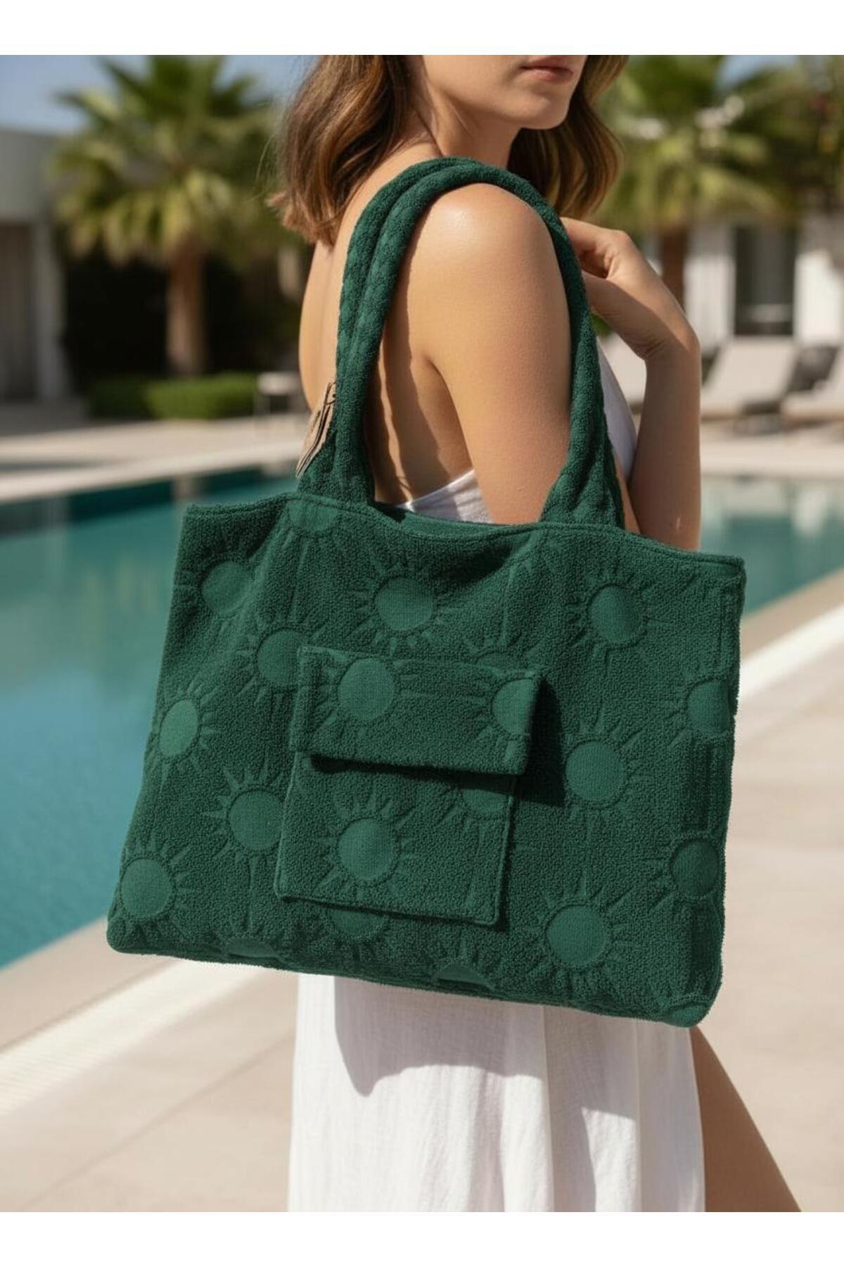 Sun of Anatolia beach bag, a stylish part of the beach textile collection, offers an eye-catching look with its geometric patterns