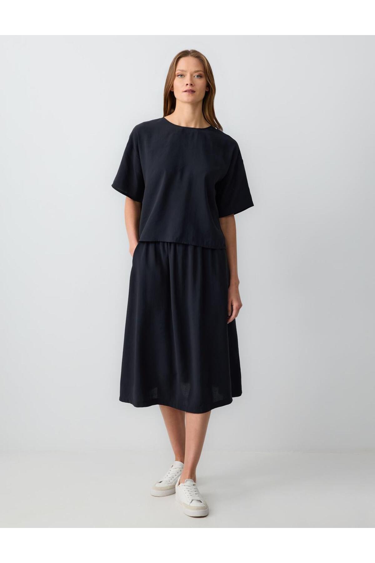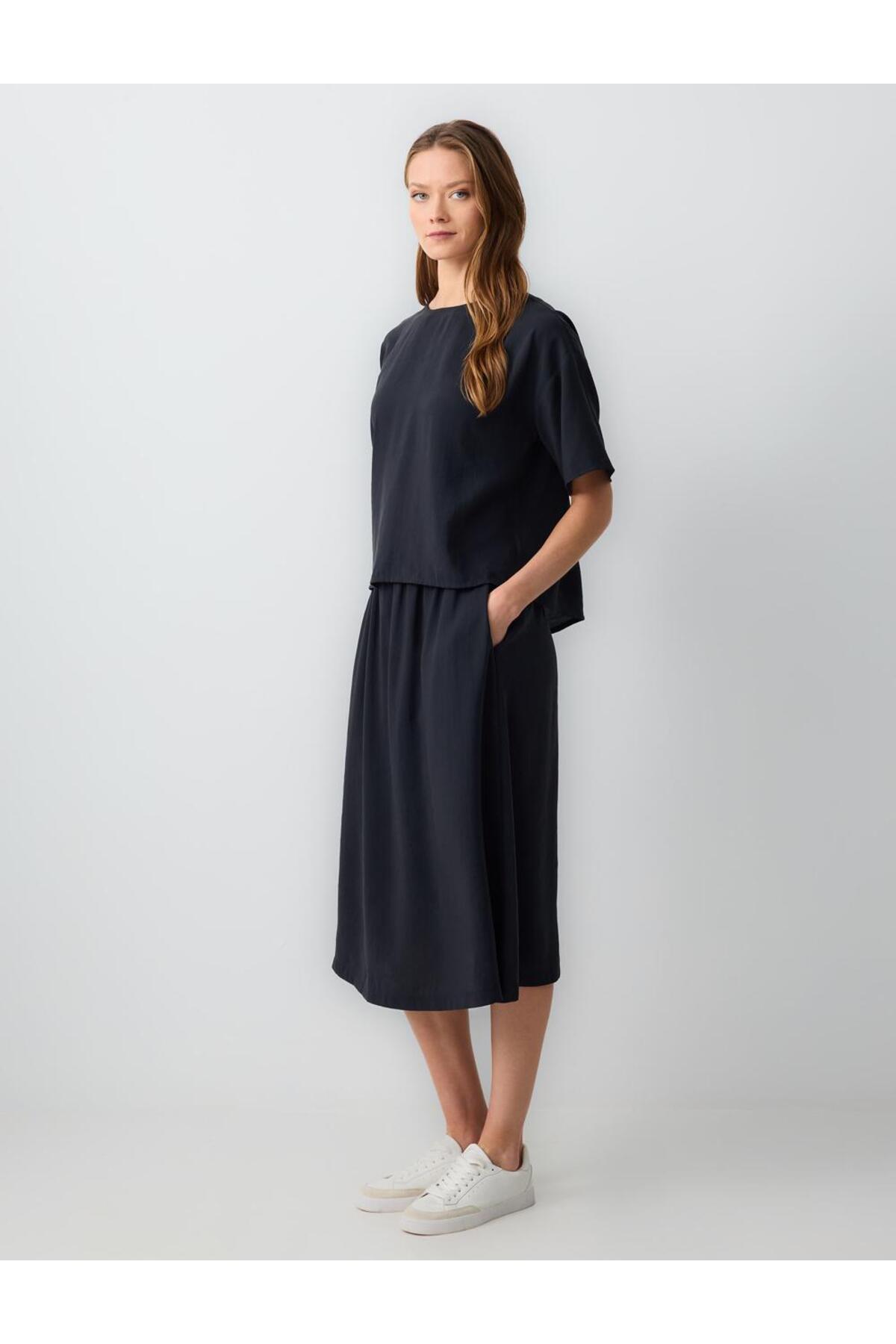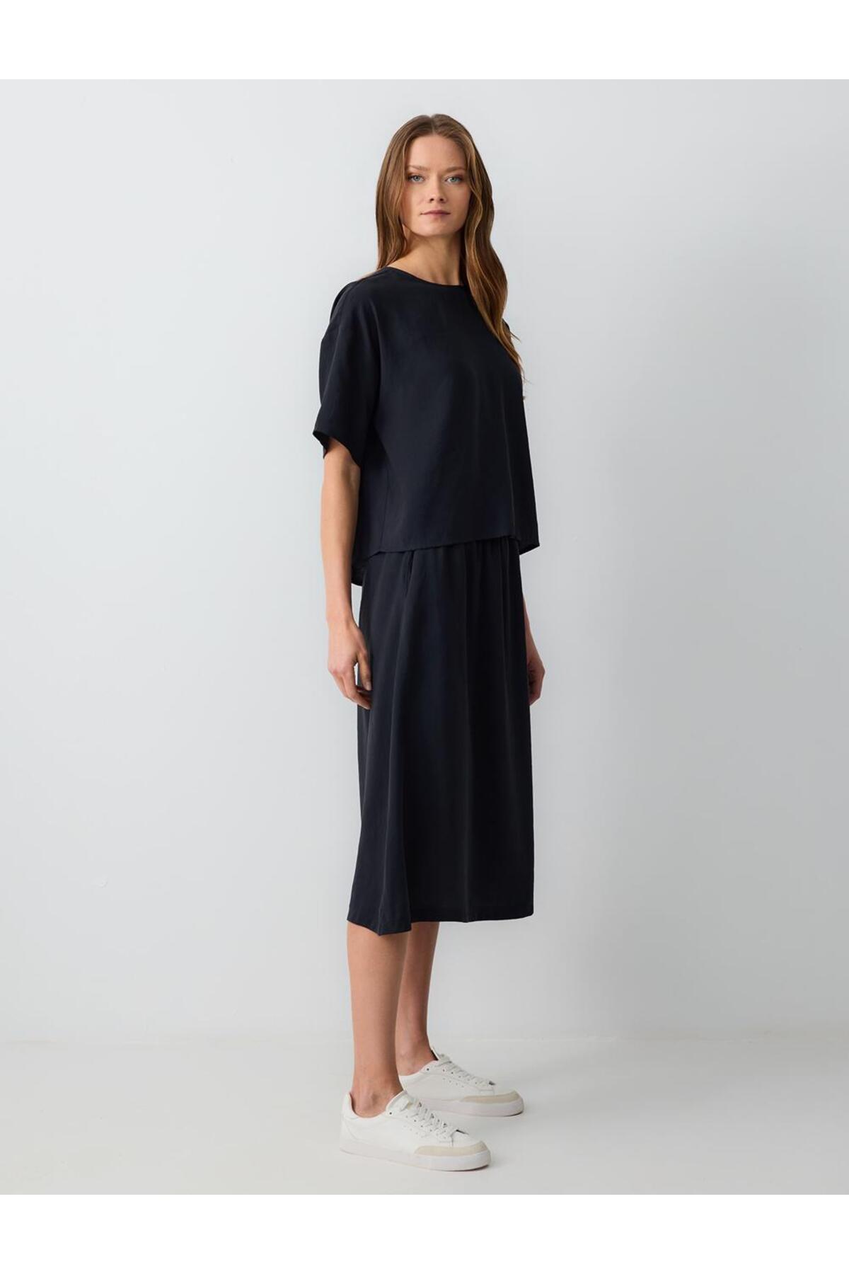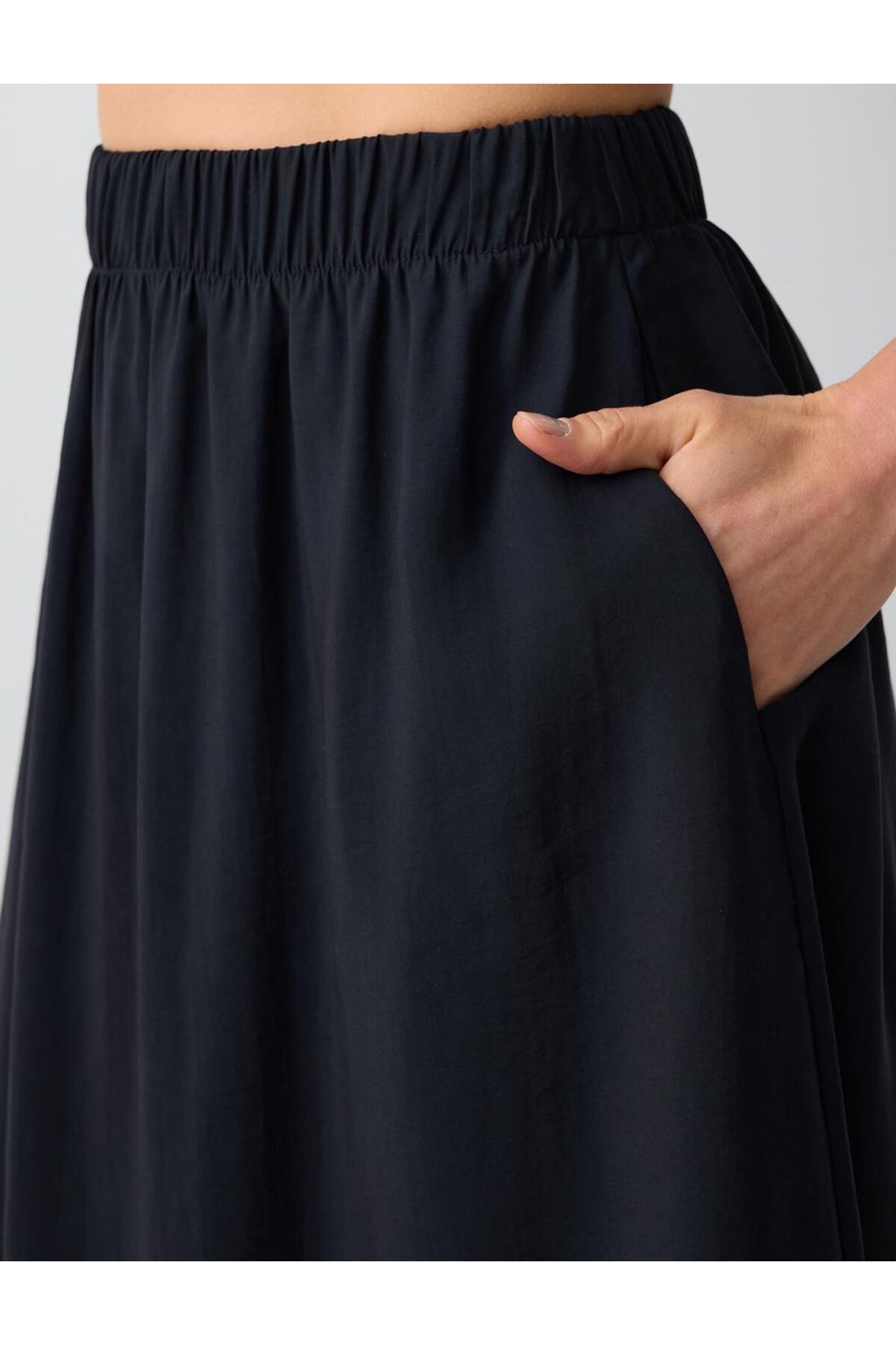 Black High Waist Casual Cut Woven Midi Skirt