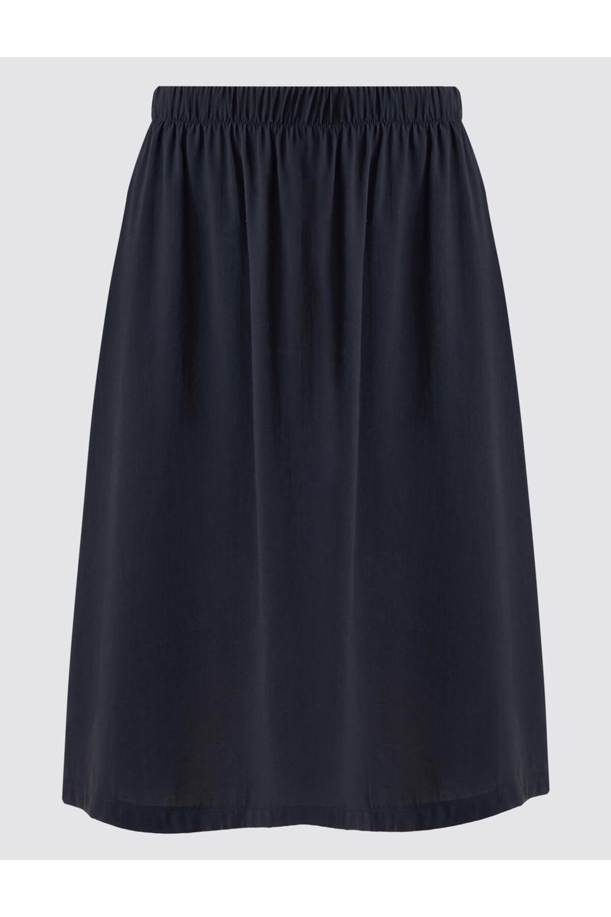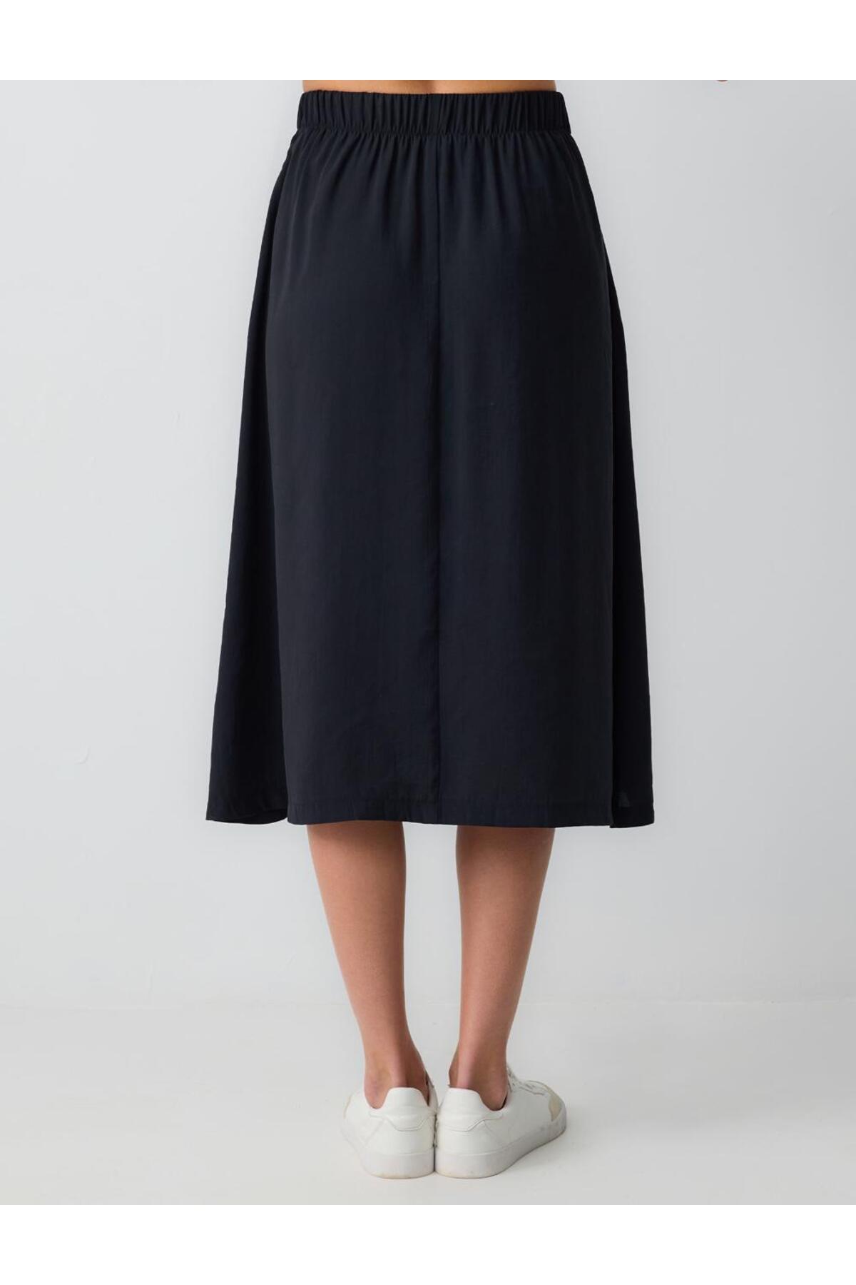 Jimmy Key Black High Waist Casual Cut Woven Midi Skirt | ByTR