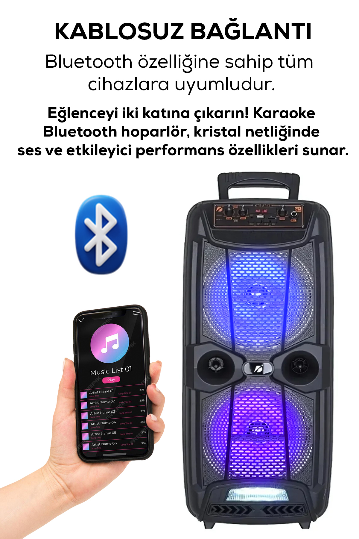 Arfseb Bluetooth Karaoke Speaker Portable Party Speaker with RGB Light Microphone Powerful Bass USB aux | ByTR
