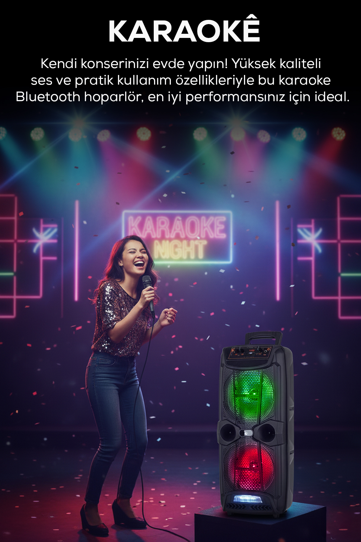 Bluetooth Karaoke Speaker Portable Party Speaker with RGB Light Microphone Powerful Bass USB aux