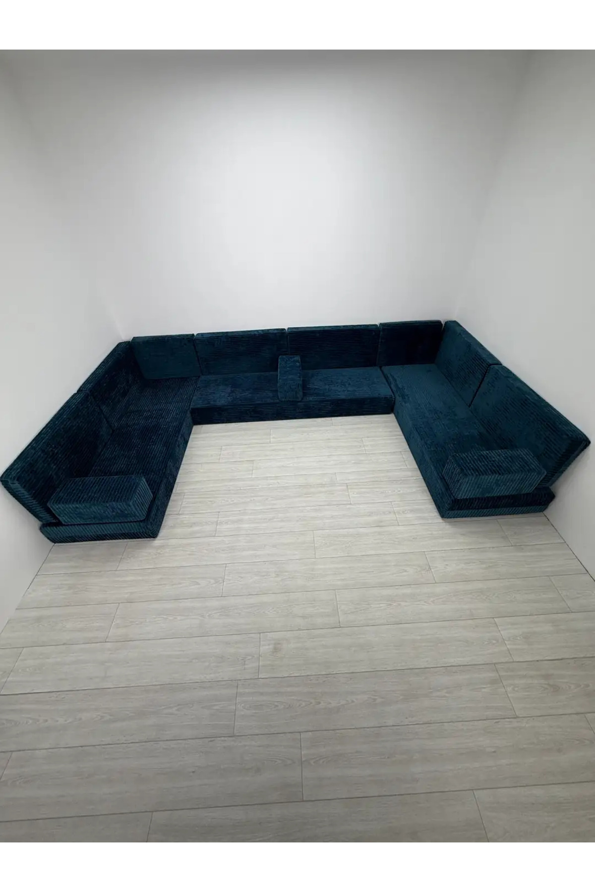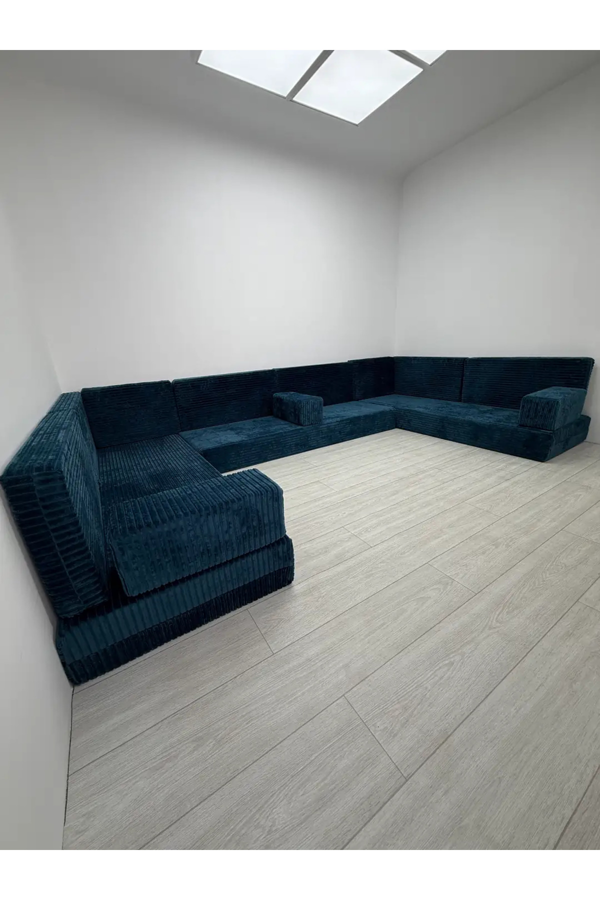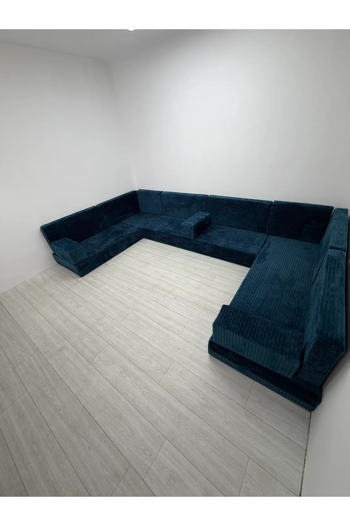BAKIRÖZÜ HOME Premium Velvet Fabric, Comfort Floor Sofa ,Modular Oriental Corner Set - Blue-U SET | ByTR