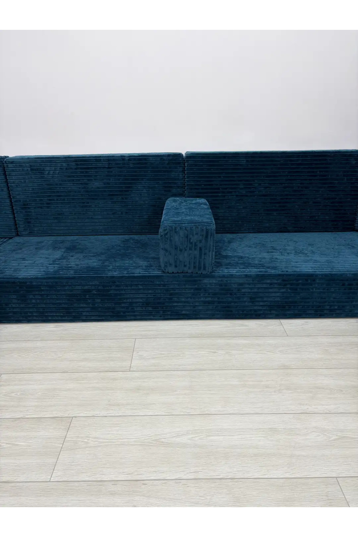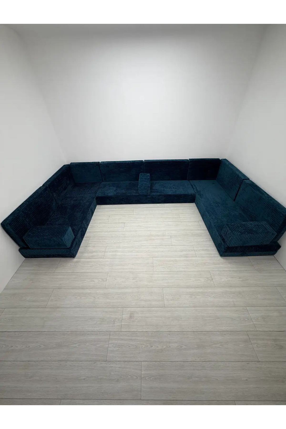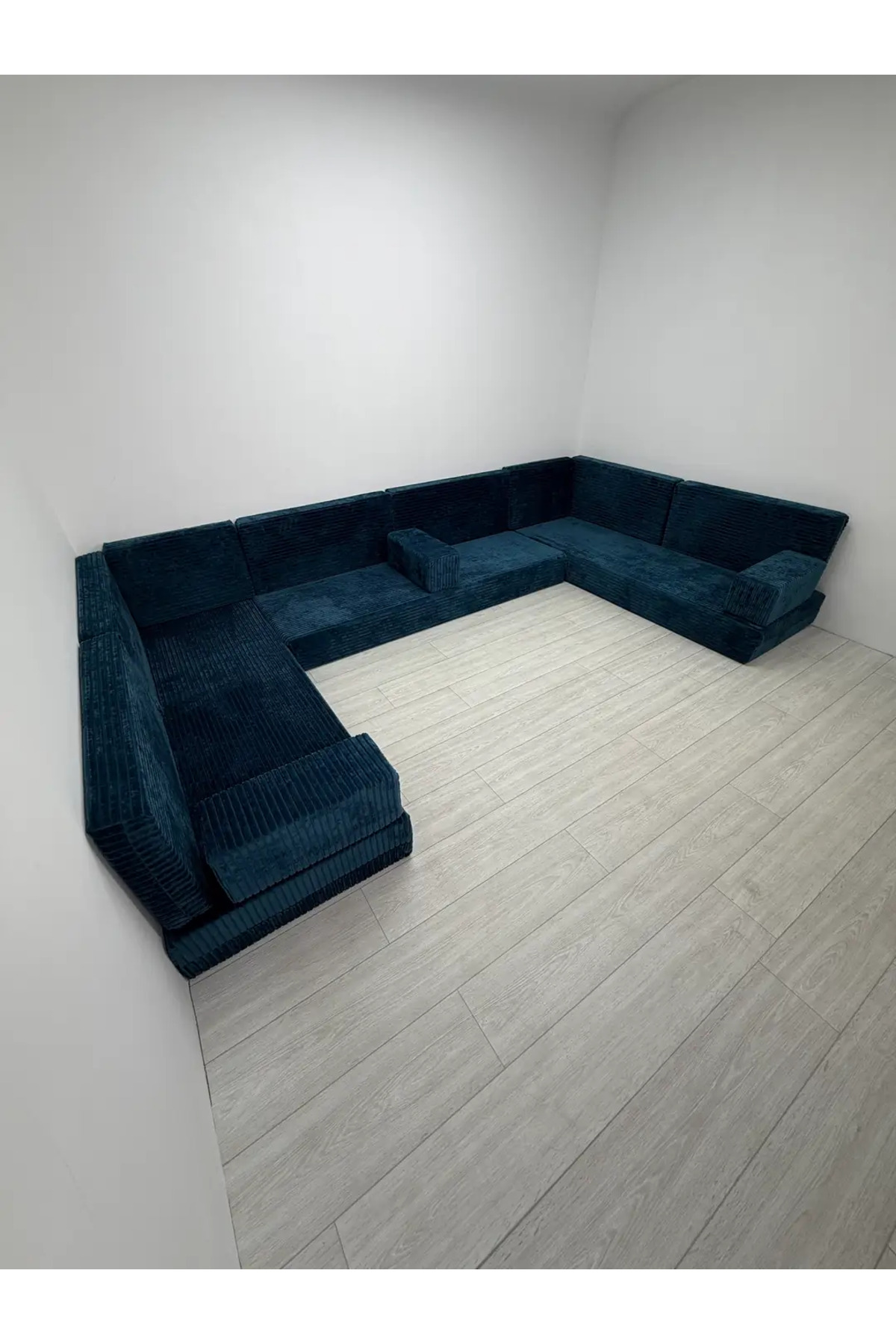 BAKIRÖZÜ HOME Premium Velvet Fabric, Comfort Floor Sofa ,Modular Oriental Corner Set - Blue-U SET | ByTR