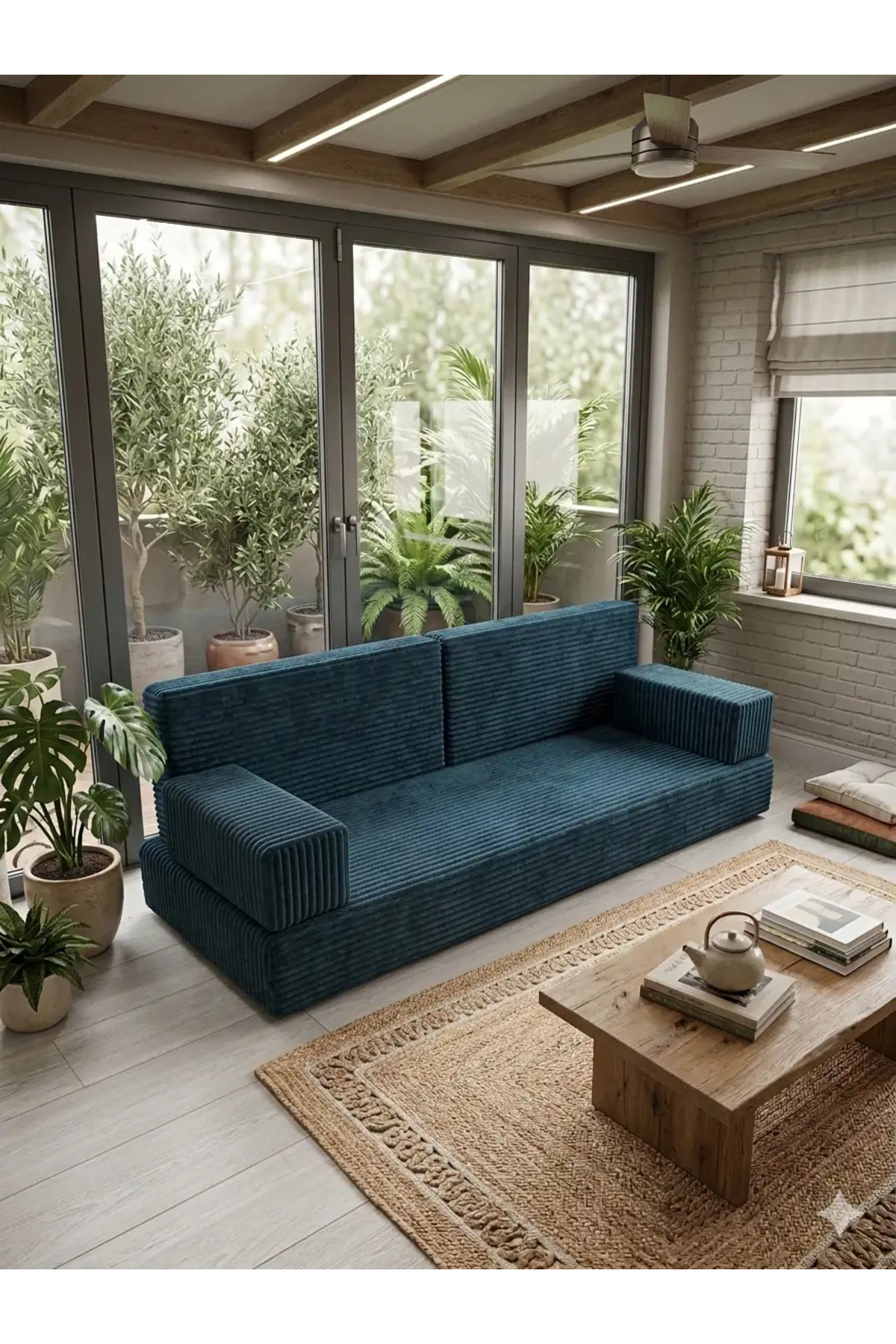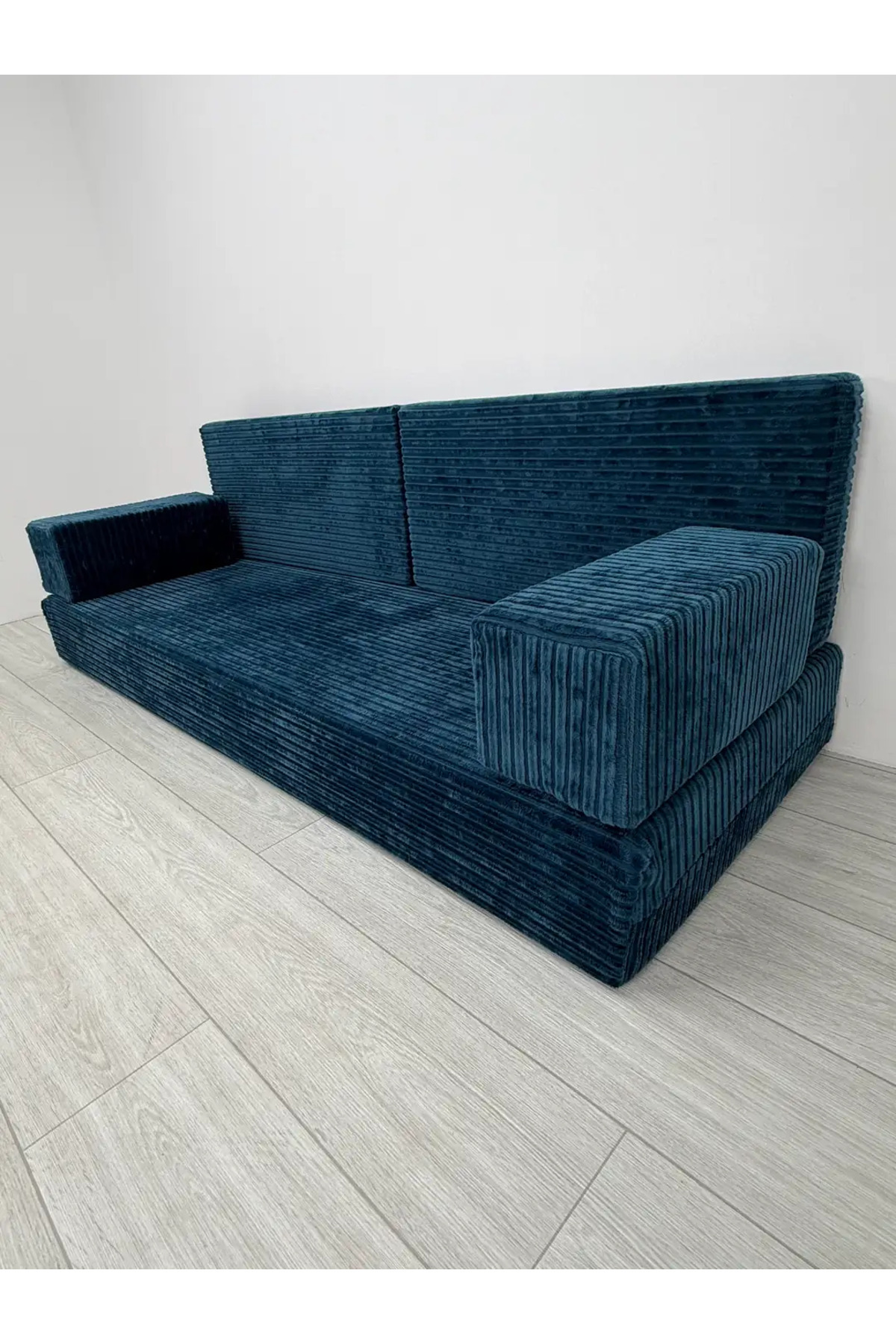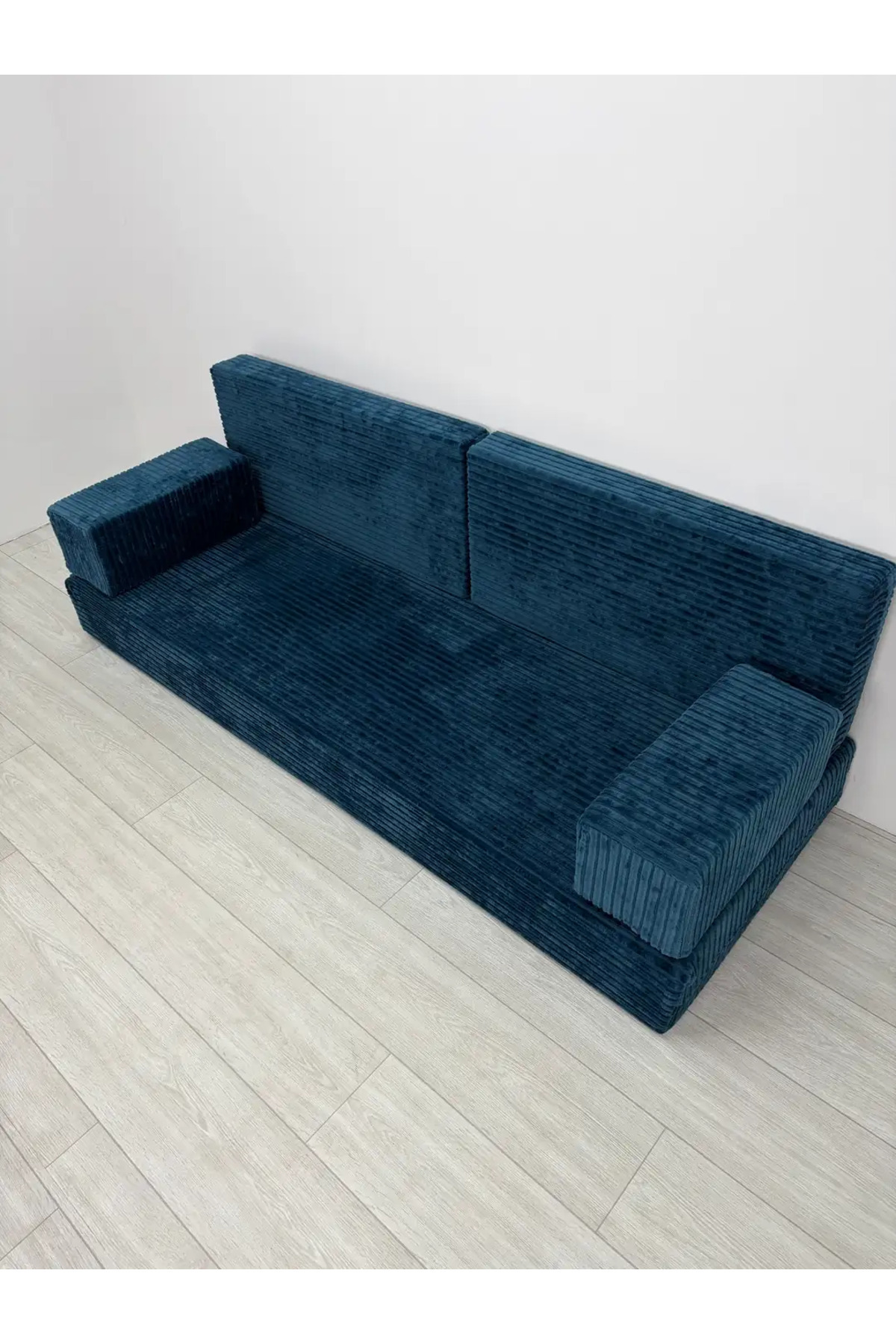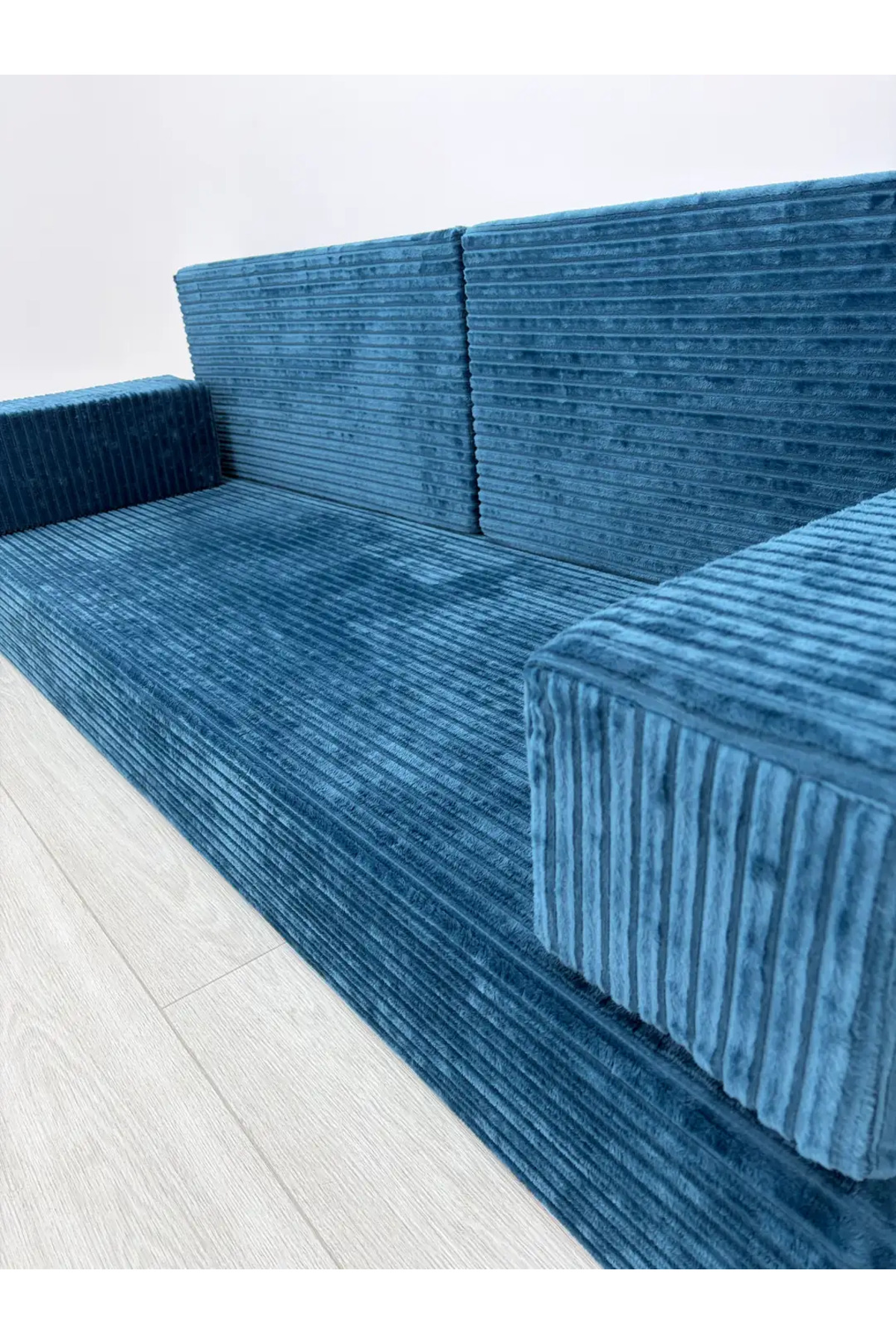 BAKIRÖZÜ HOME Premium Corduroy Fabric, Modular Leisure Chair , Floor Mattress and Sofa Set - Blue | ByTR