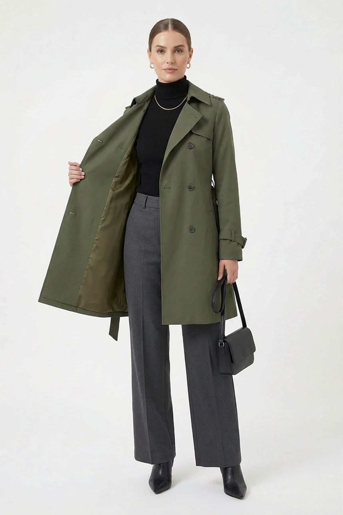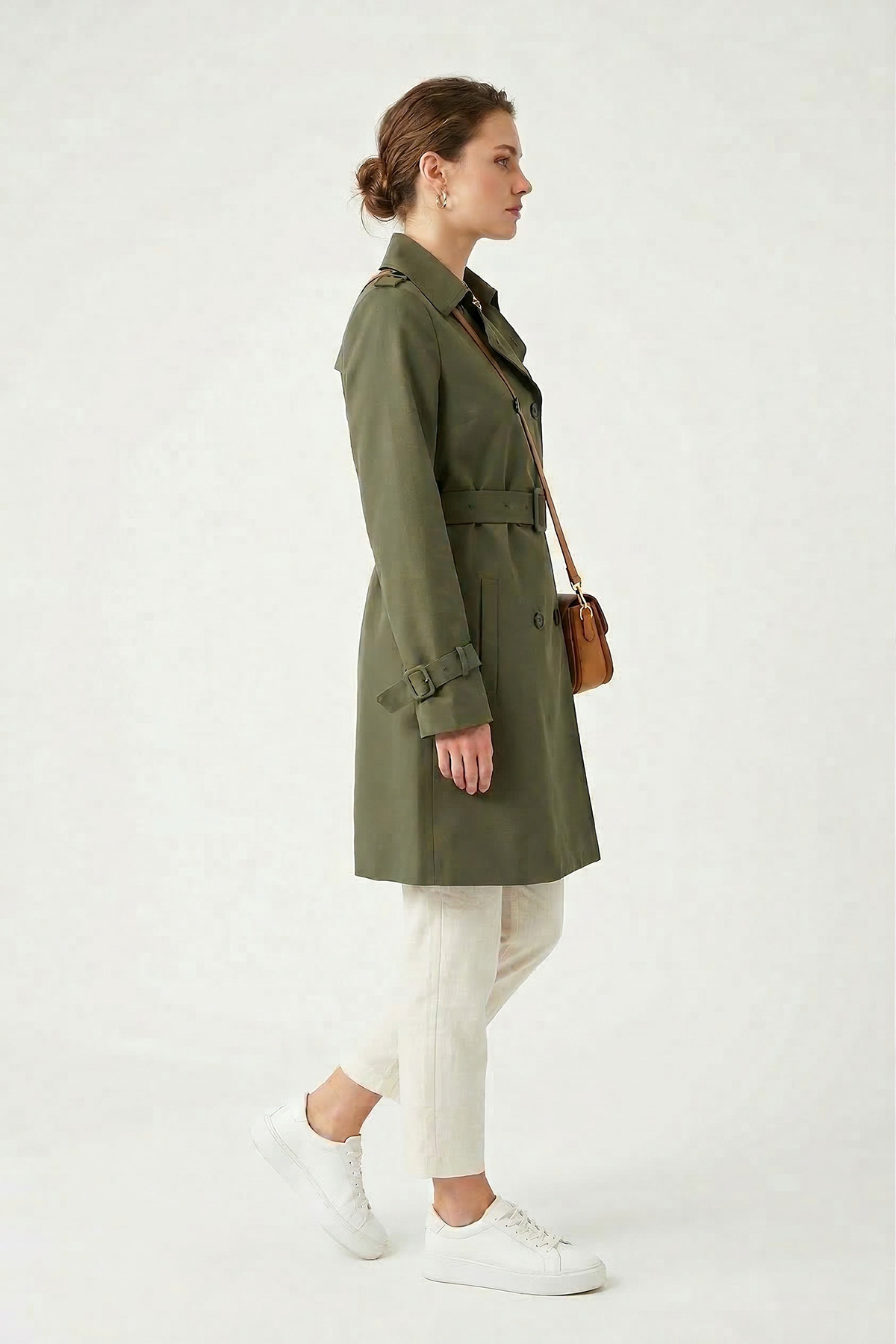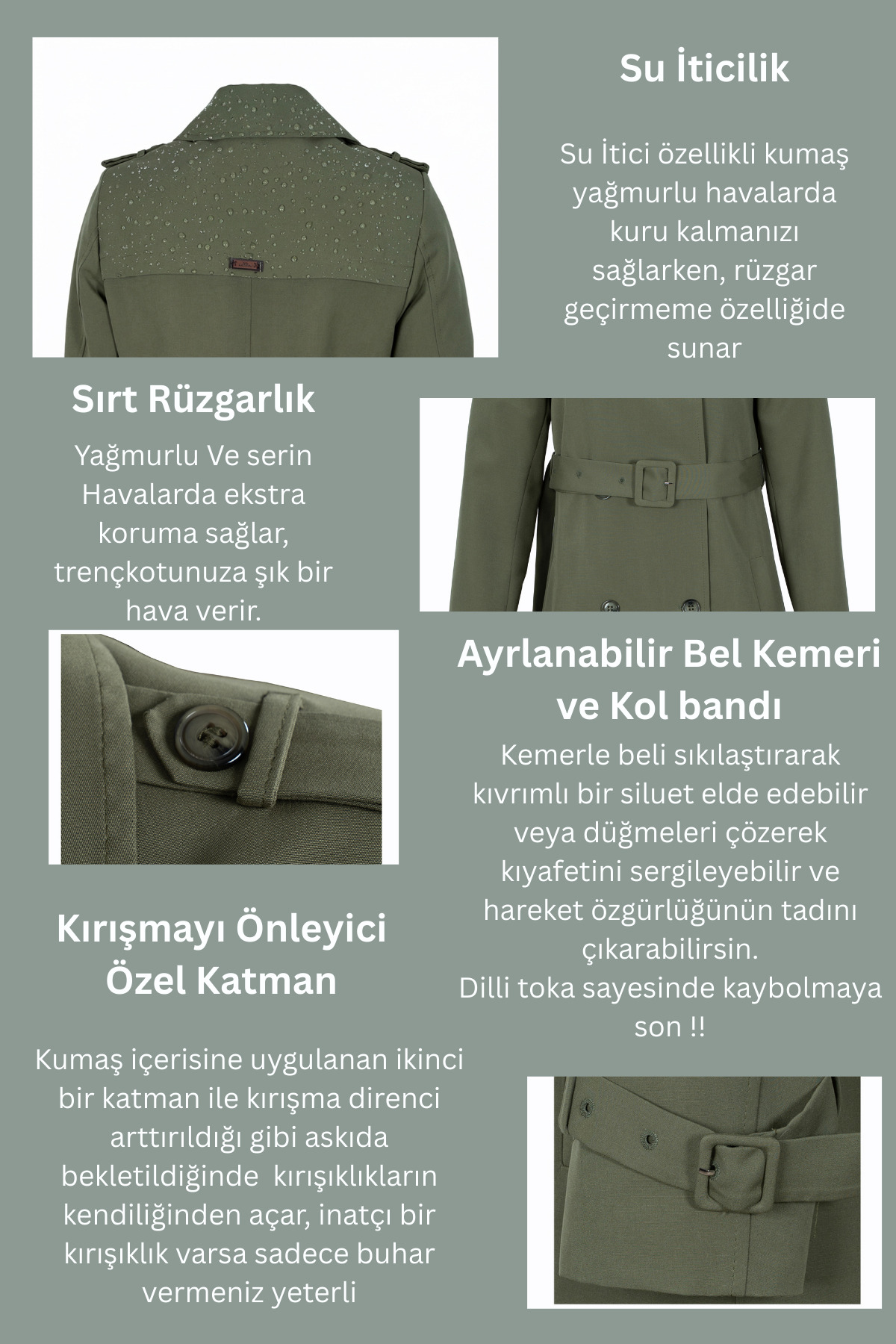 Soydan Güner Water Repellent Anti-Wrinkle Fabric Trench Coat Khaki 5840 | ByTR