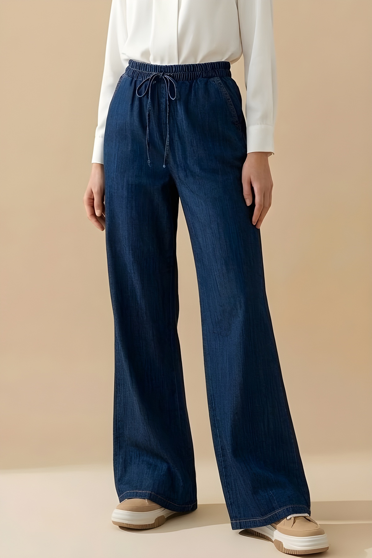 İmajButik Navy Blue Elastic Waist Palazzo Jeans | ByTR