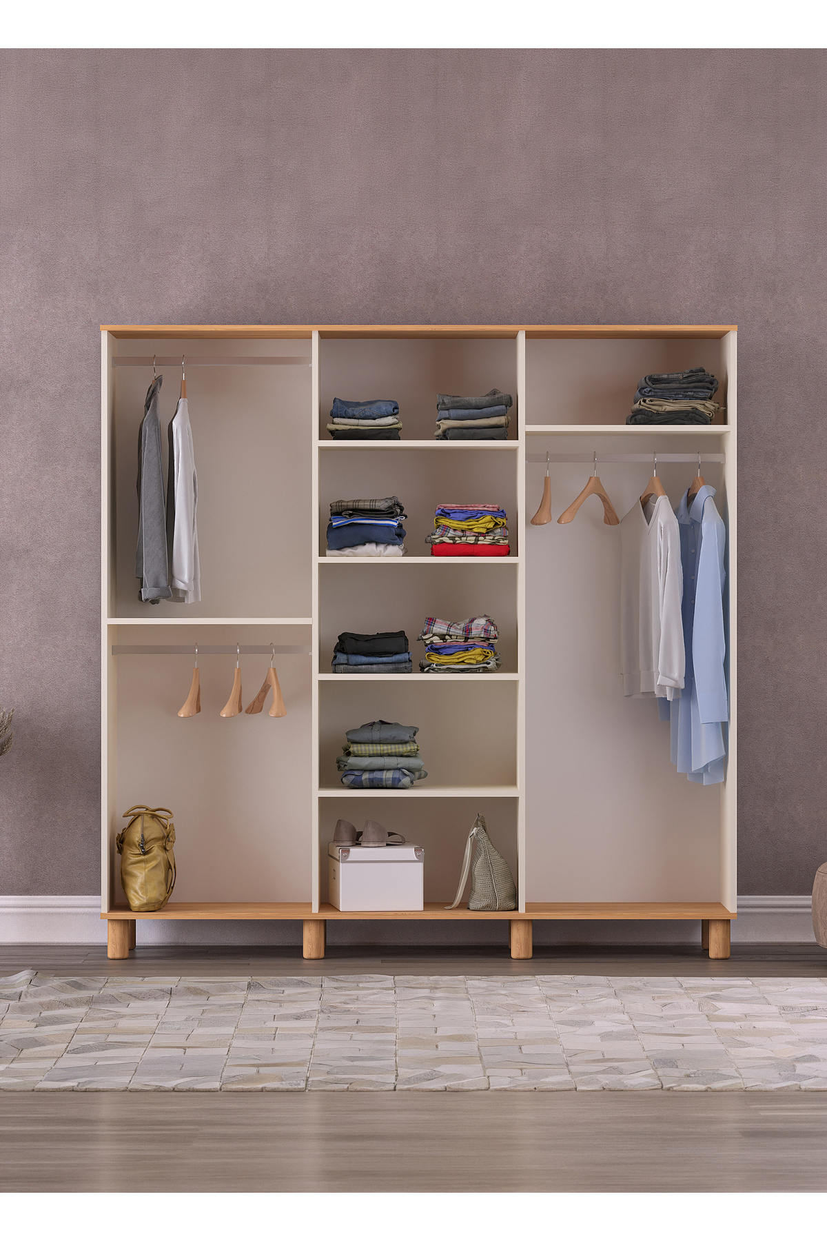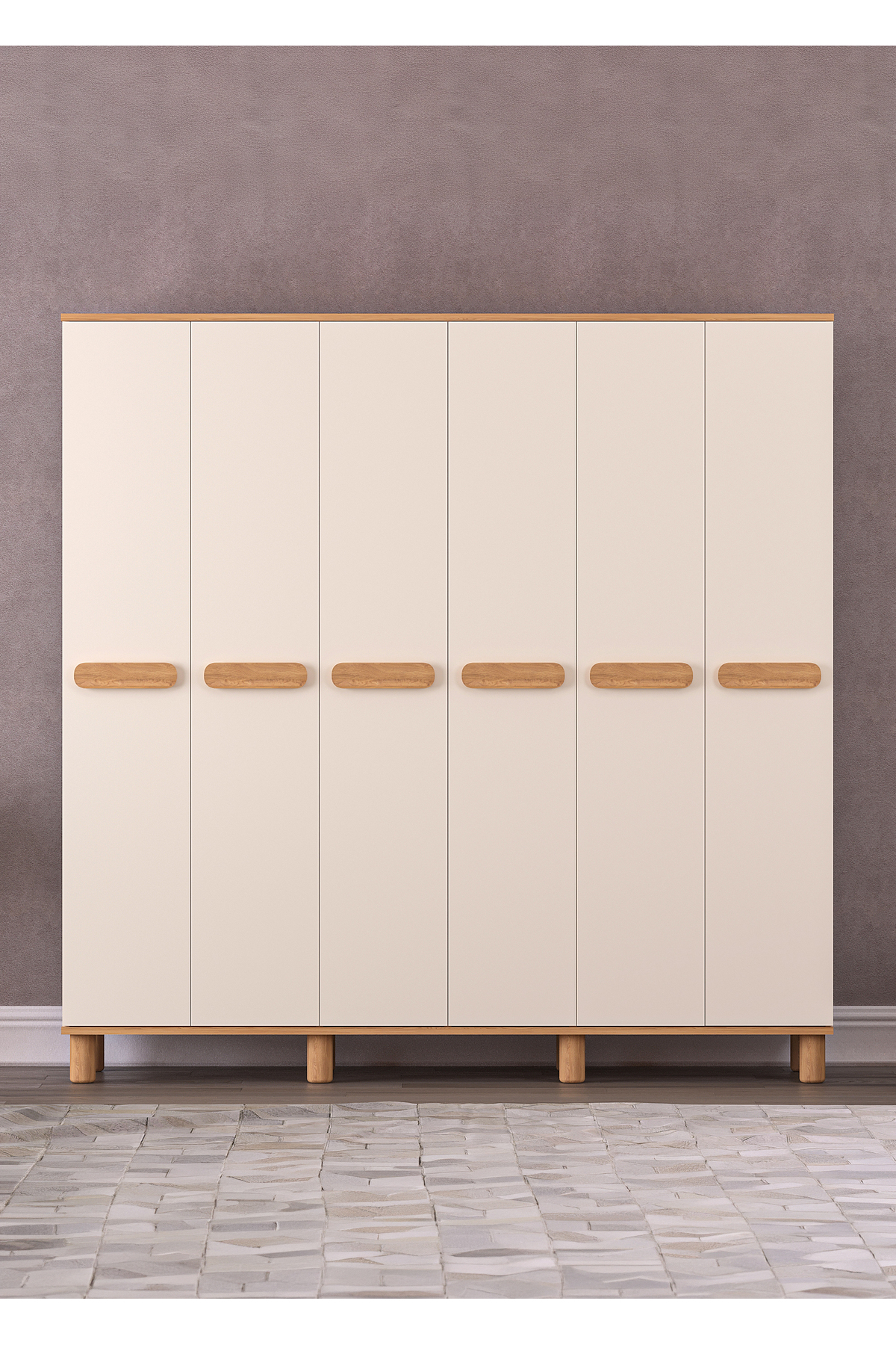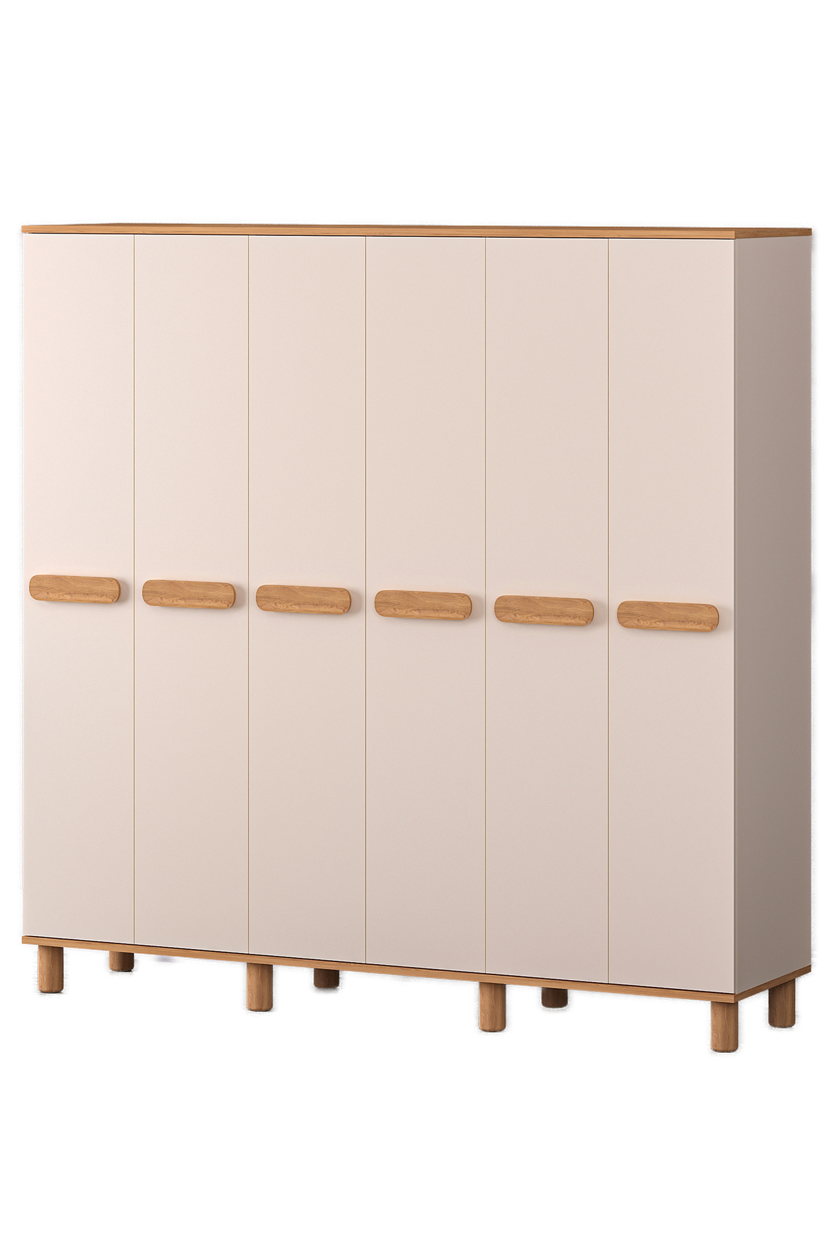 Mila 6 Lid Moonstone - Oak Wardrobe (Bohemian Feet) A stylish touch that will bring freshness and order to your home! Refresh the atmosphere of your living spaces with its modern lines, heartwarming moonstone color and warm oak details.