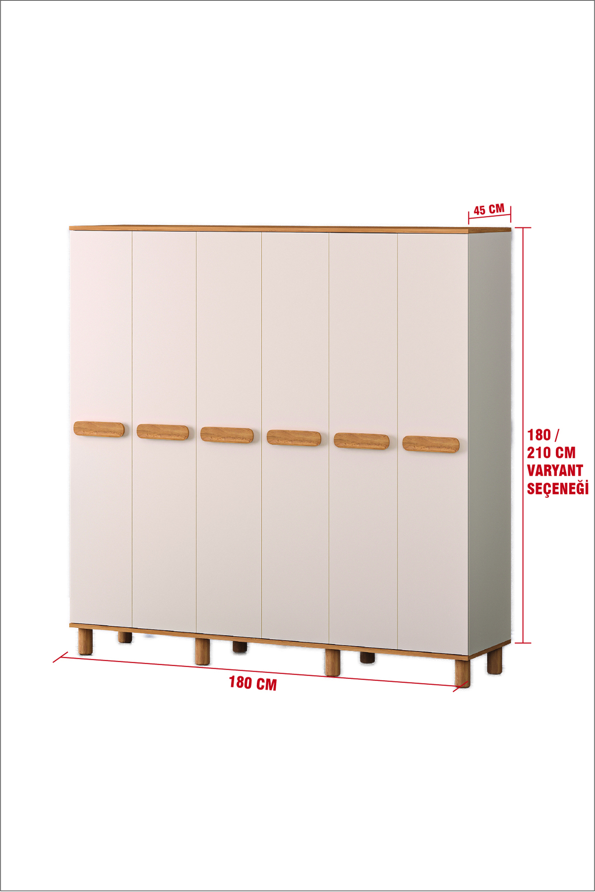 Product Dimensions: • Height: 180 cm / 210 cm (Variant) • Width: 180 cm • Depth: 45 cm Technical Specifications and Material Quality: • Body and Cover Material: 1. Quality 18 mm thick chipboard was used.