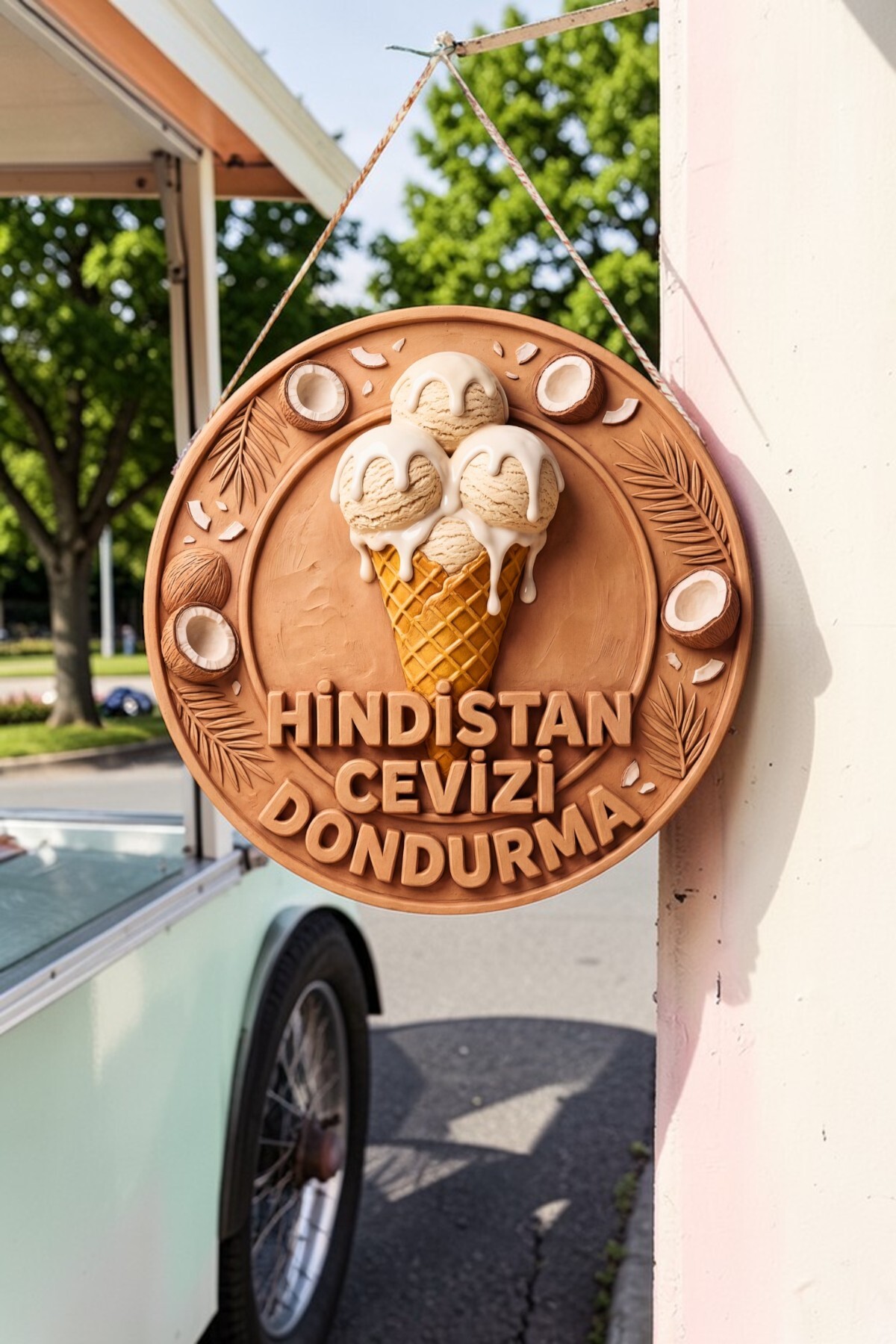 How about a sweet and chirpy touch to your space or home? Designed with vibrant color tones, appetizing cone detail and fresh Coconut ice cream visuals, this Ice Cream-themed round wooden board will bring the energy of summer wherever it is hung! Thanks to its high-resolution printing with 3D (embossed) effect, it attracts attention even from afar.