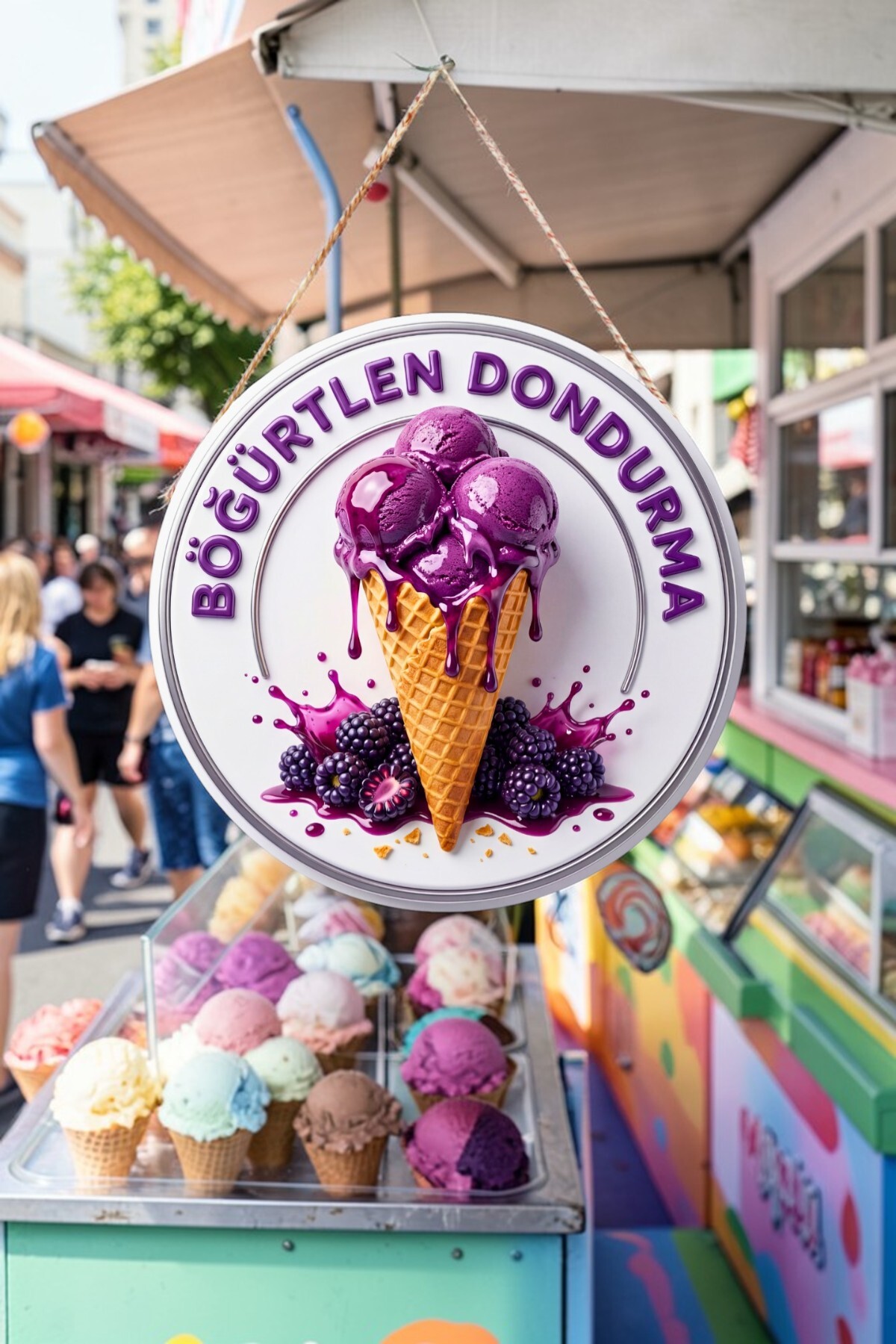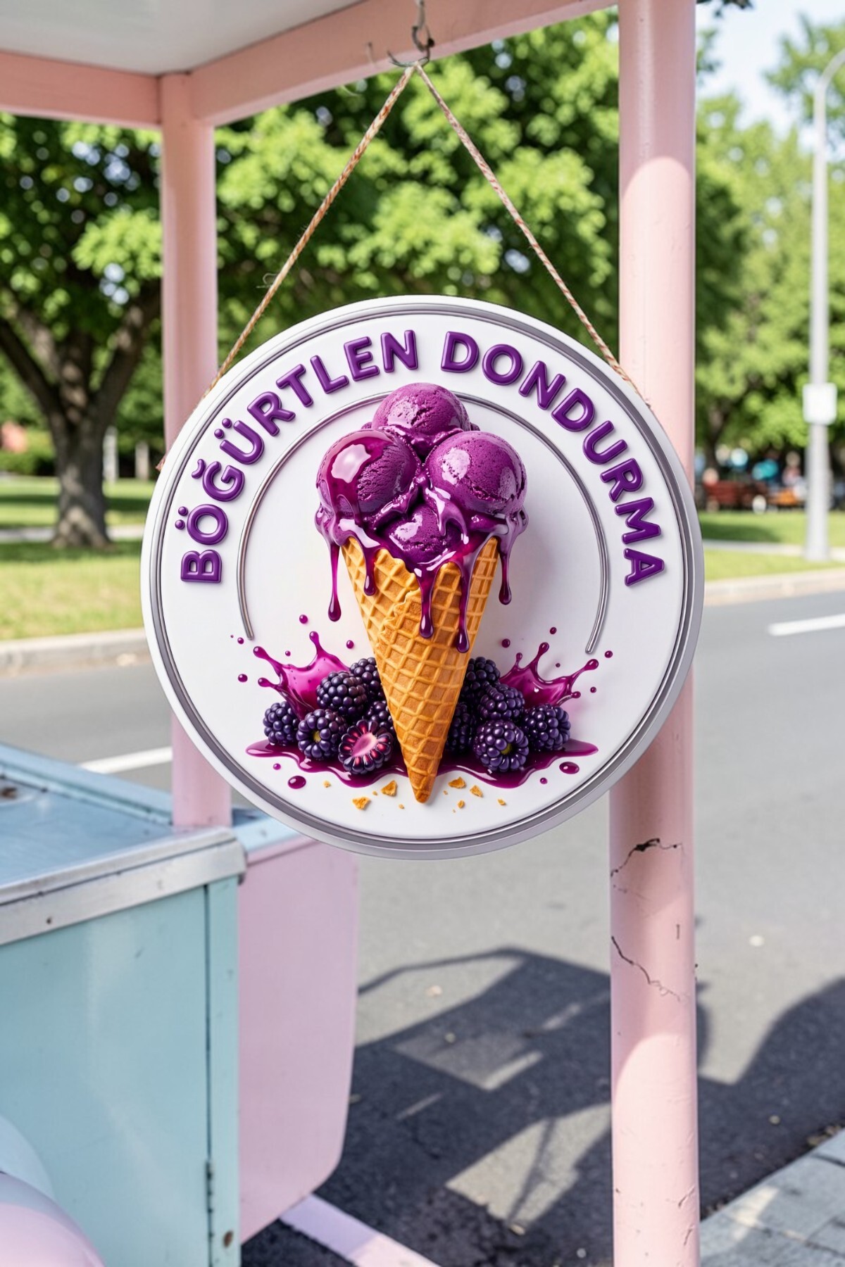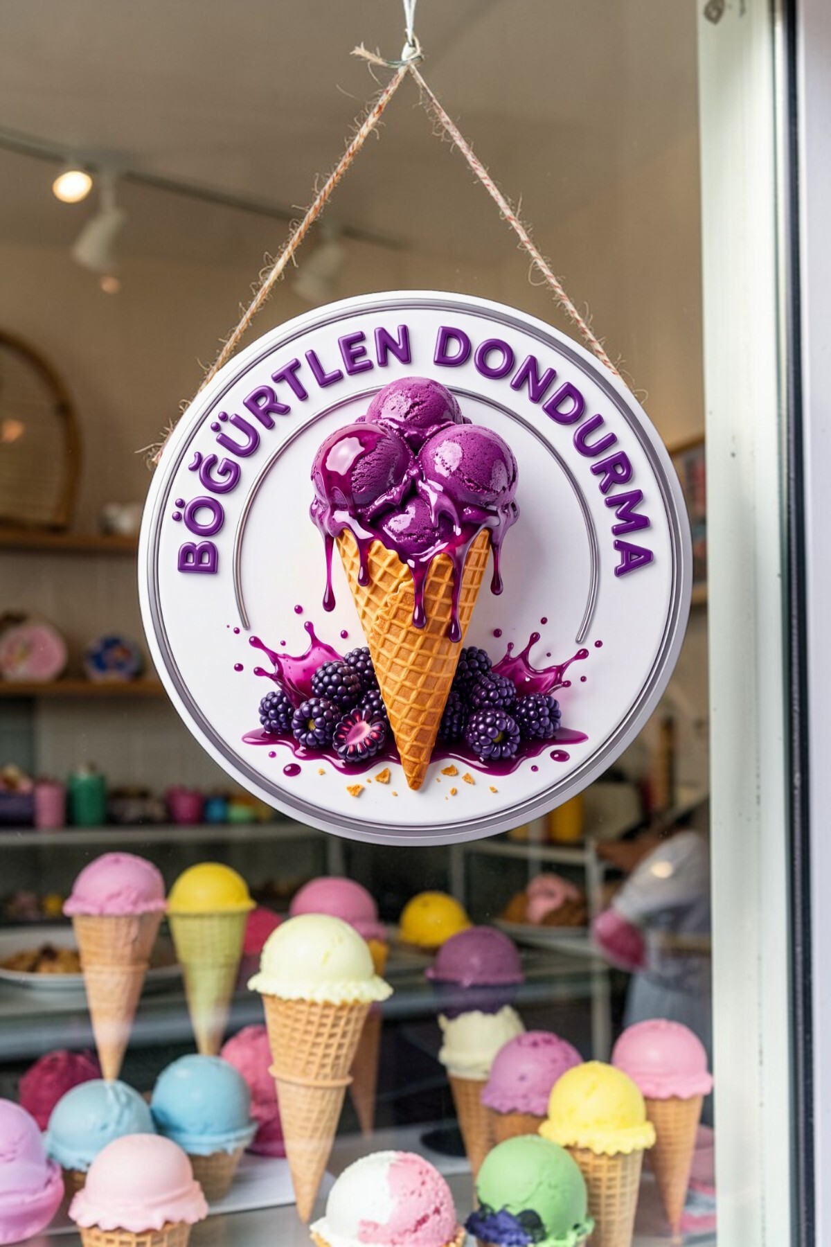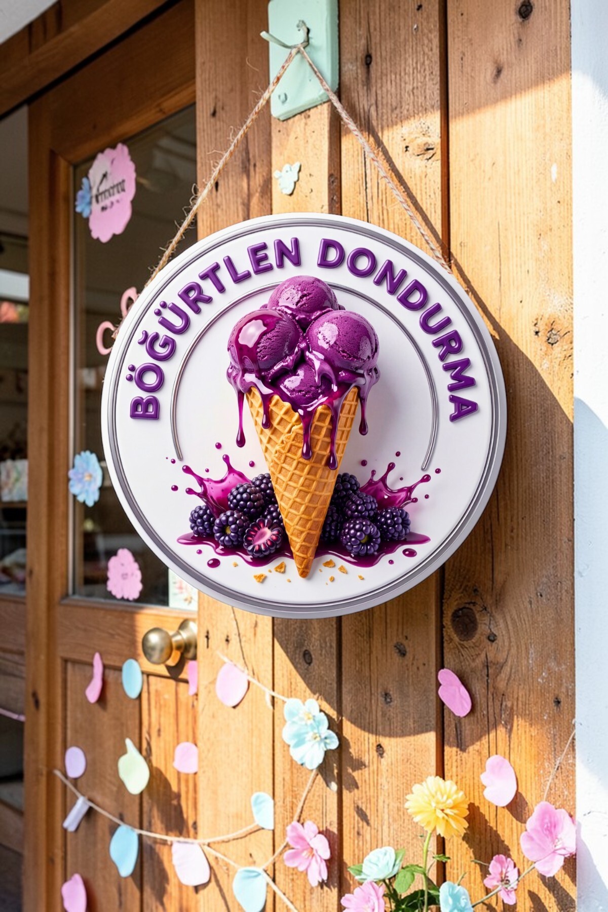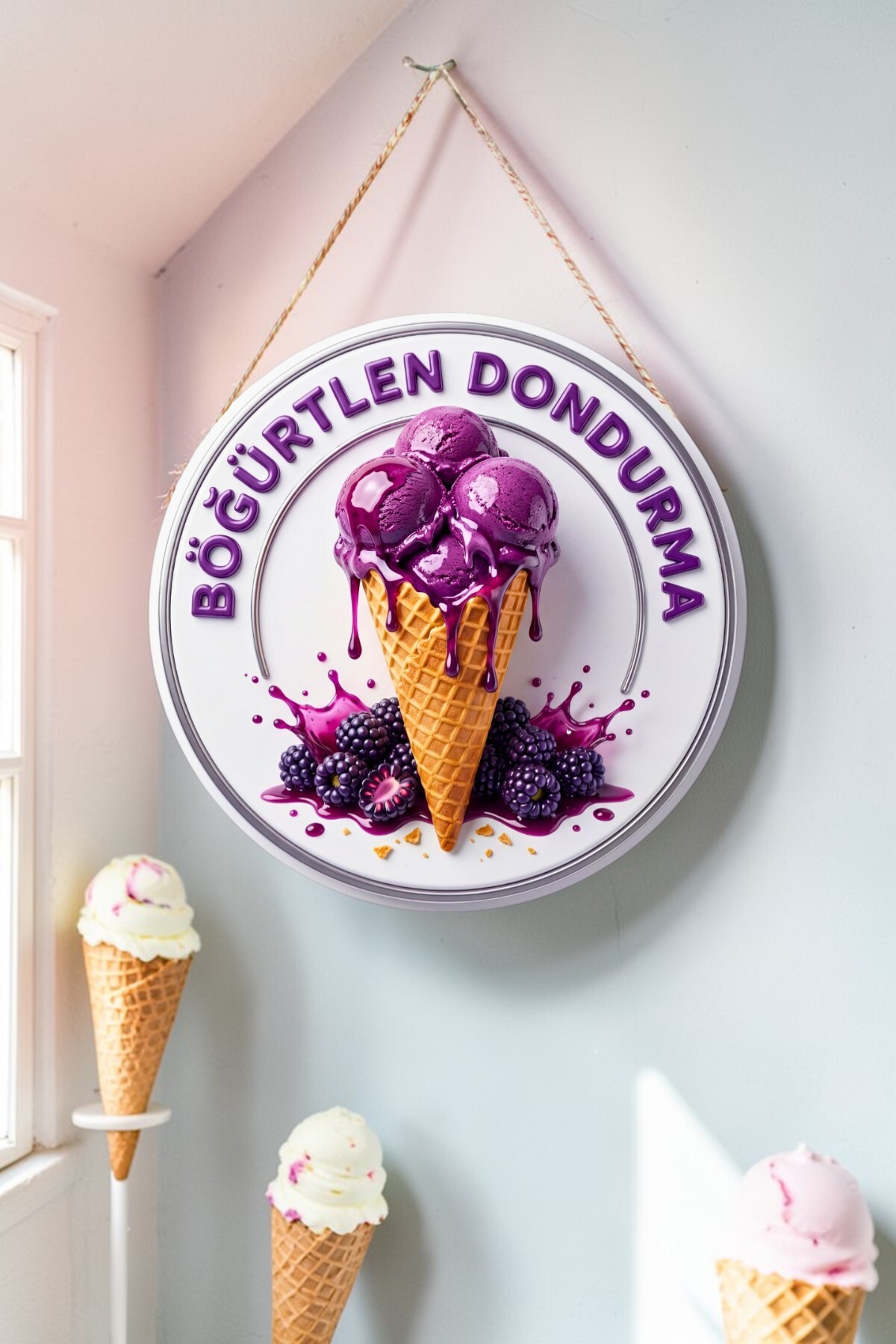 Nod Blackberry Ice Cream Visual Drawstring Wooden Door and Wall Ornament, Cafe, Ice Cream Shop Sign, Dessert Shop Decor | ByTR