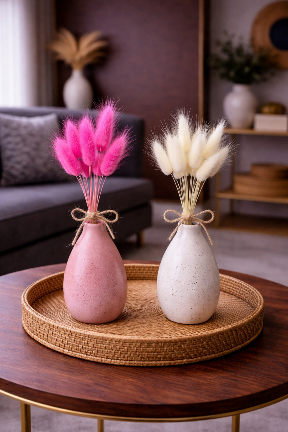 🌿 Product Features Product Type: Shocked flower / Preserved flower Plant Type: Lagurus Ovatus (Bunny Tail Grass / Rabbit Tail Grass) Color: Pink-White Length: 30-40 cm Quantity: 2 Bundles 10 Branches Double Color (Total 20 branches) Usage: Vase decor, home decoration, wedding and organization decor Care: Water-free, long-lasting 🏡 Usage Areas Living room and living room decoration Office and table top decor Wedding, engagement and promise organizations Photo shooting decorations Minimal and bohemian style decorations ✨ Why This Product? ✔ Natural and aesthetic appearance ✔ Long-lasting shocked flower Ideal for ✔ modern and bohemian decoration ✔ Natural Lagurus Bunny Tail Grass Decorative use for ✔ home, office and organizations 🛒 Note: Since the product is 100% natural, the number, length and density of branches may vary slightly.
