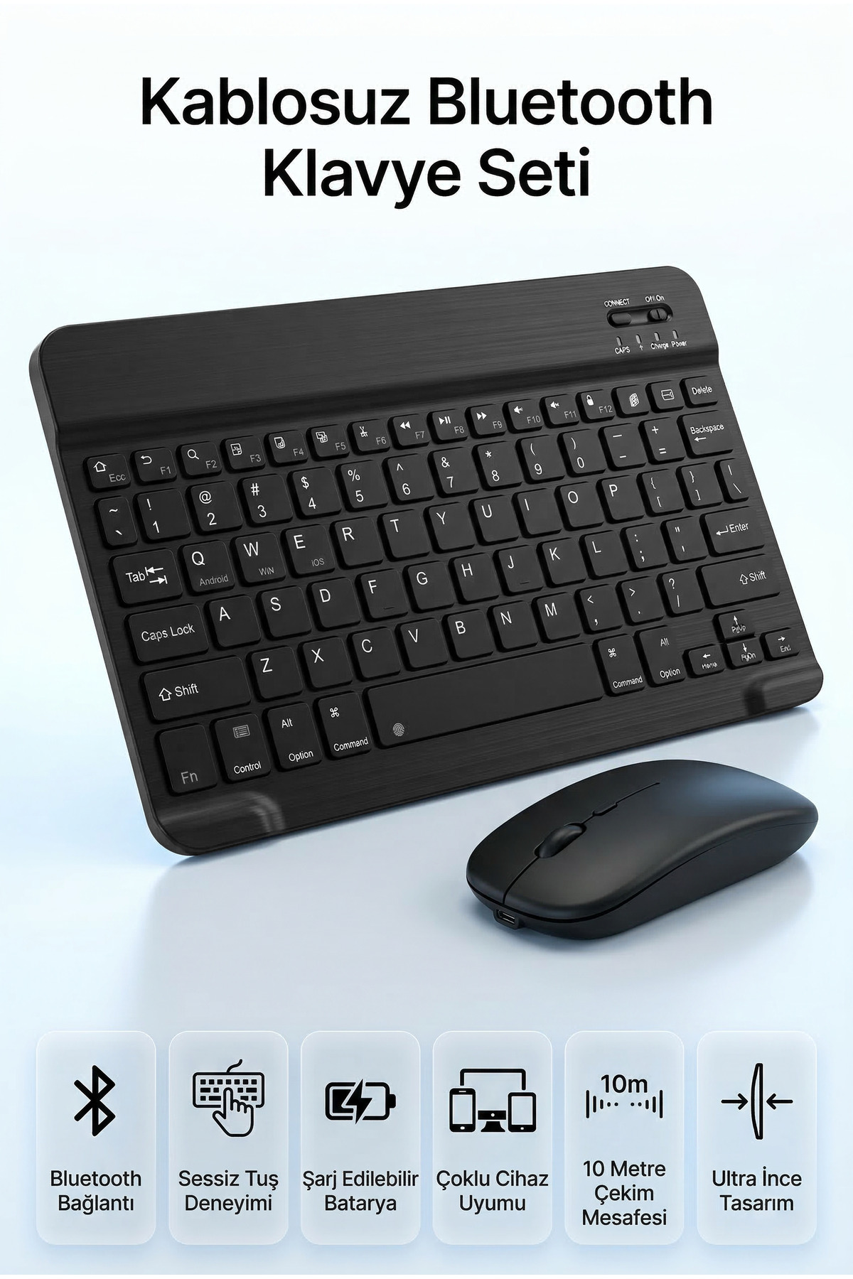 Arfseb Wireless Keyboard Mouse Set Phone Tablet and PC Compatible Wireless Silent Slim Design- Black | ByTR