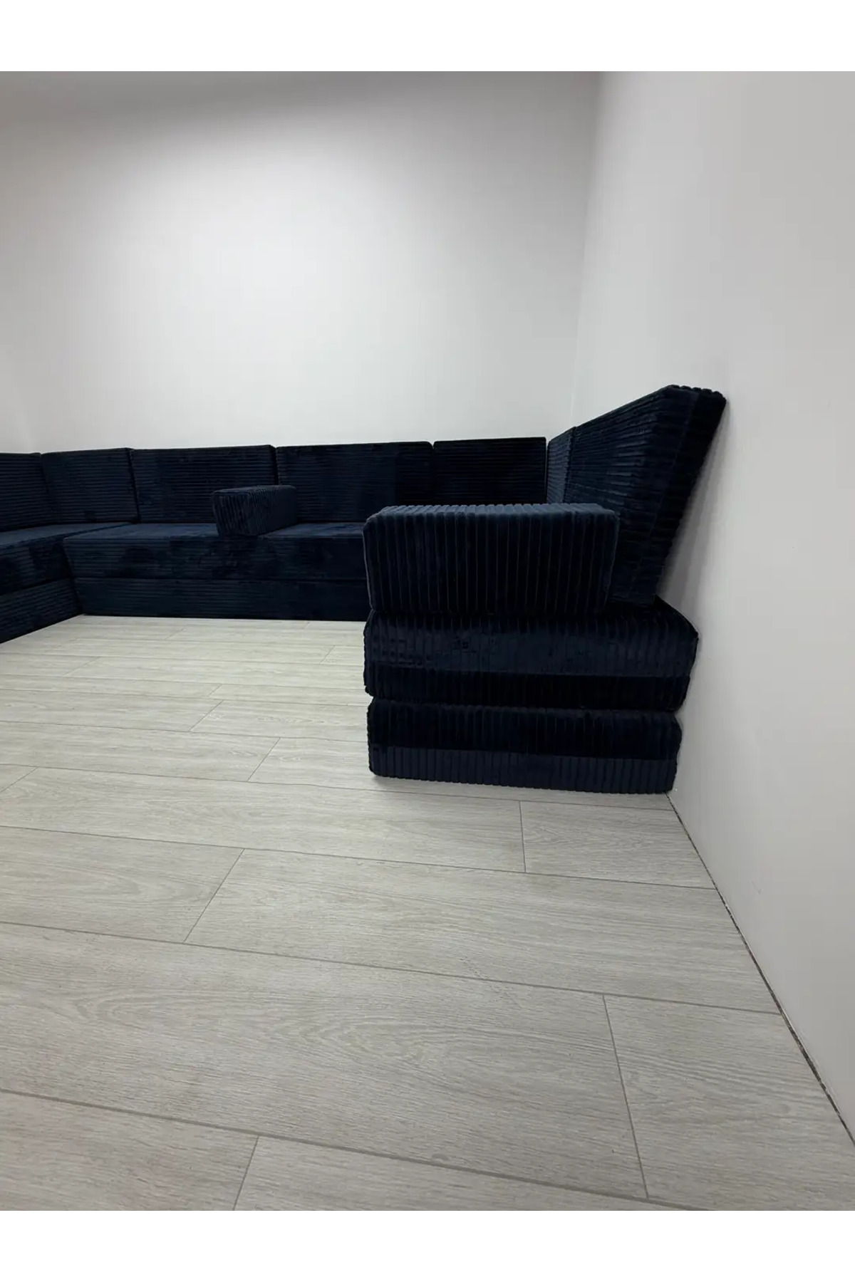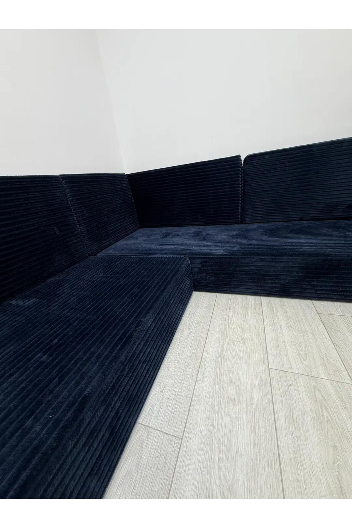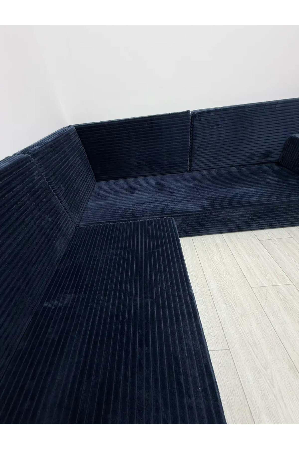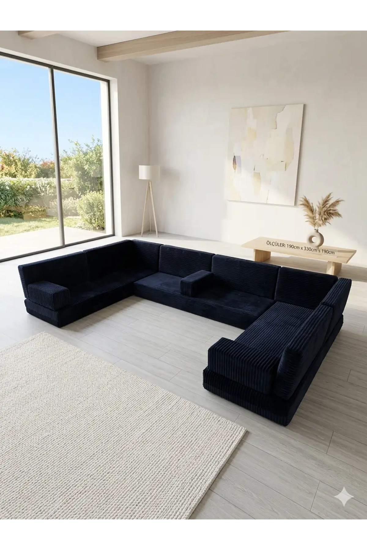 BAKIRÖZÜ HOME Premium Velvet Fabric, Comfort Floor Sofa ,Modular Oriental Corner Set - Navy- U SET | ByTR