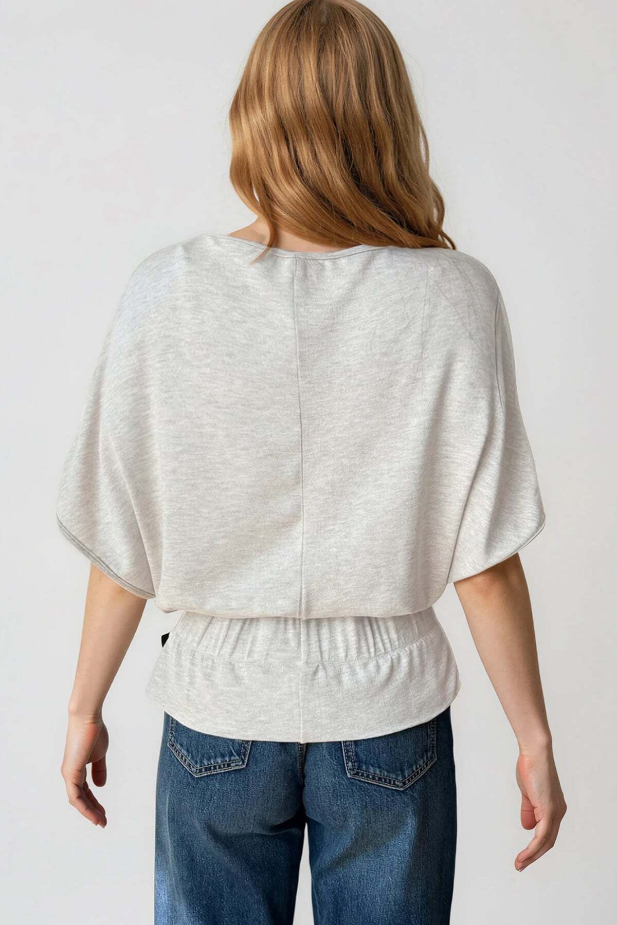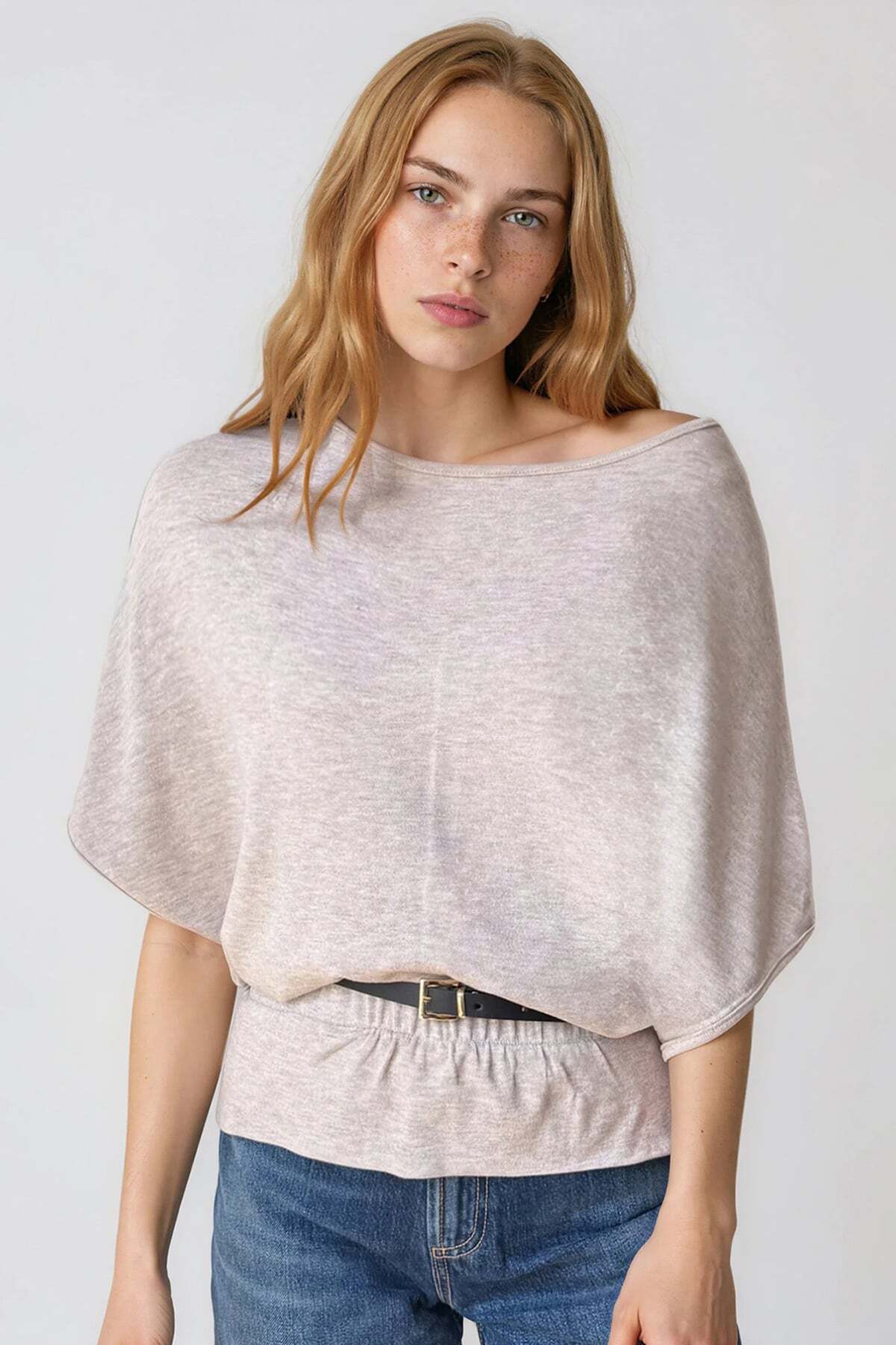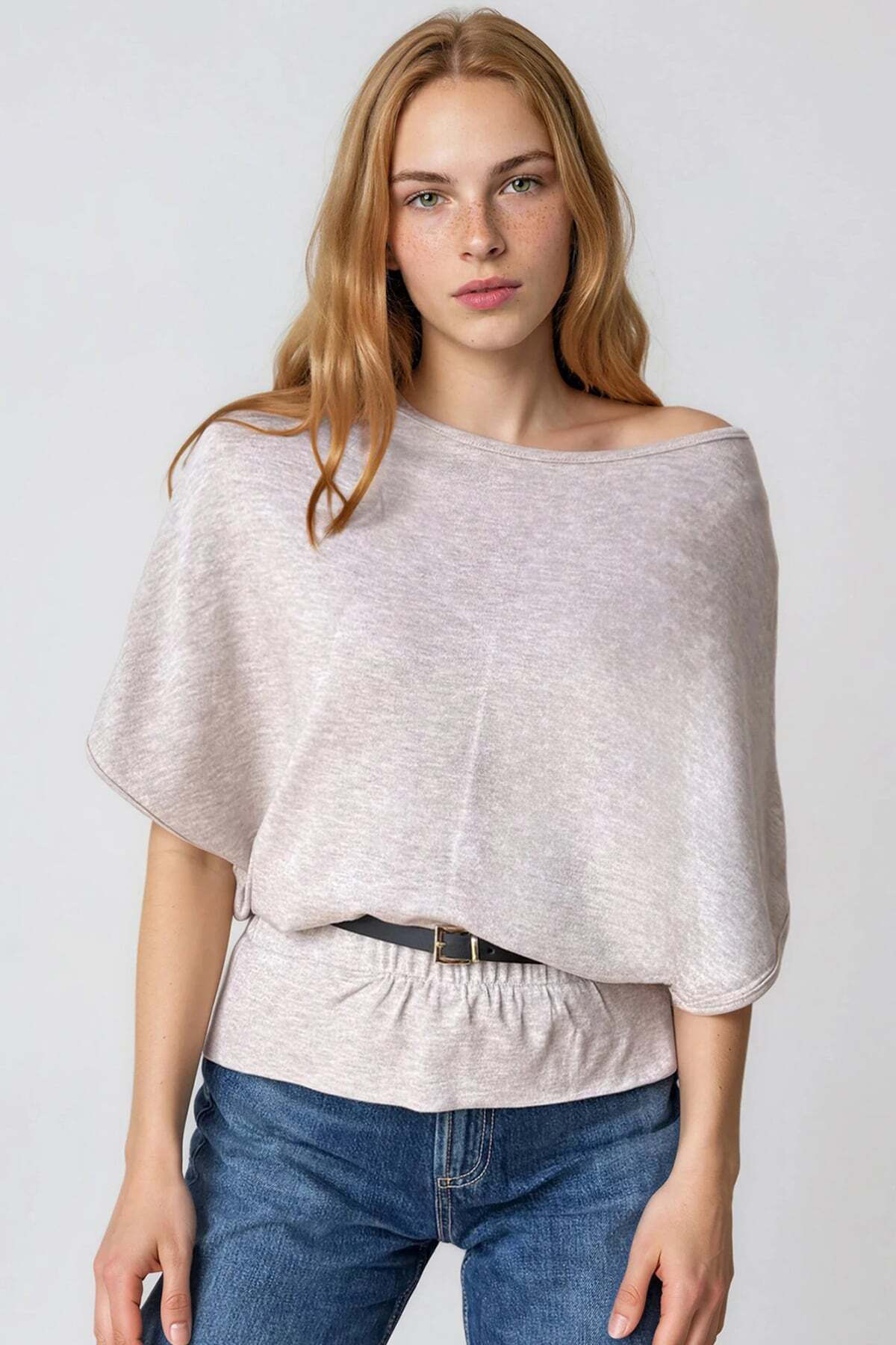 Beige Boat Neck Knitted Blouse with Belt Detail