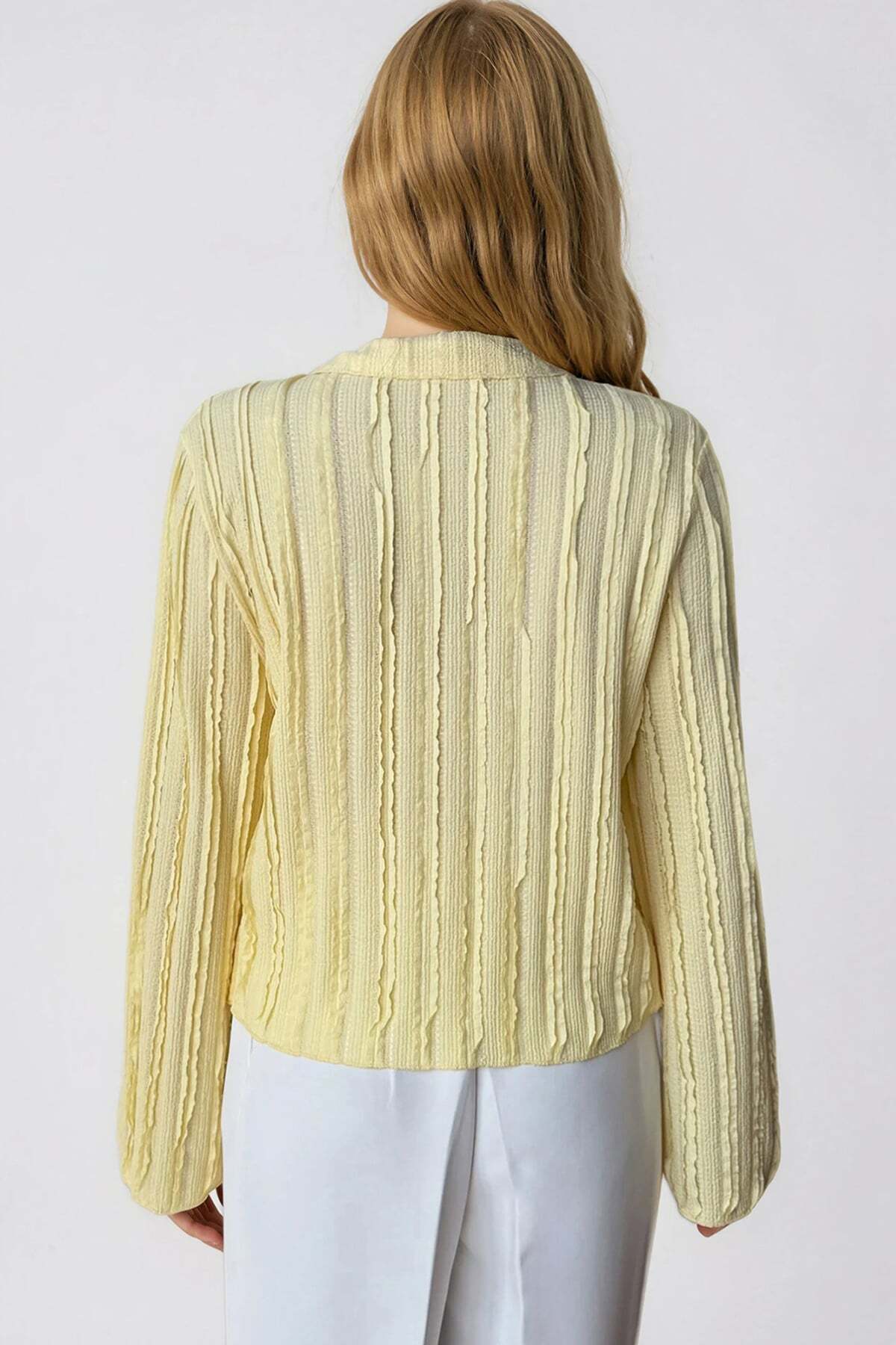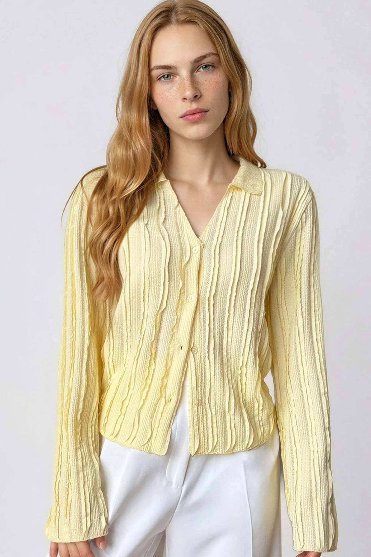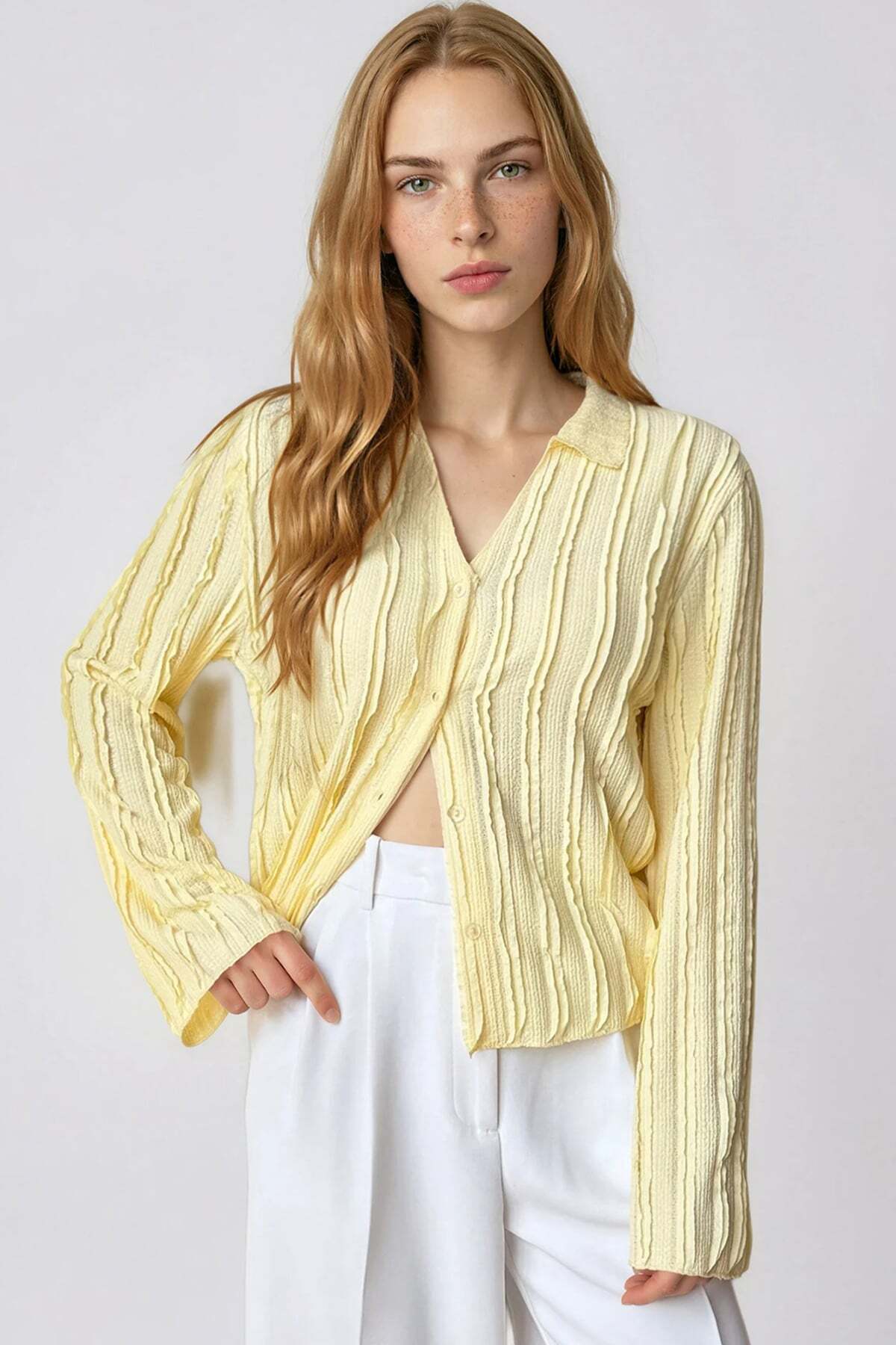 Designed with Shirt Collar Form and Button Detail on the Front Surface, This Blouse Offers a Movable Appearance with its Bürümcük Textured Structure.