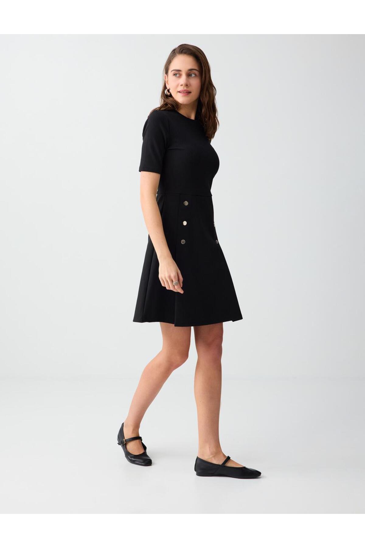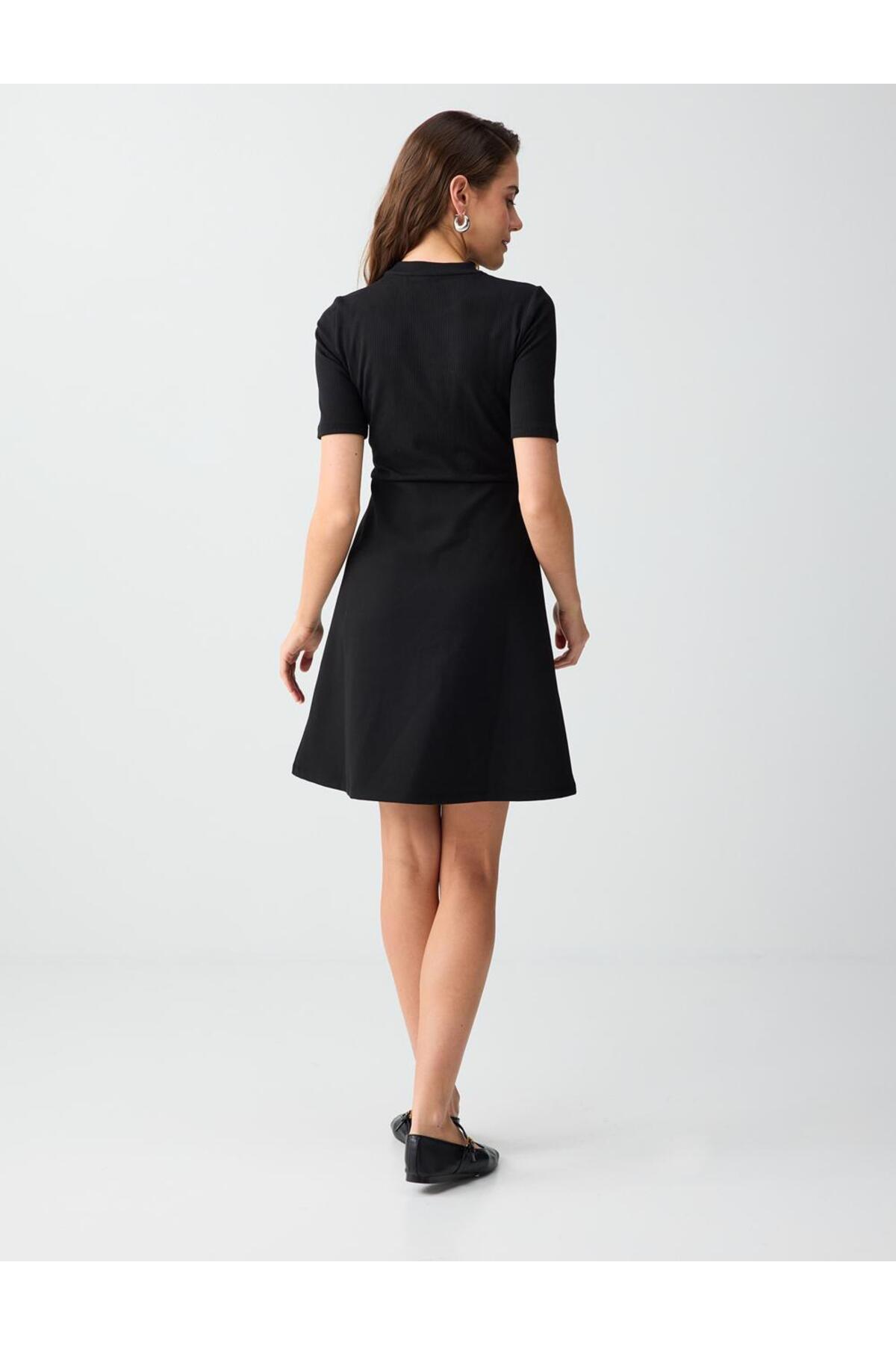 Jimmy Key Black Slim Fit Crew Neck Short Sleeve Knitted Mini Dress | ByTR