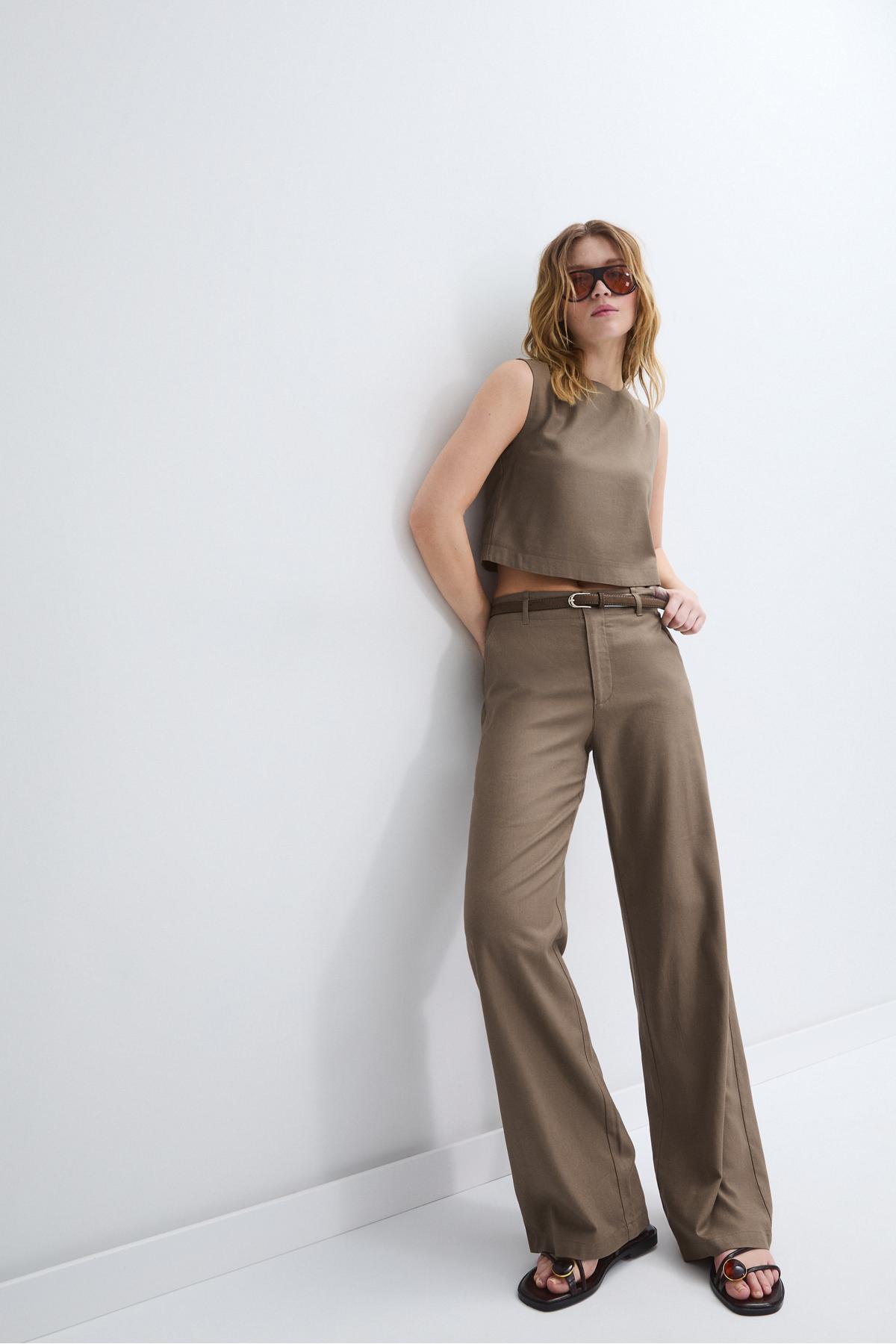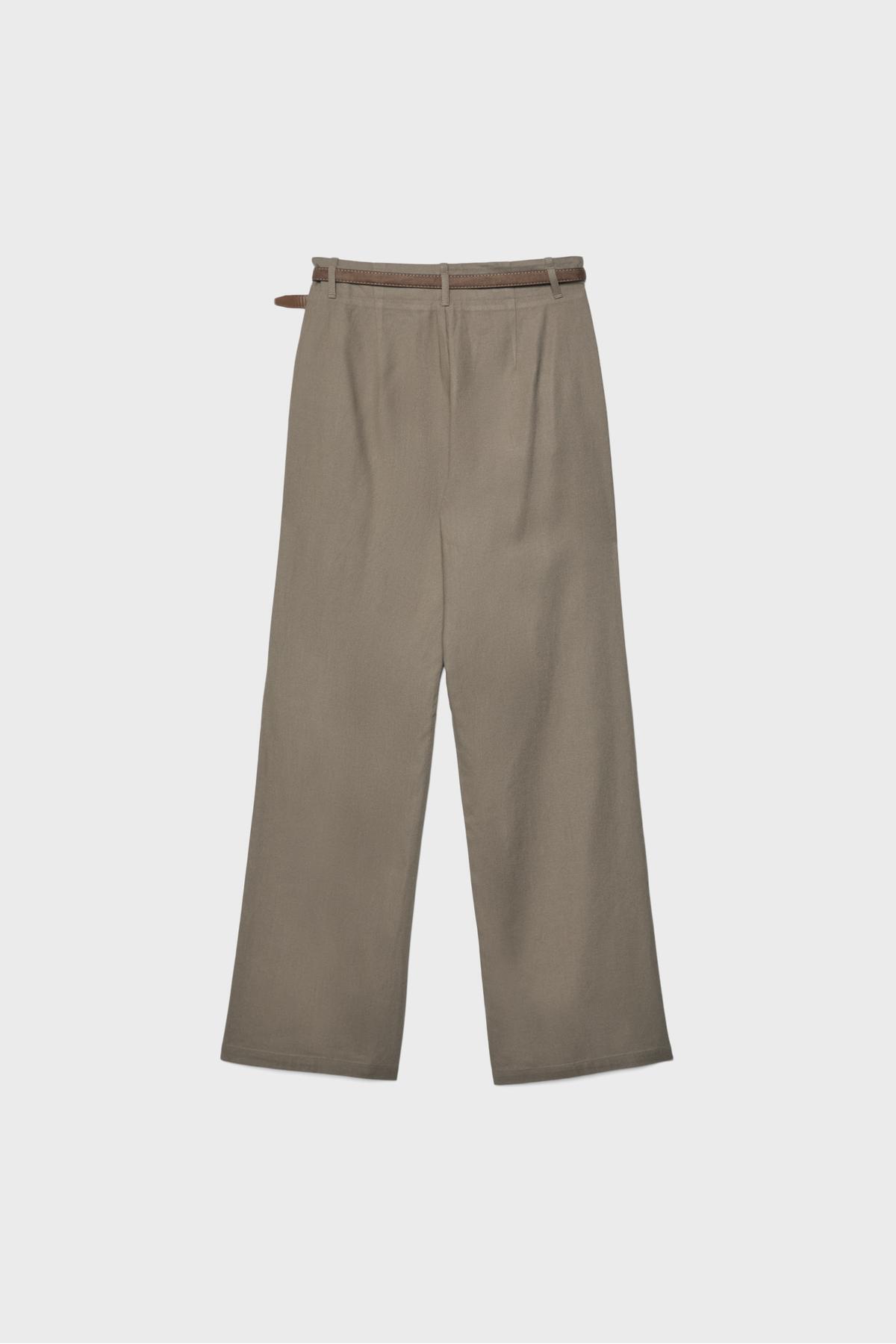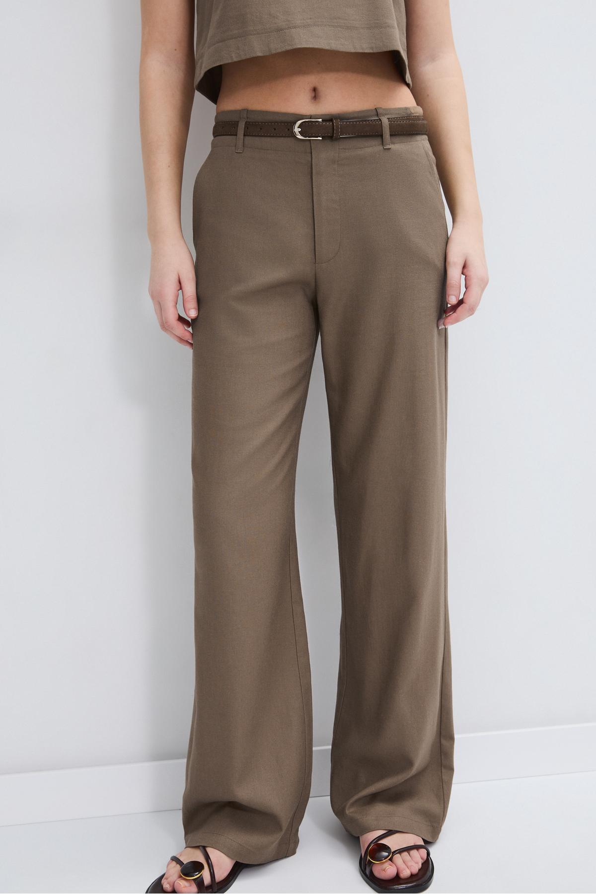 Stradivarius Belted, linen-looking straight leg trousers | ByTR
