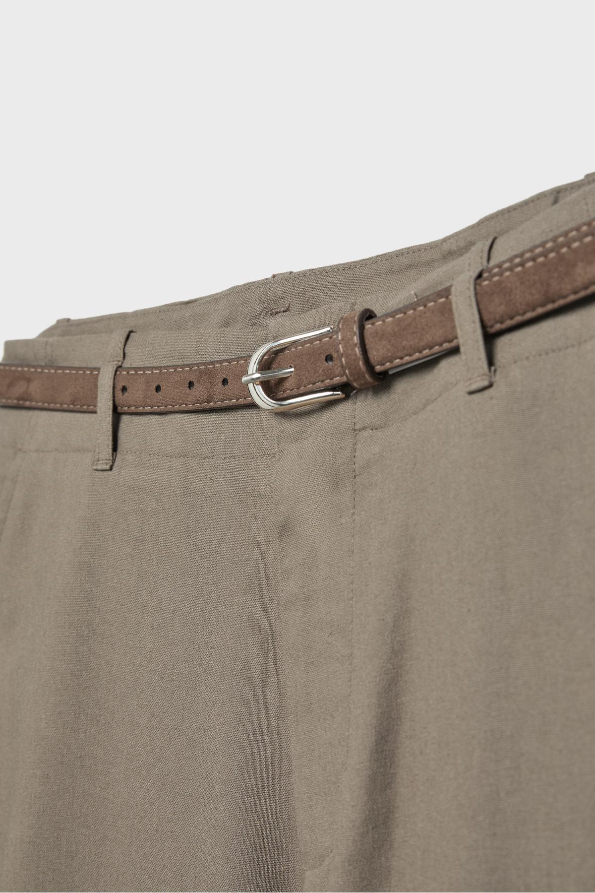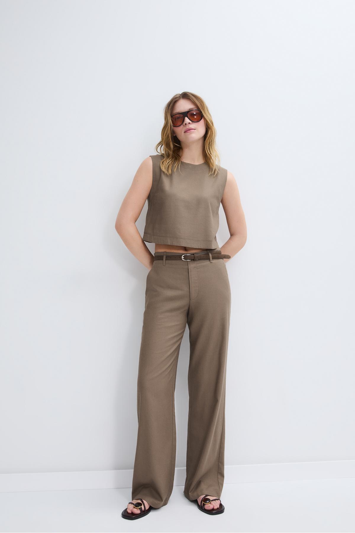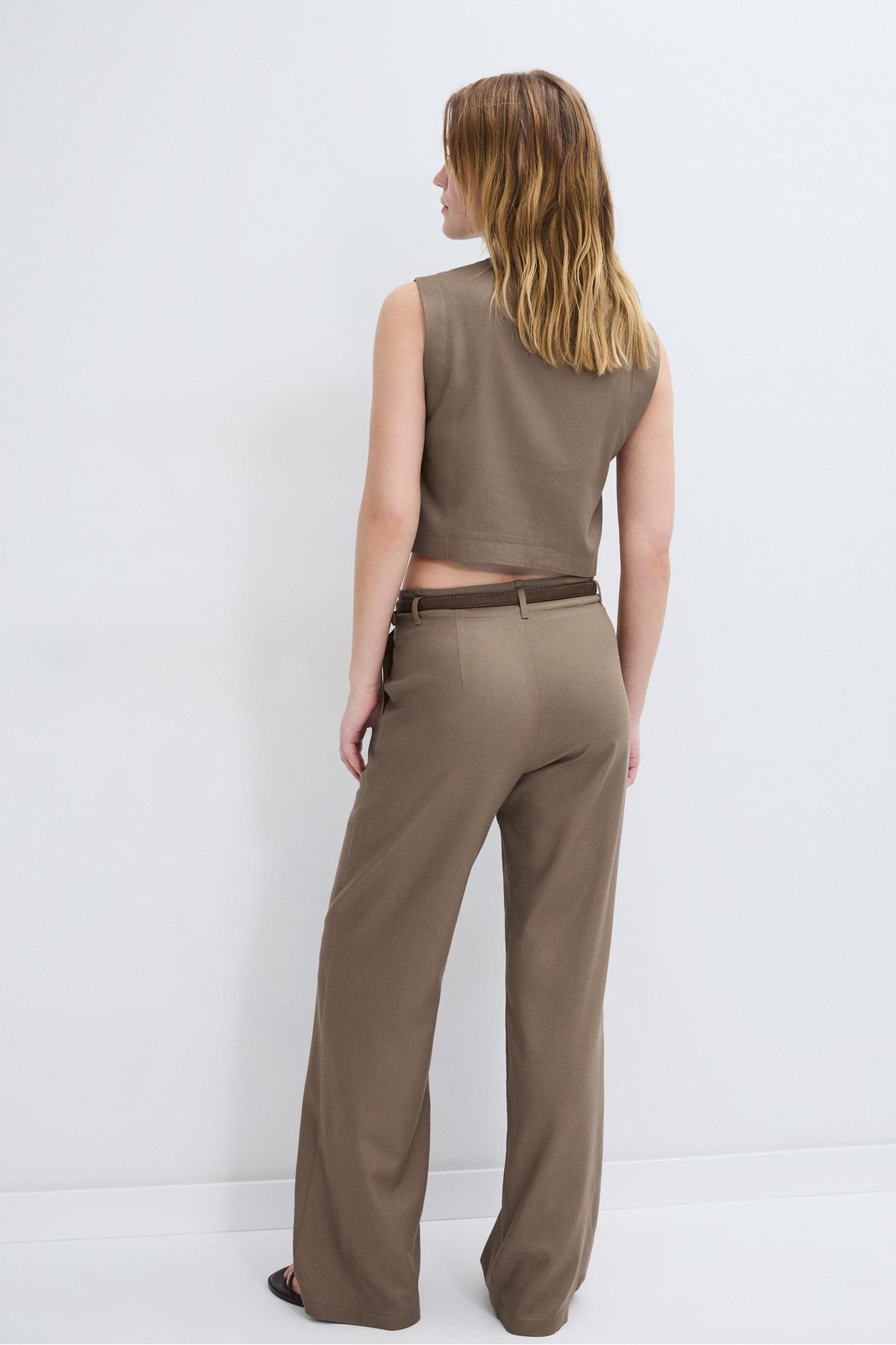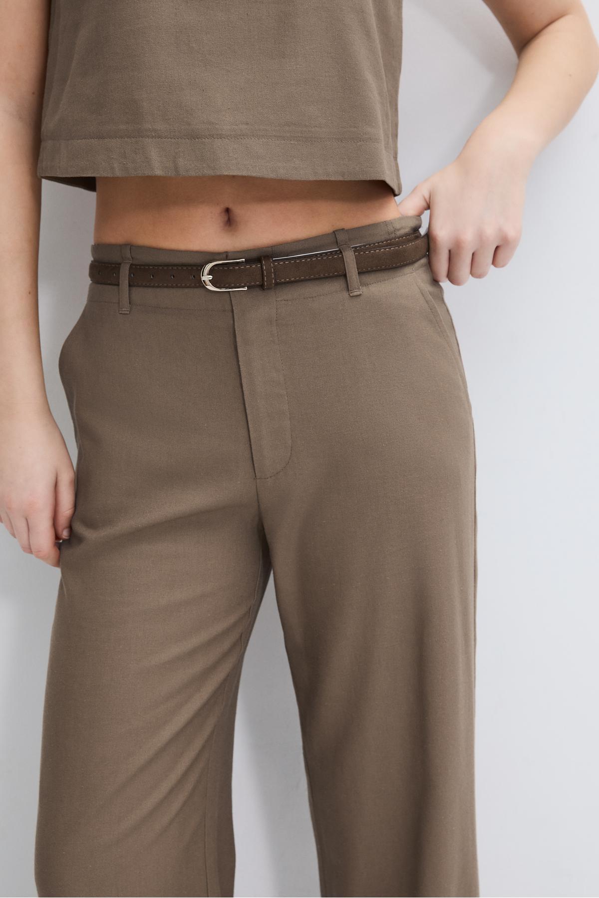 Stradivarius Belted, linen-looking straight leg trousers | ByTR