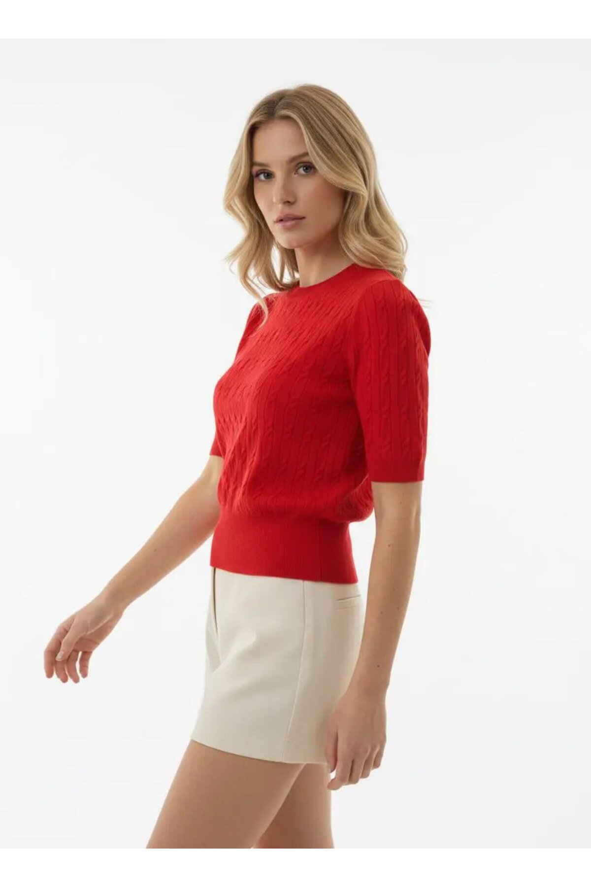 Park Karon Women's Crew Neck Hair Weave Textured Premium Yarn Knitwear Sweater 12140.Crs | ByTR