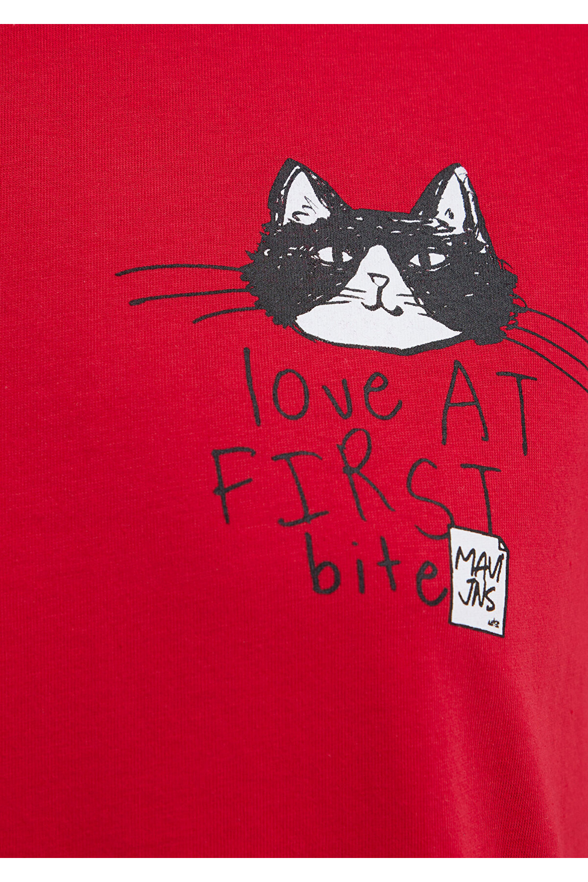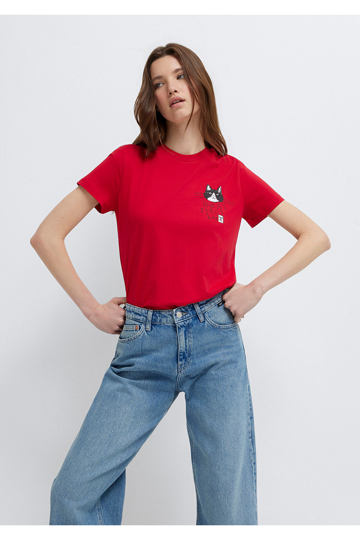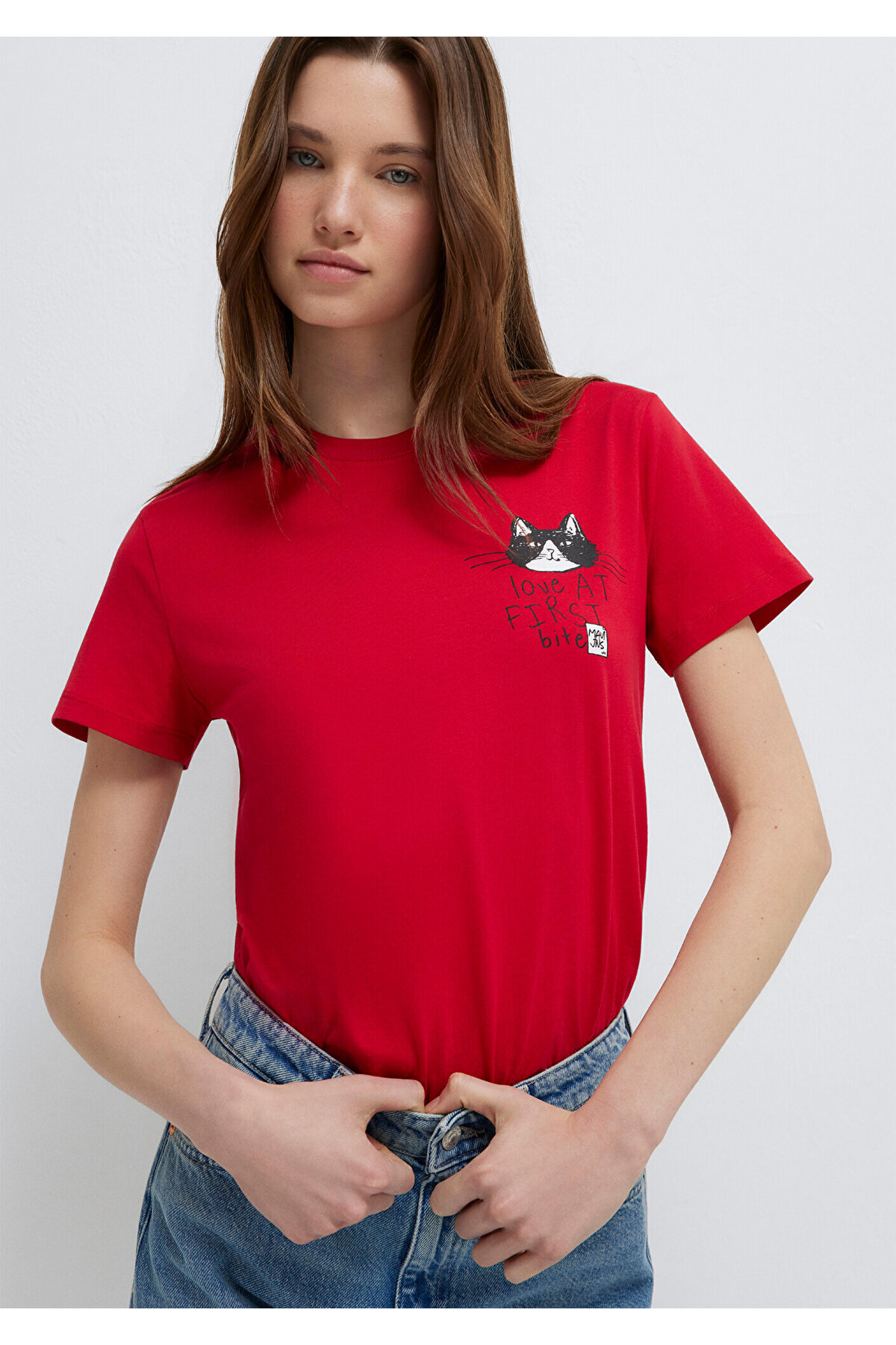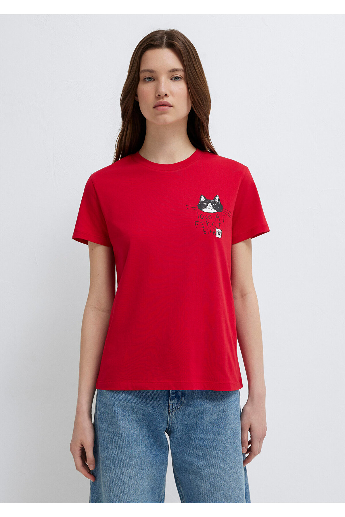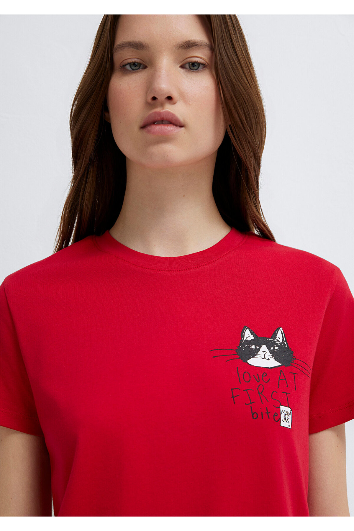 Cat Printed Red T-Shirt from Blue's women's collection.