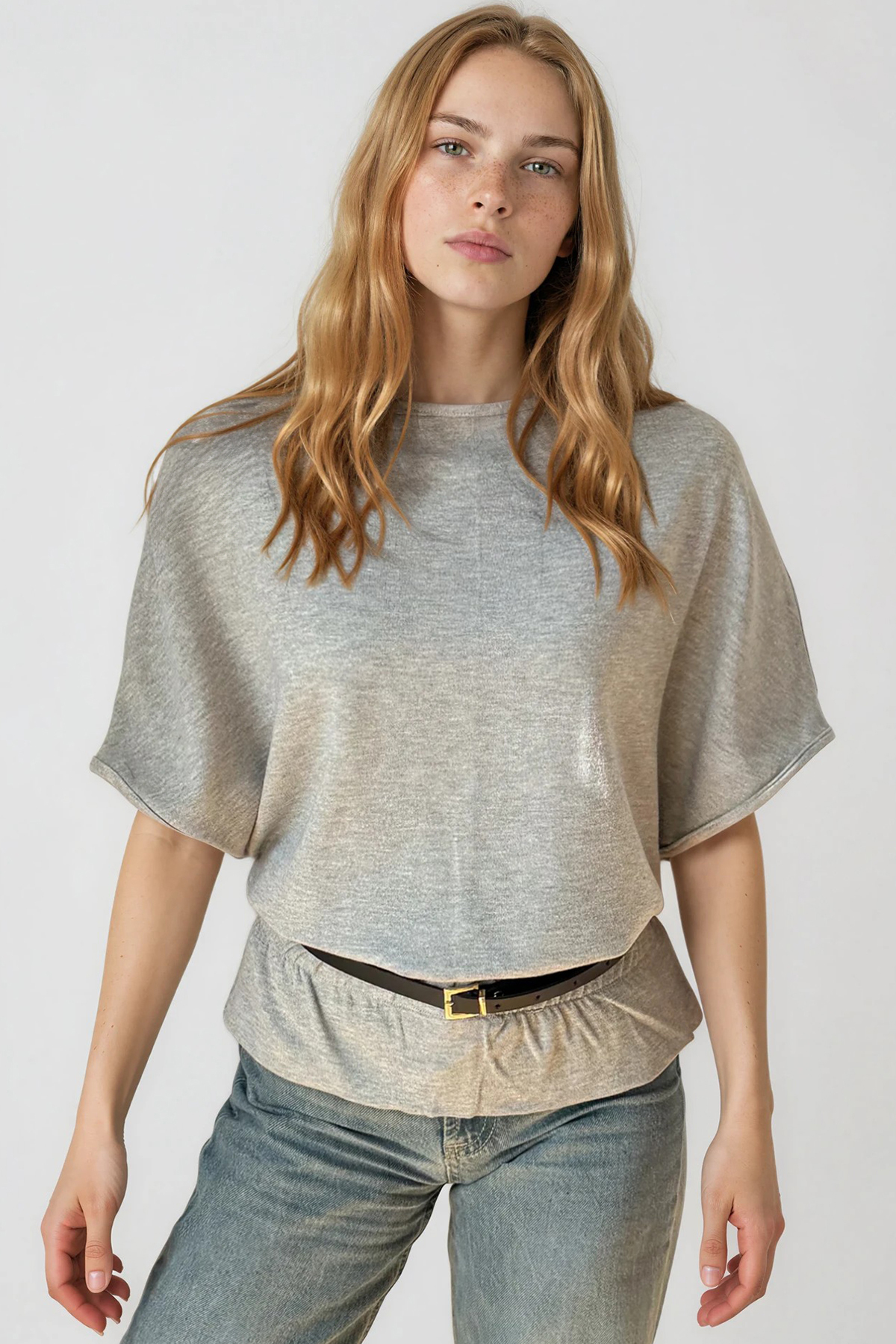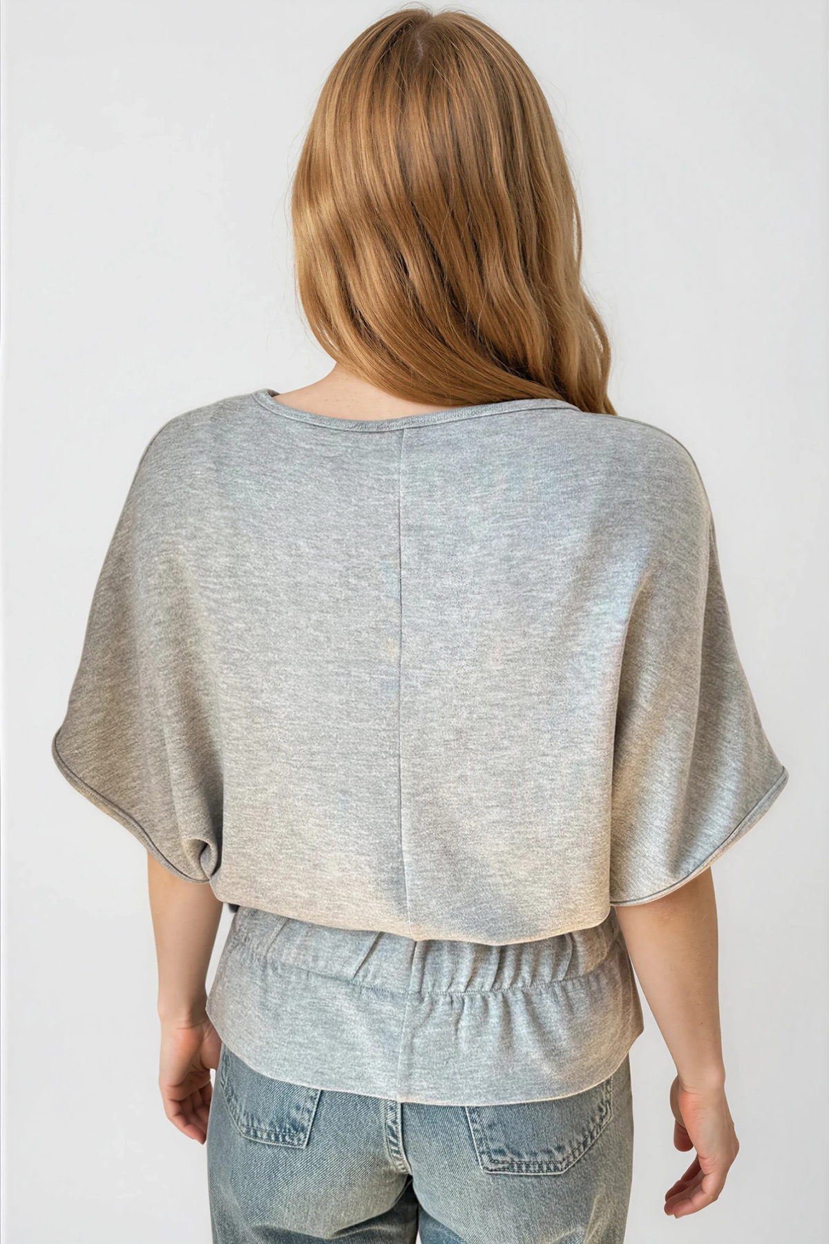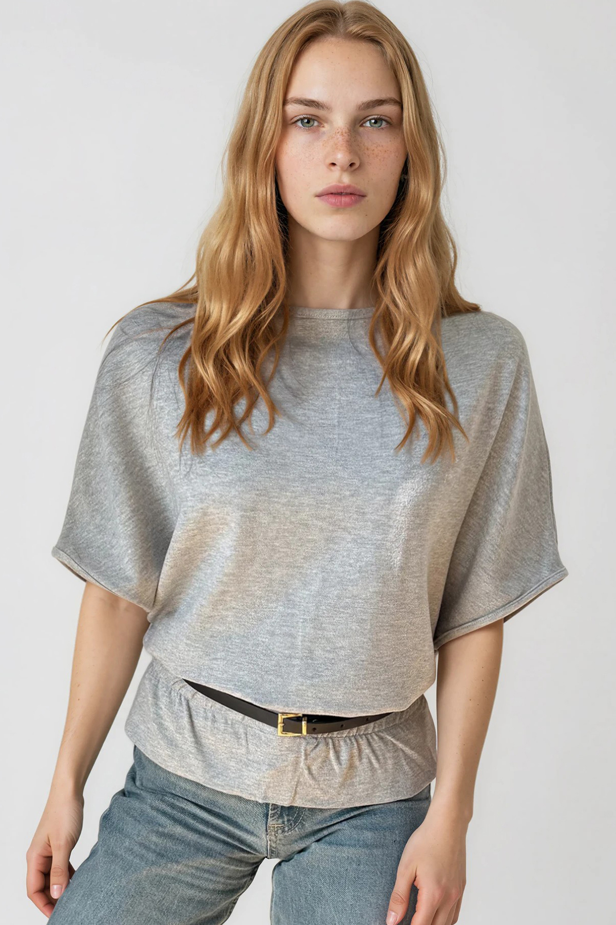 Gray Boat Neck Belt Detailed Knitted Blouse