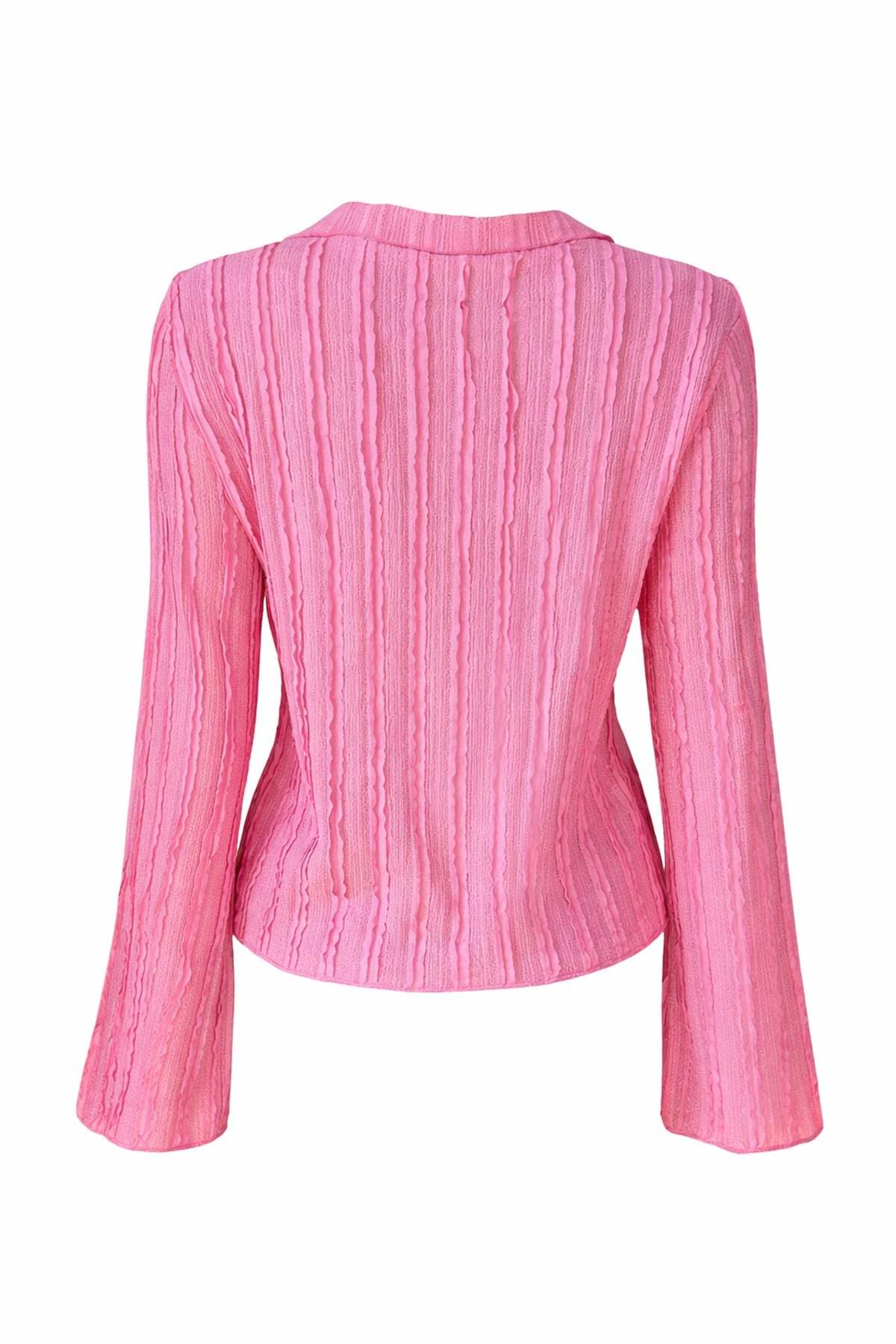 Pink V-Neck Spanish Sleeve Ruffle Fabric Shirt