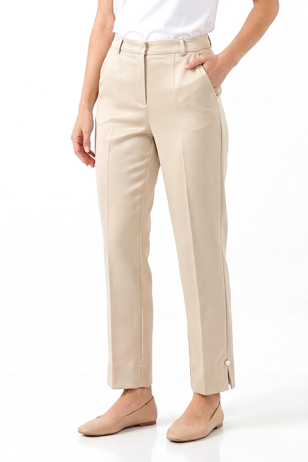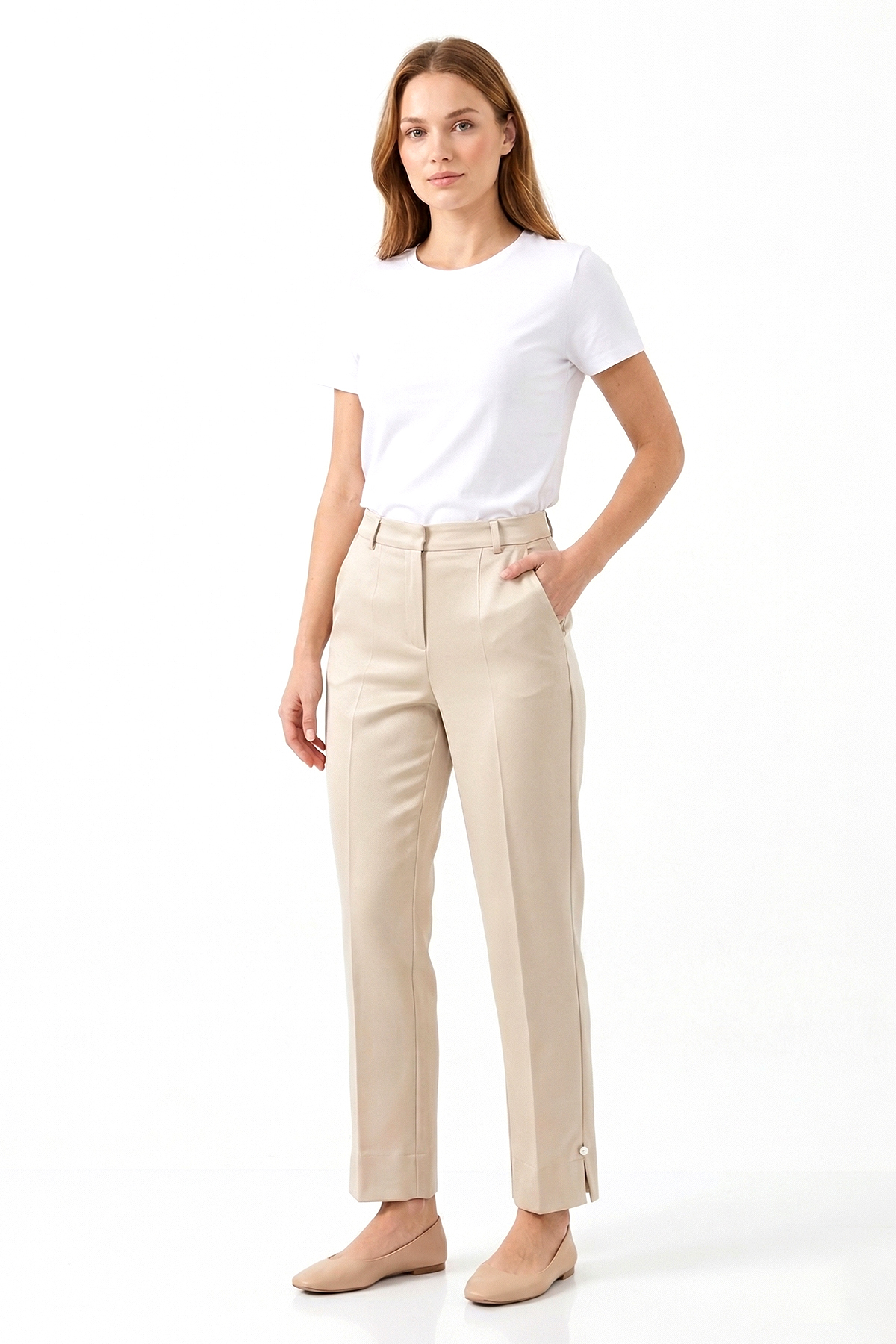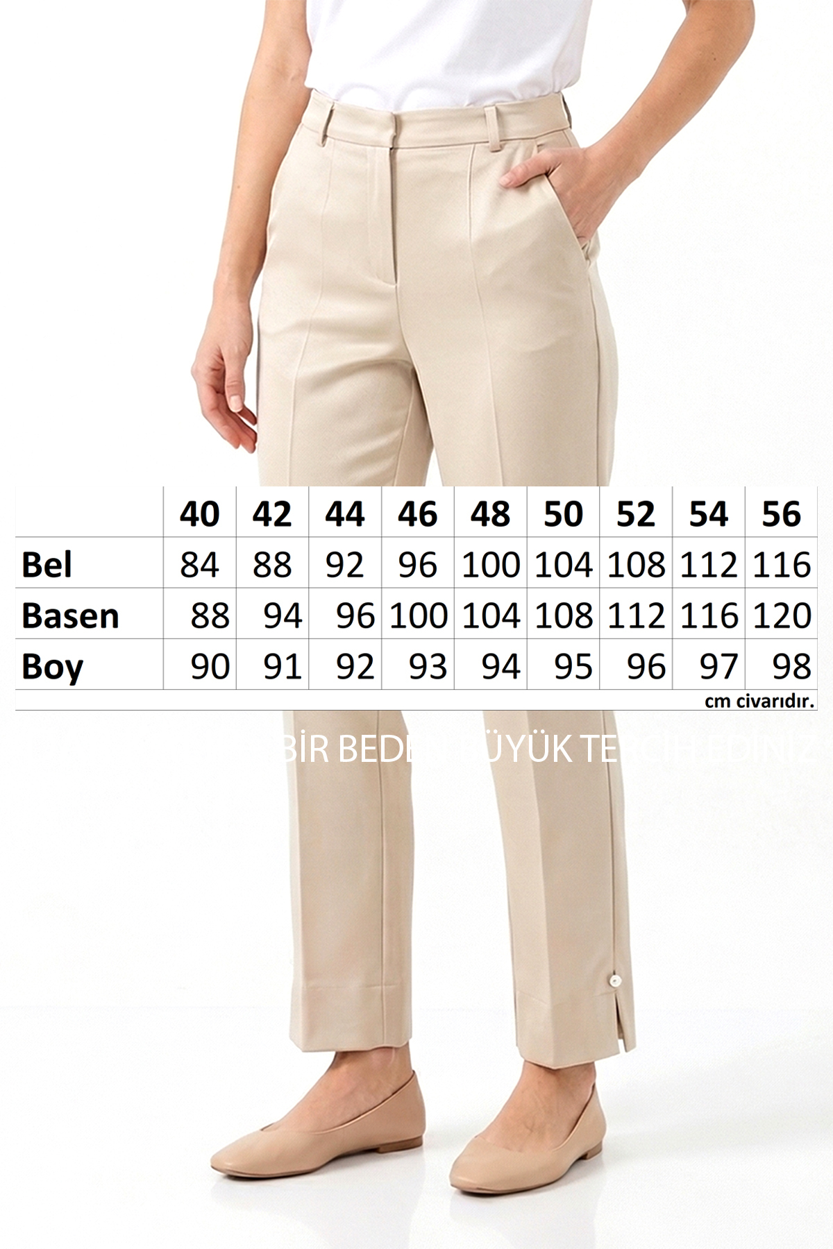 Lale Butik Women's Wrist Length Fabric Pants 01 Cream | ByTR