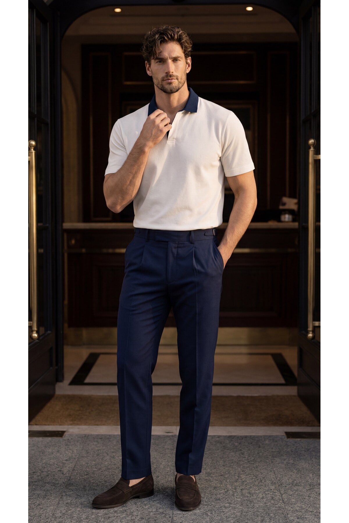 Fabric and Design Details 55% Cotton Nova quilting fabric structure Tough and form-holding surface Contrast detail polo collar design Regular fit cut Breathable weave Suitable for daily and smart casual use style Combination Suggestion This polo t-shirt