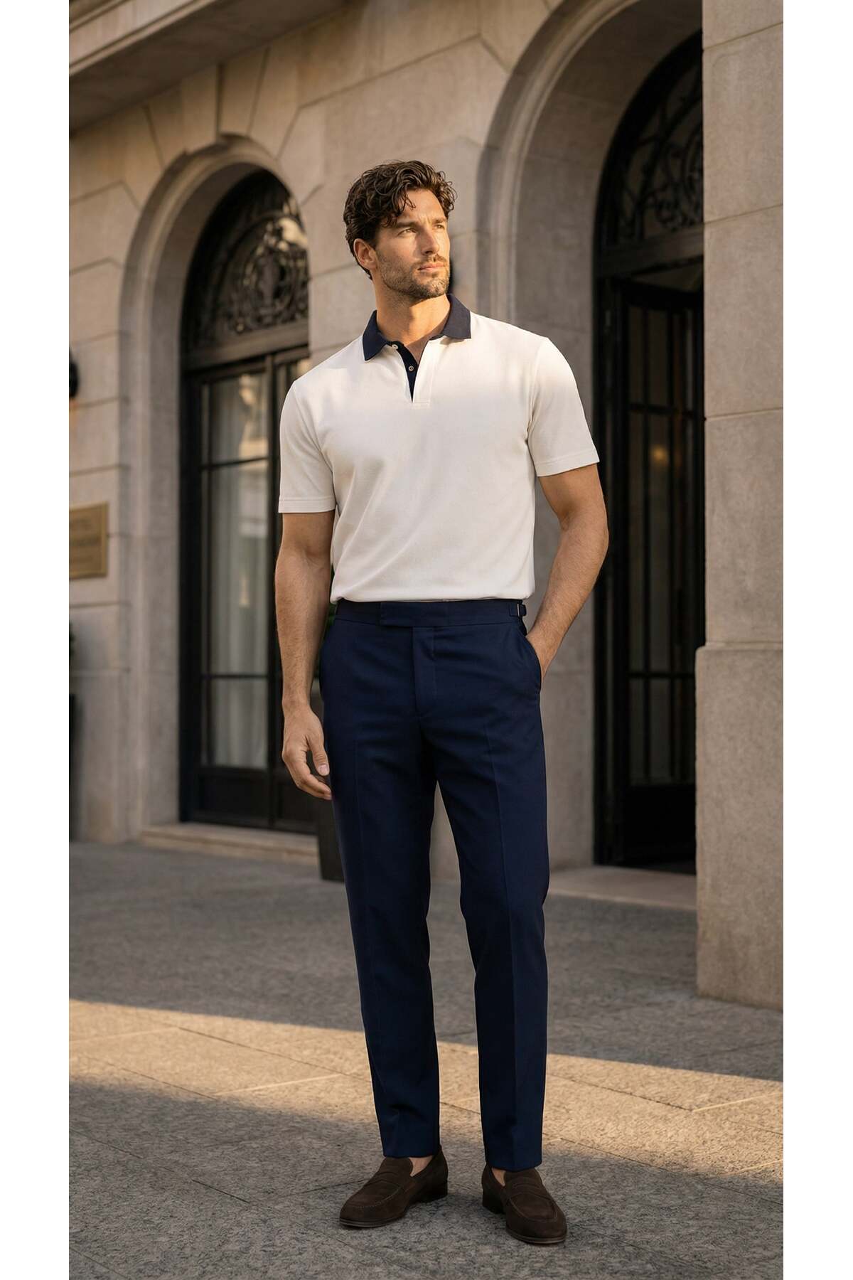 Complete with minimal sneakers or loafers, creating a modern and simple summer style.