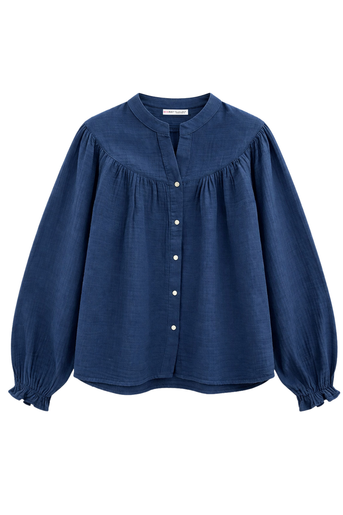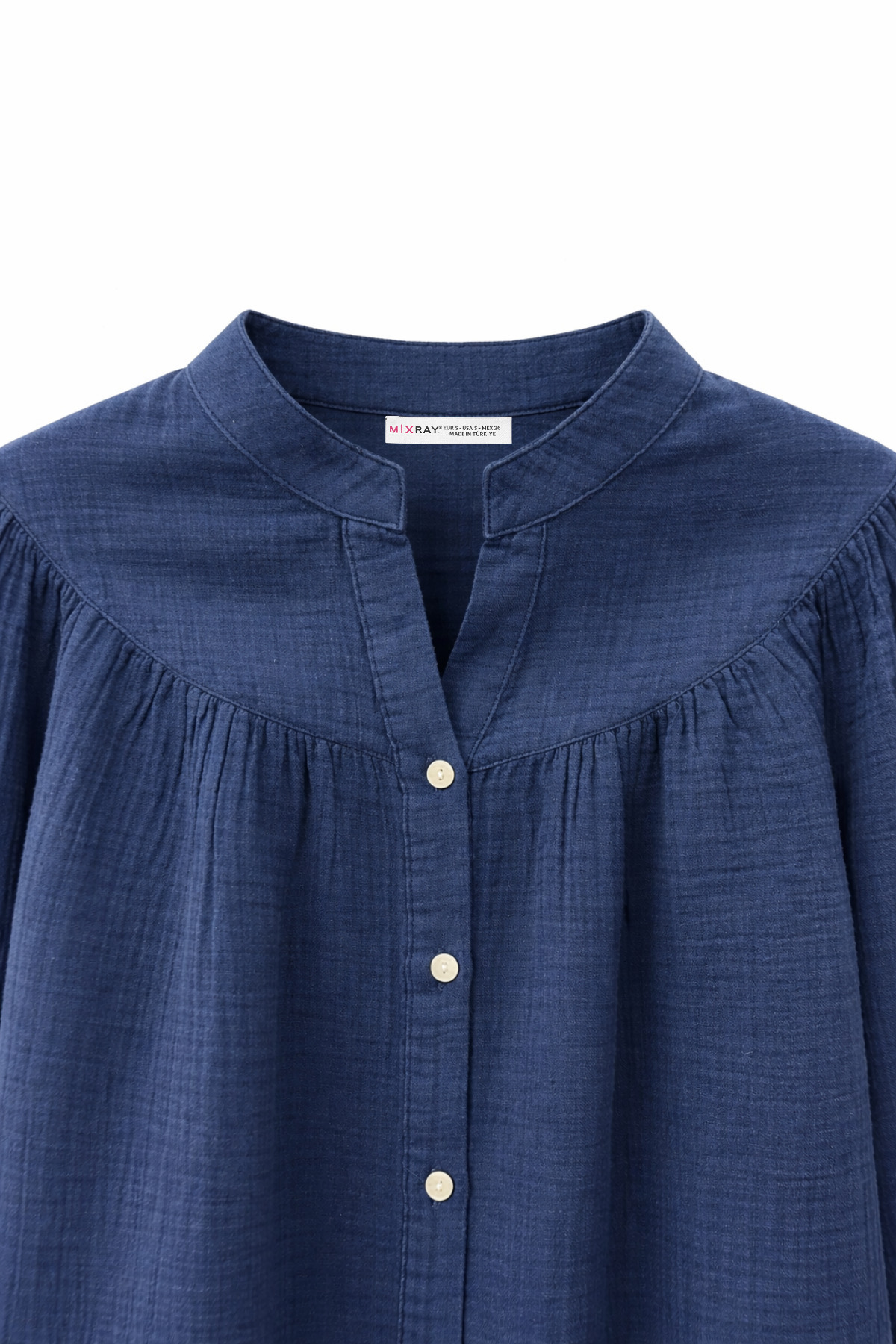 Mixray 4733 Women's Shirring Yoke Long Sleeve Muslin Shirt Navy Blue | ByTR