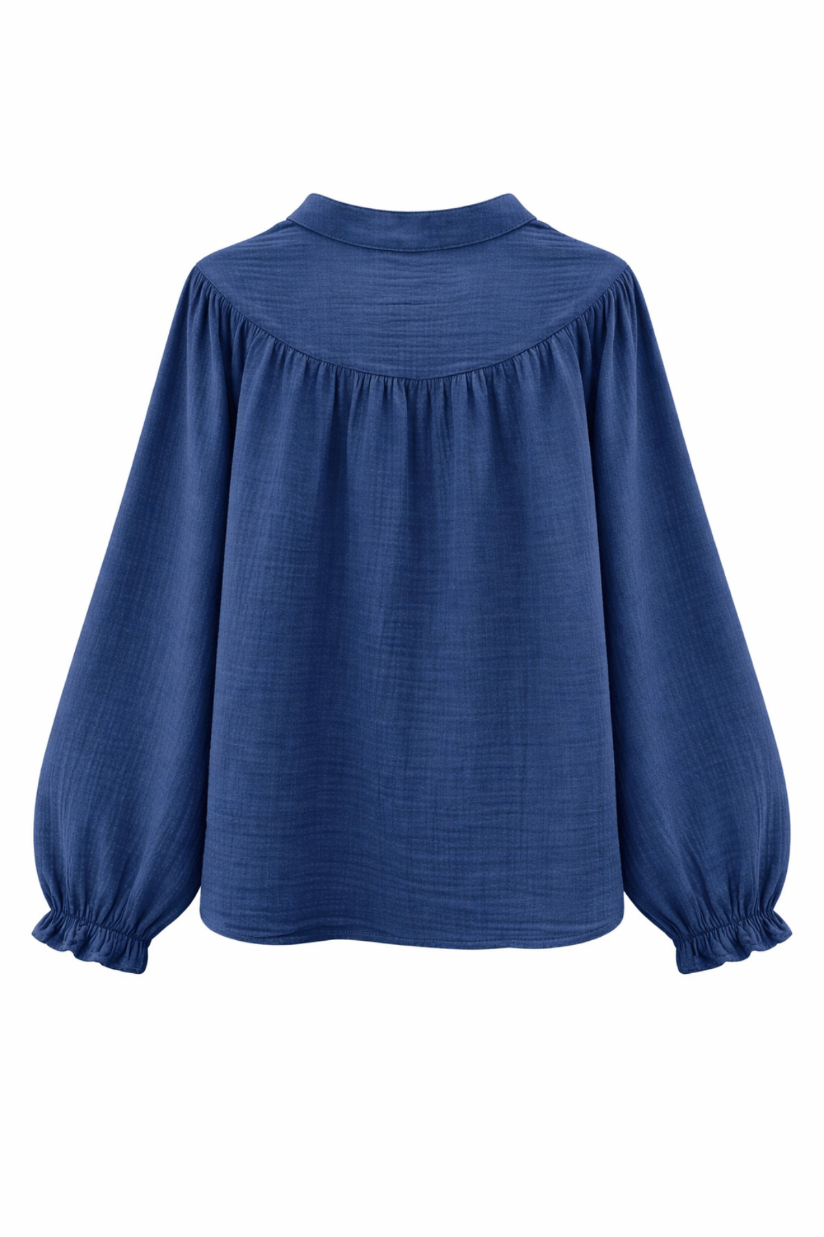 4733 Women's Shirring Yoke Long Sleeve Muslin Shirt Navy Blue