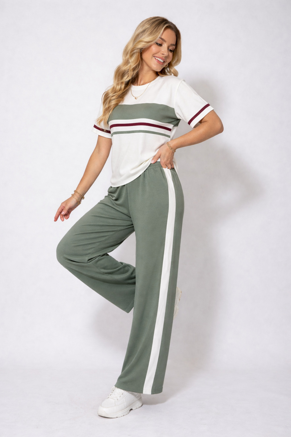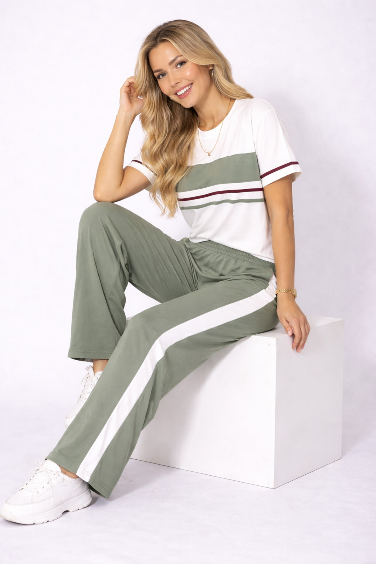 The combination of short-sleeved T-shirt and long-legged pants provides coolness in the summer.