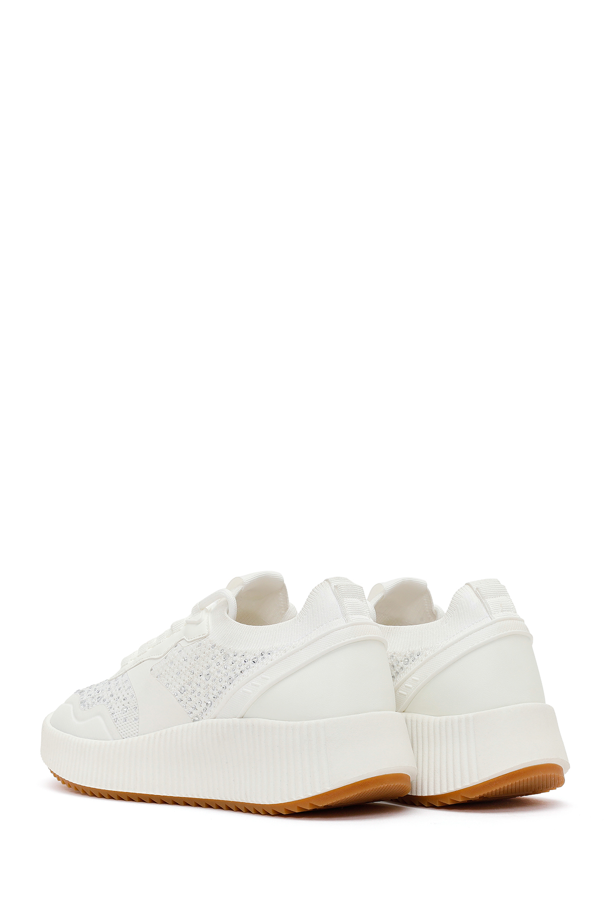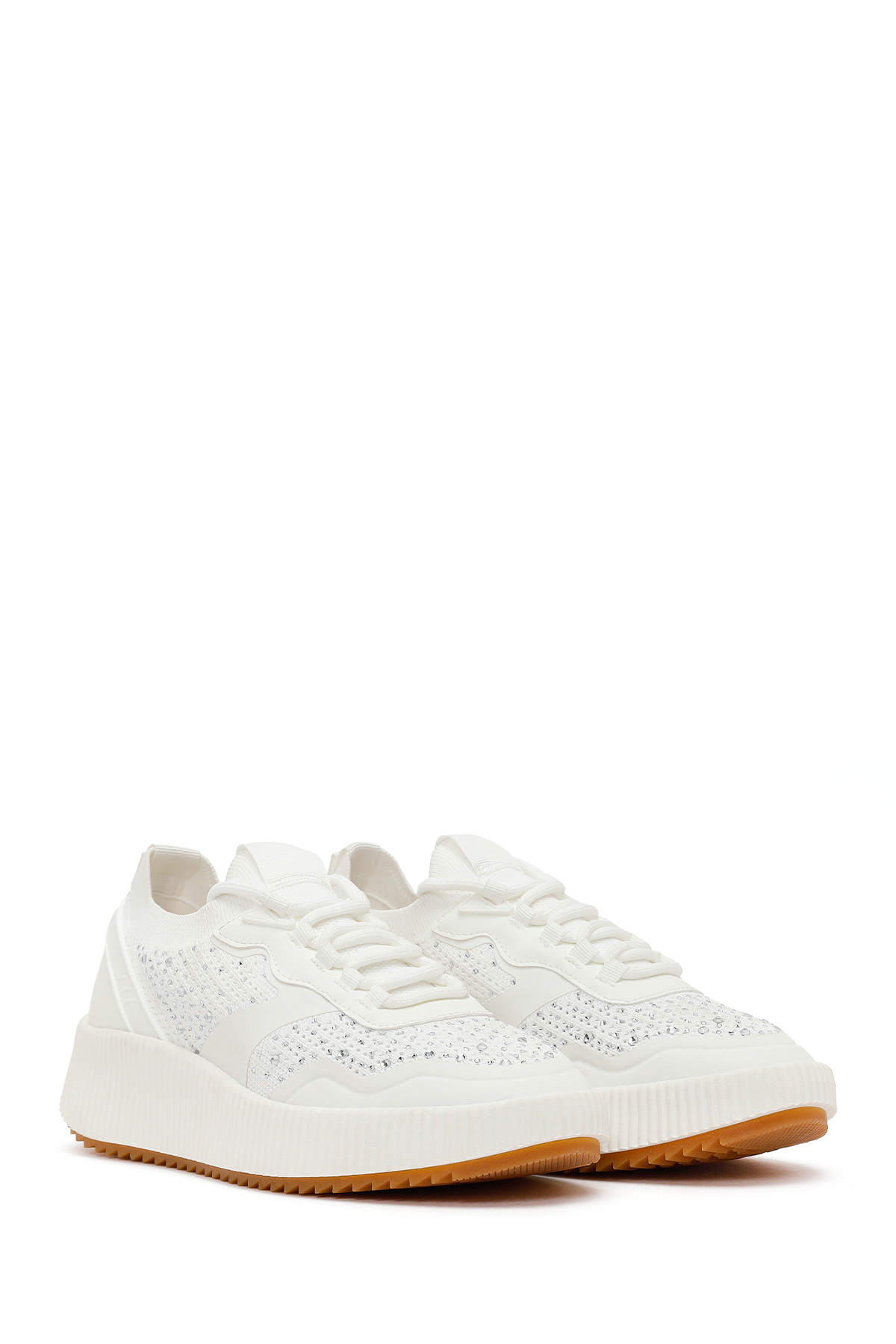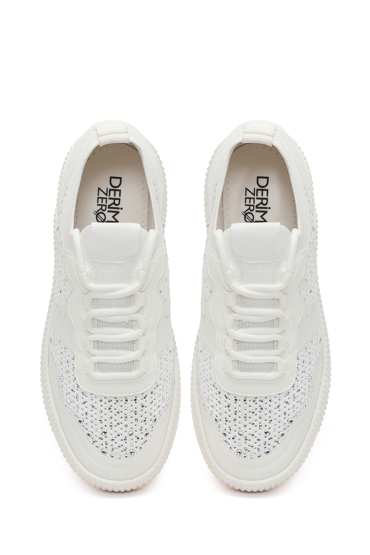 Derimod Zero Women's White Lace-up Thick-Bottomed Gemstone Fabric Sneaker 26PFD43156F | ByTR