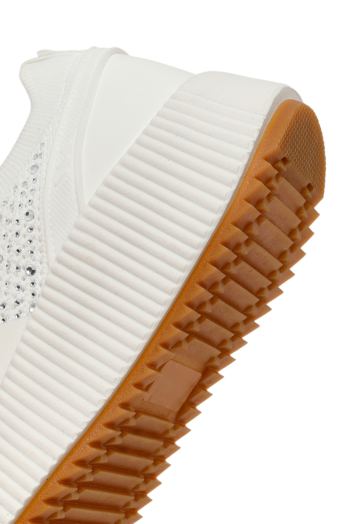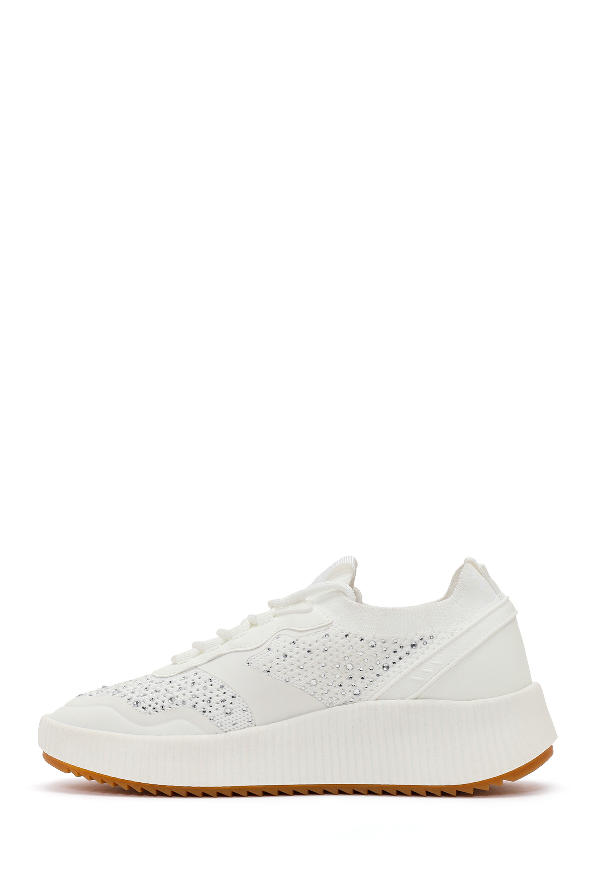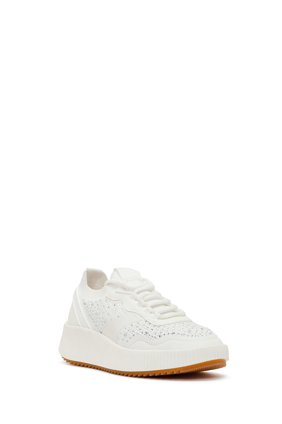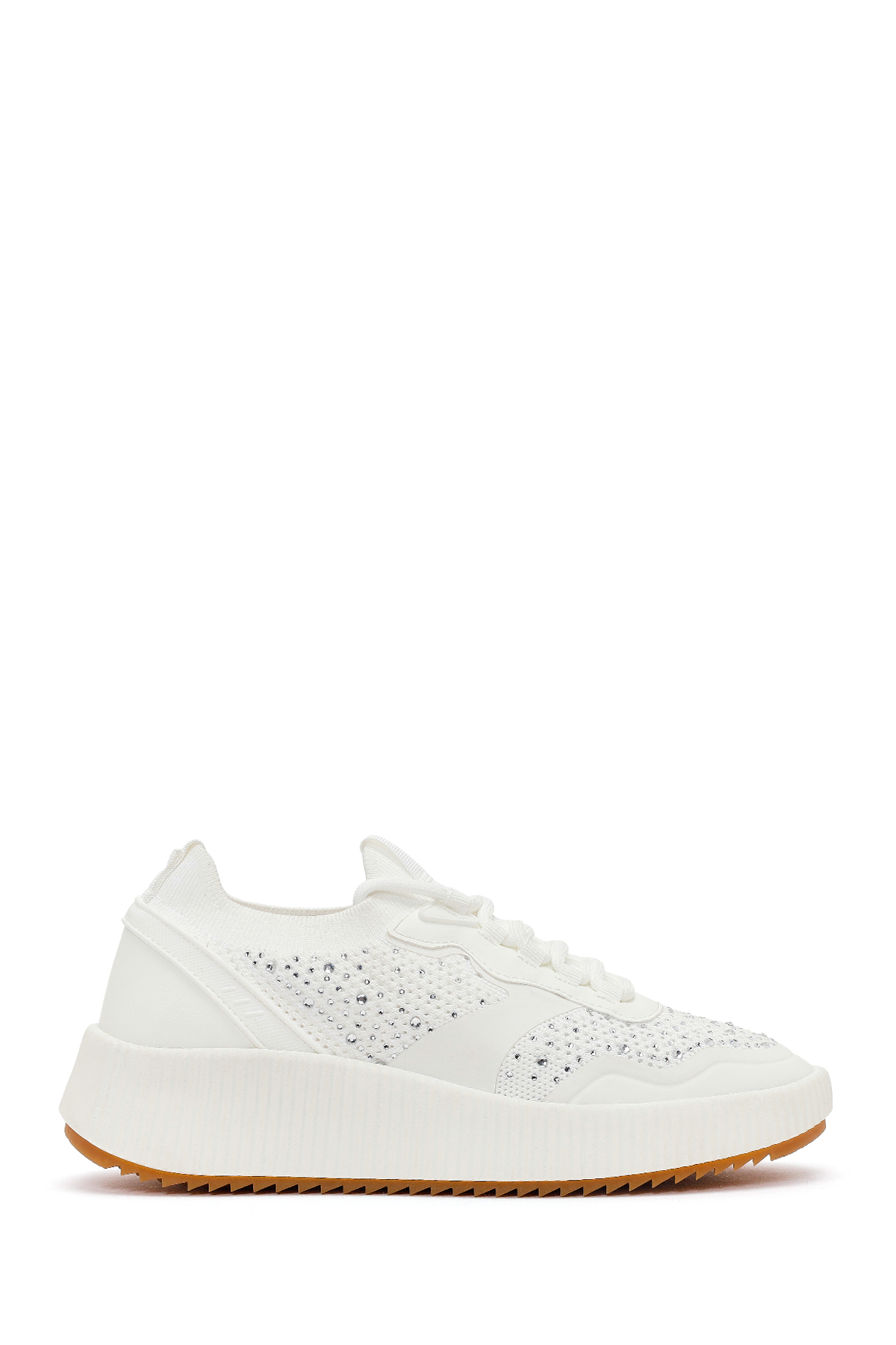 Derimod Zero Women's White Lace-up Thick-Bottomed Gemstone Fabric Sneaker