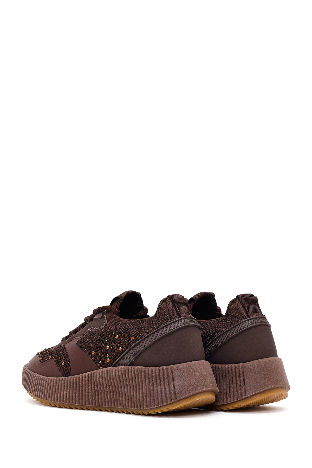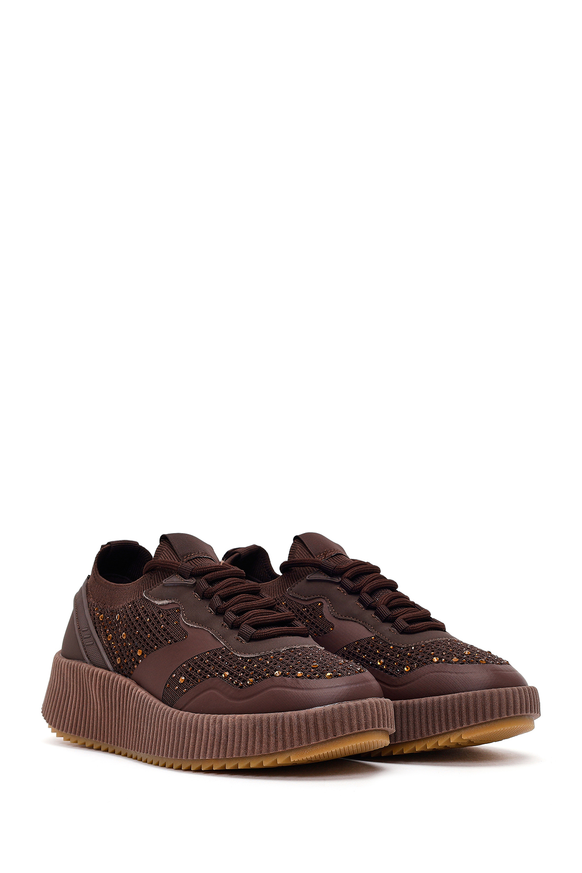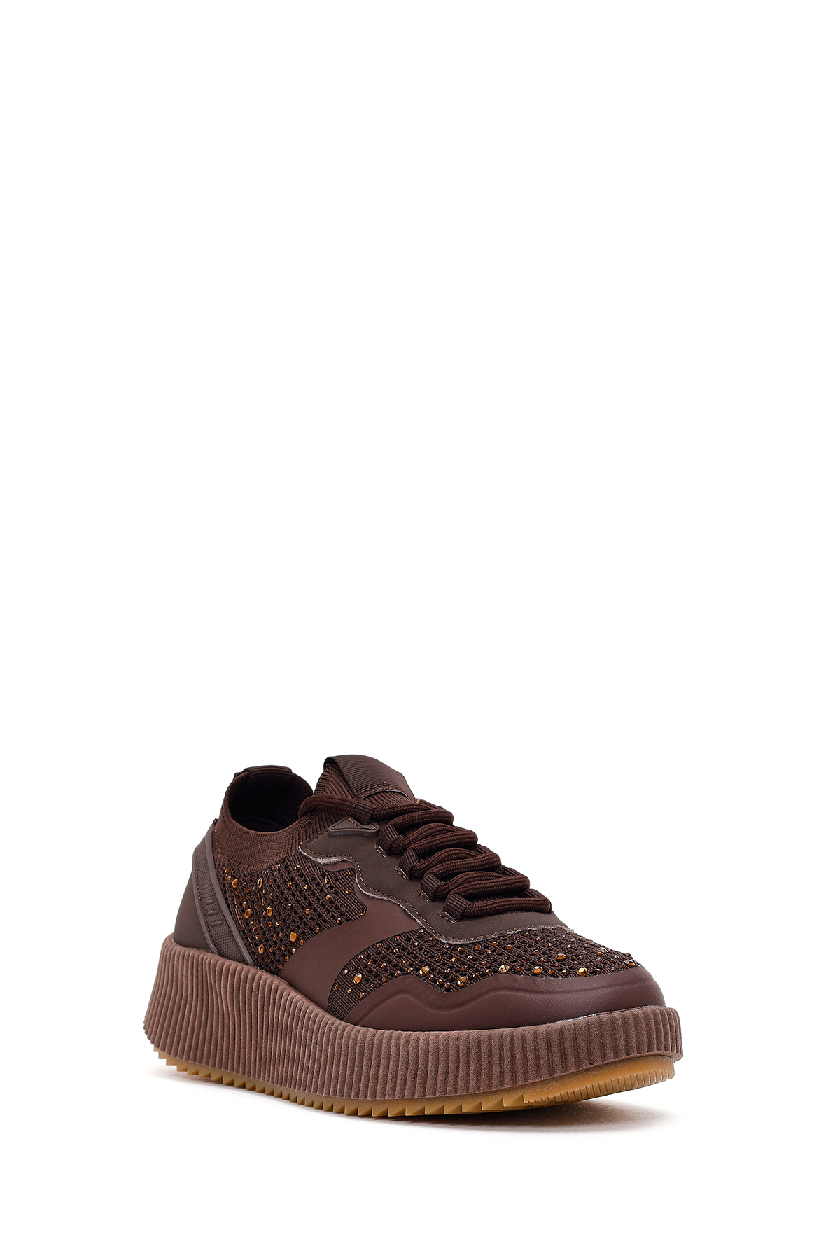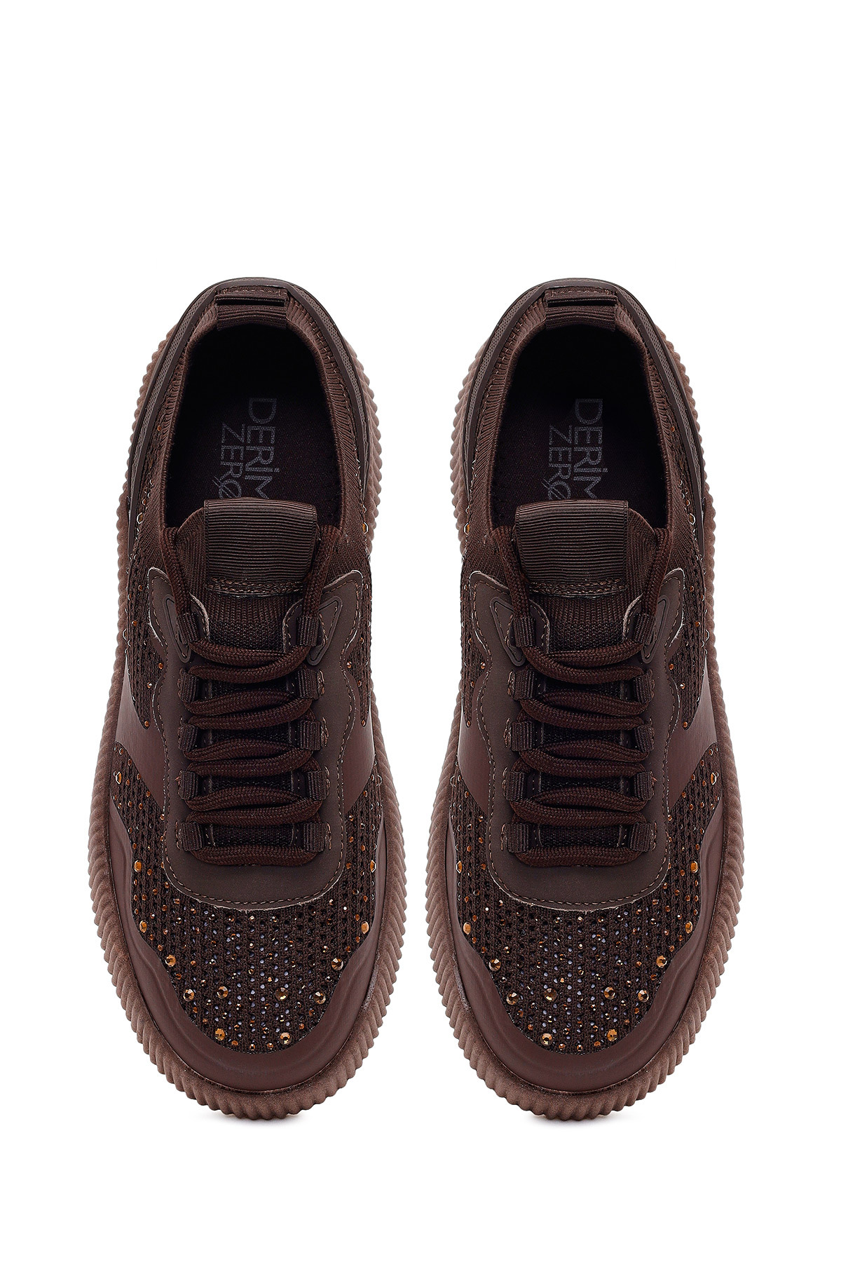 Derimod Zero Women's Brown Lace-up Thick-Bottomed Gemstone Fabric Sneaker