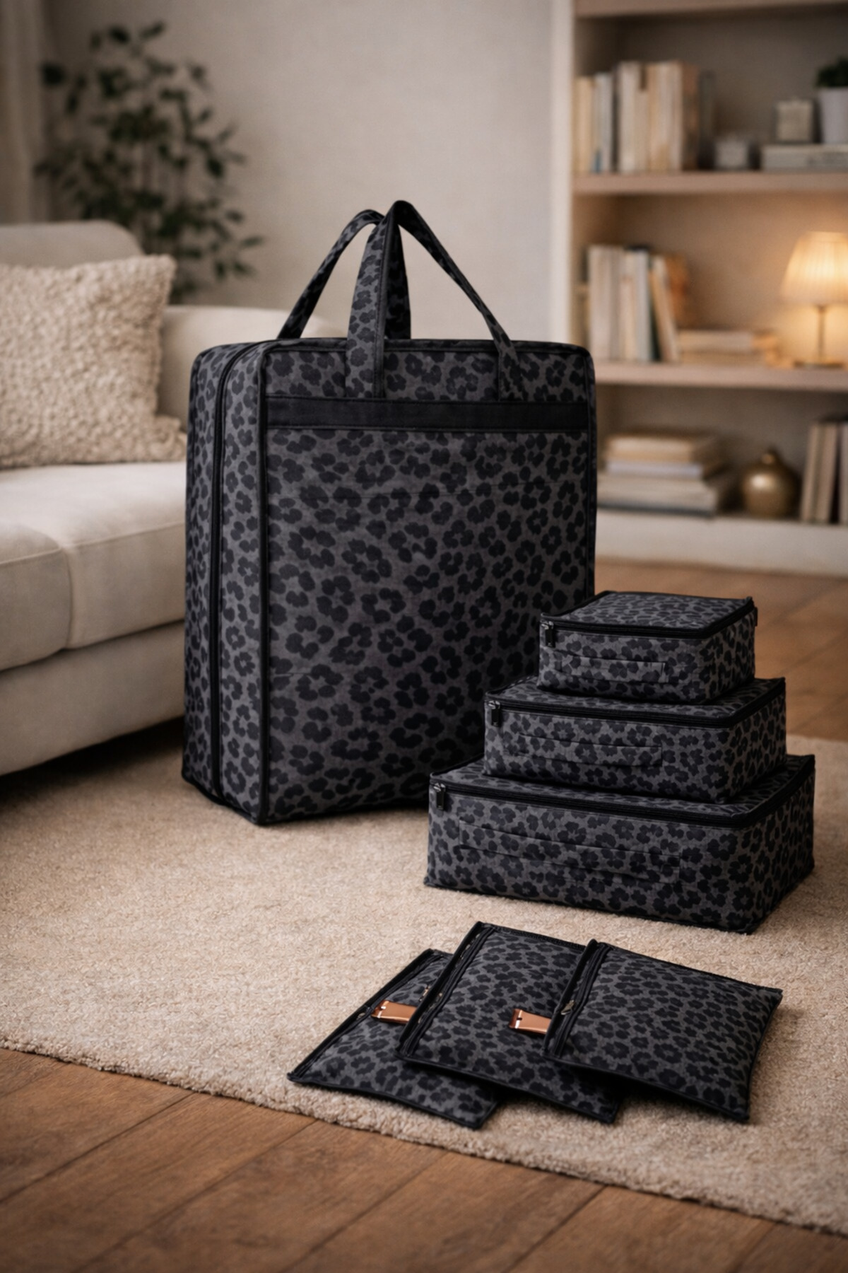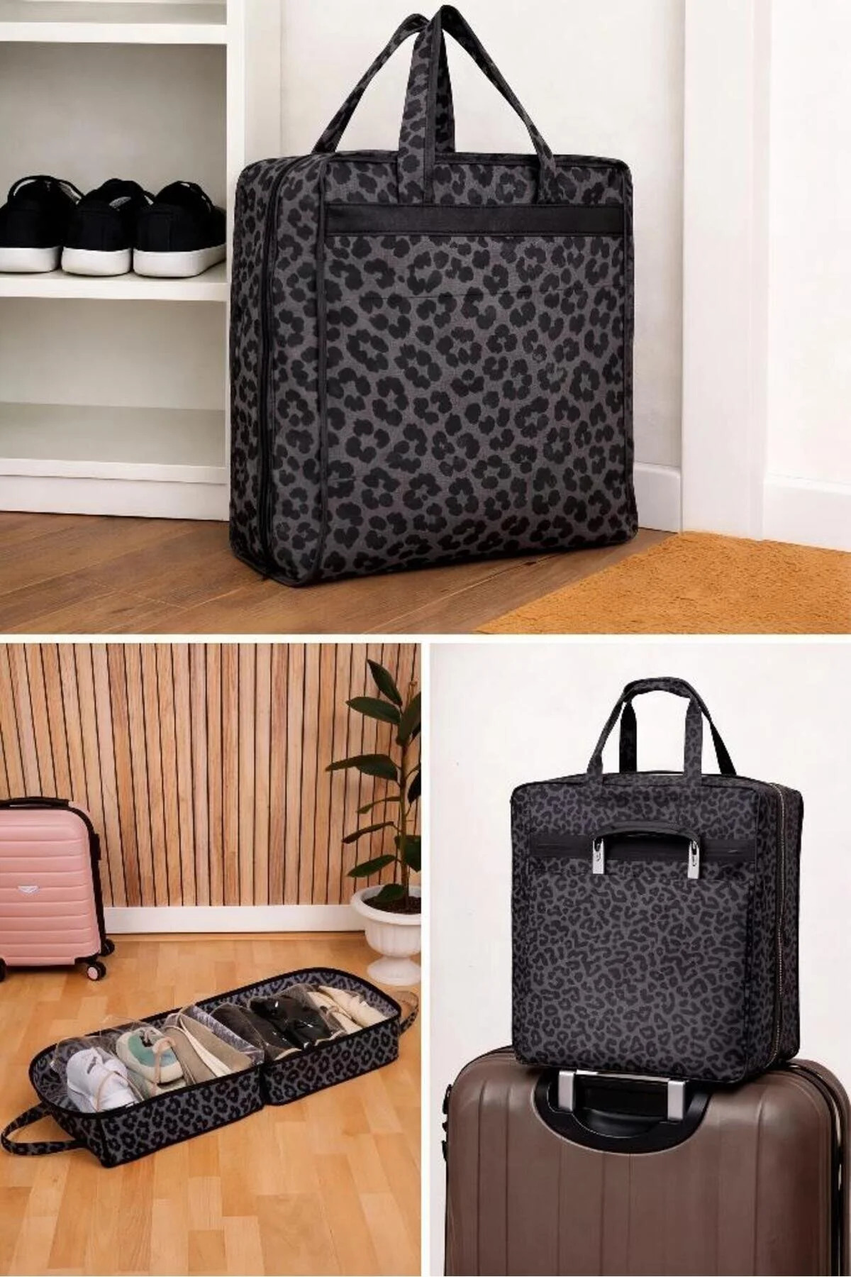 7-Piece Set Premium Shoe Hurcu 6 Compartment Shoe Organizer I Leopard 6-Piece Luggage Organizer Set