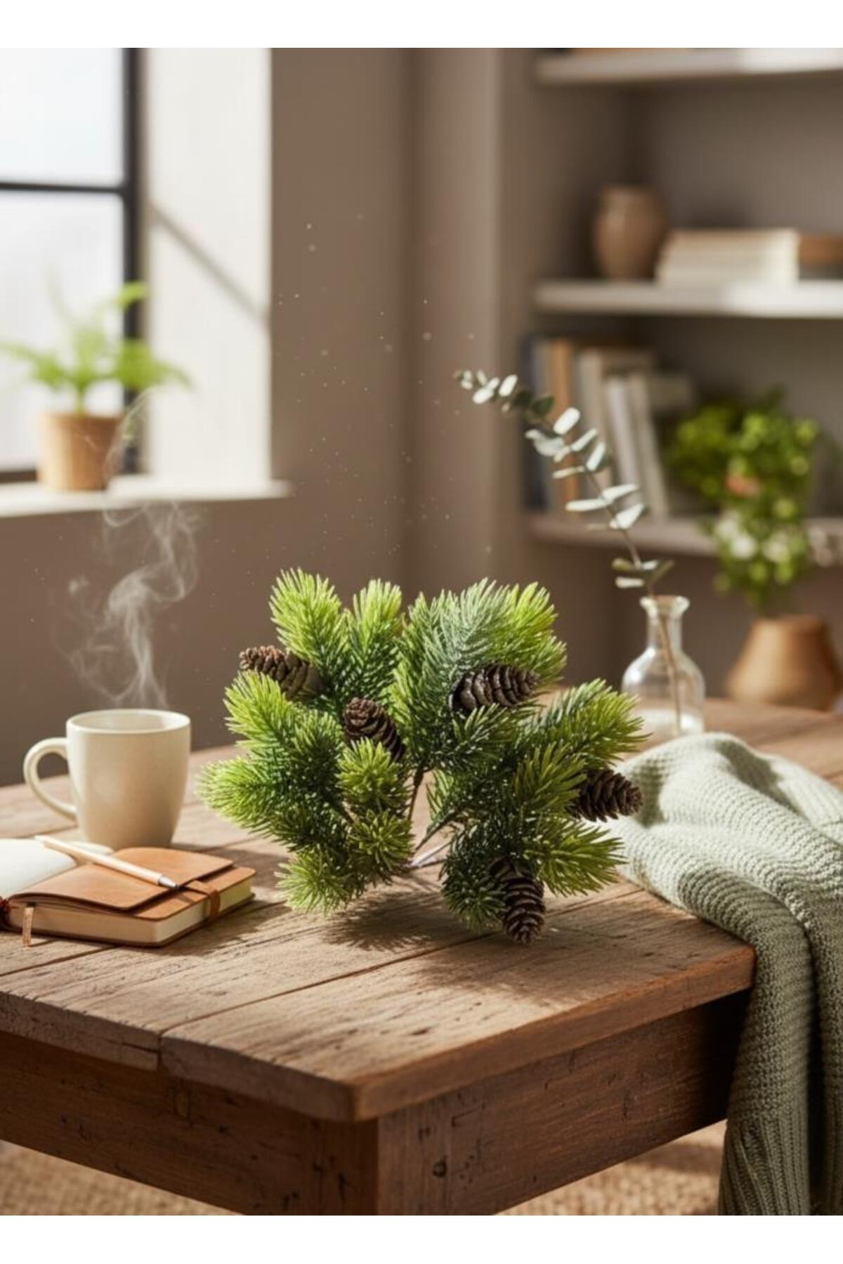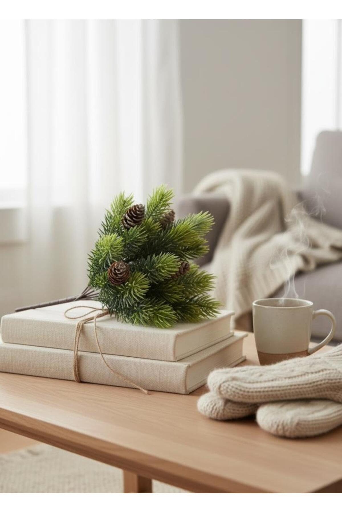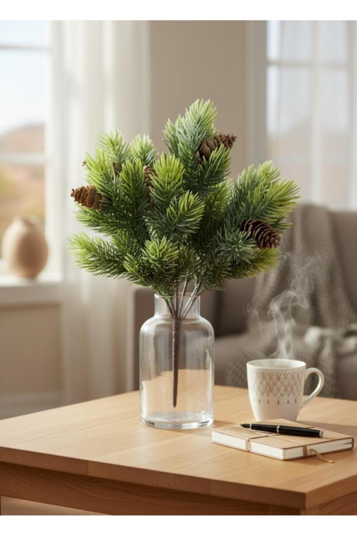 This bundle, which offers a natural appearance thanks to its realistic leaf texture and cone details, maintains its form for a long time with its maintenance-free structure.