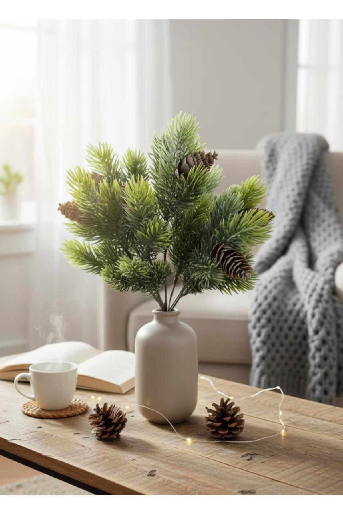 Uses: 🏡 Living room and table top decoration🌲 Winter concept and Christmas decorations🏨 Cafe, restaurant and hotel decoration🎀 Organization and concept decorations Decorative🎁 gift with natural theme Product Features: Product Type: Artificial pine cone bundle Color: Pastel green Size: 30 × 20 cm Detail: Natural design with cones Material: Durable plastic and artificial plant material Usage: Indoor Care: No need Artificial Pine Cone Bundle with its natural appearance and elegant design gives your living spaces a calm, warm and aesthetic touch.