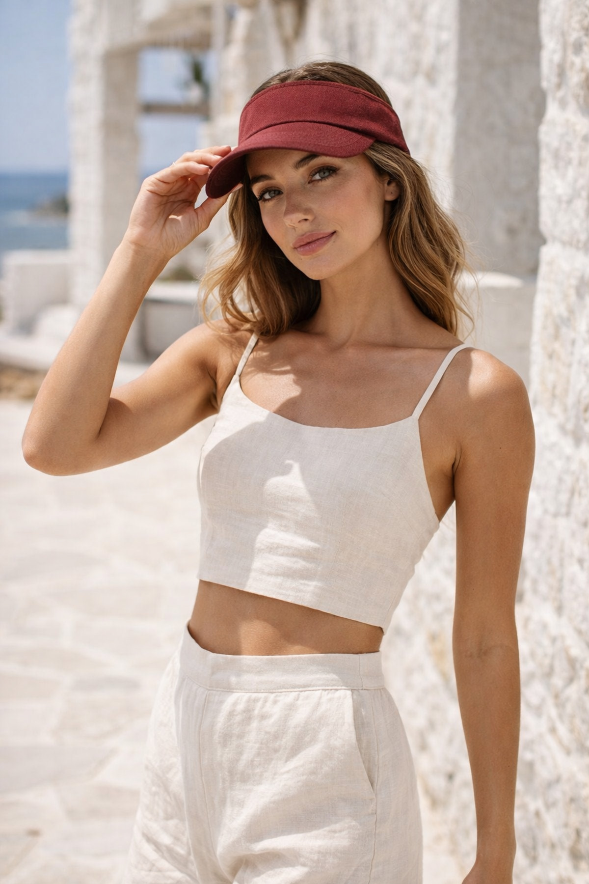 Luminos Butik Claret Red Extended Visor Top Open Hat - Sunscreen Stylish Hood Spk13 | ByTR