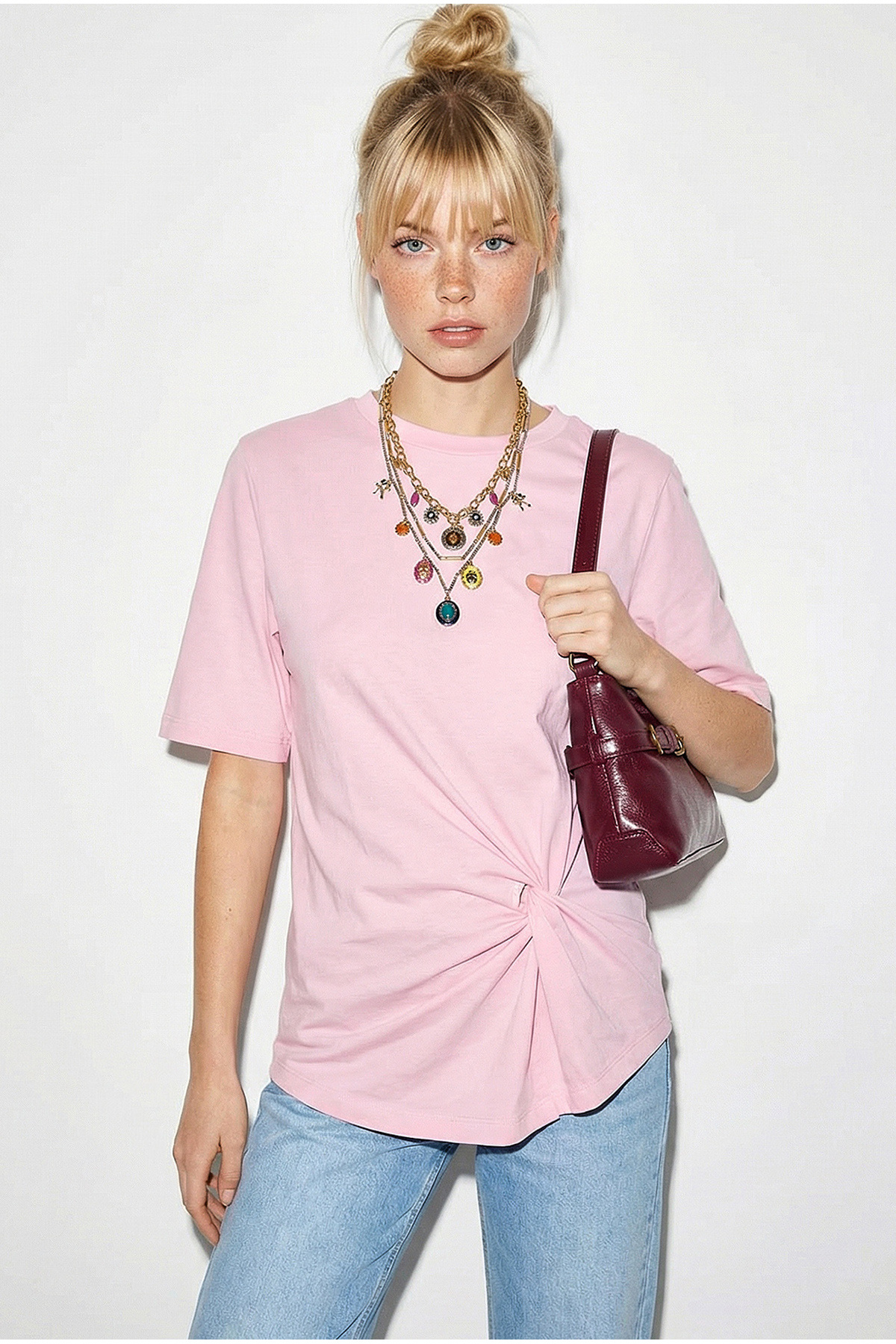 Women's Shoulder Detailed Knot Detailed Short Sleeve T-Shirt 1067 60286068