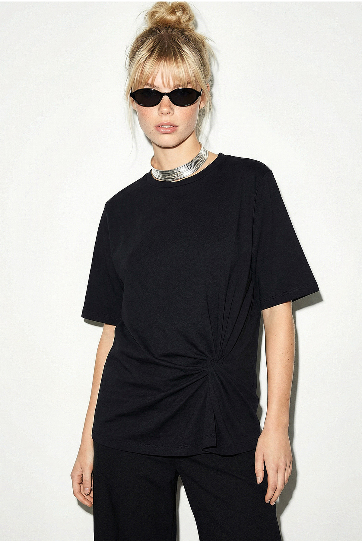 While the knot detail on the side gives the product a movement and a different appearance, it provides a more fit posture to the body.