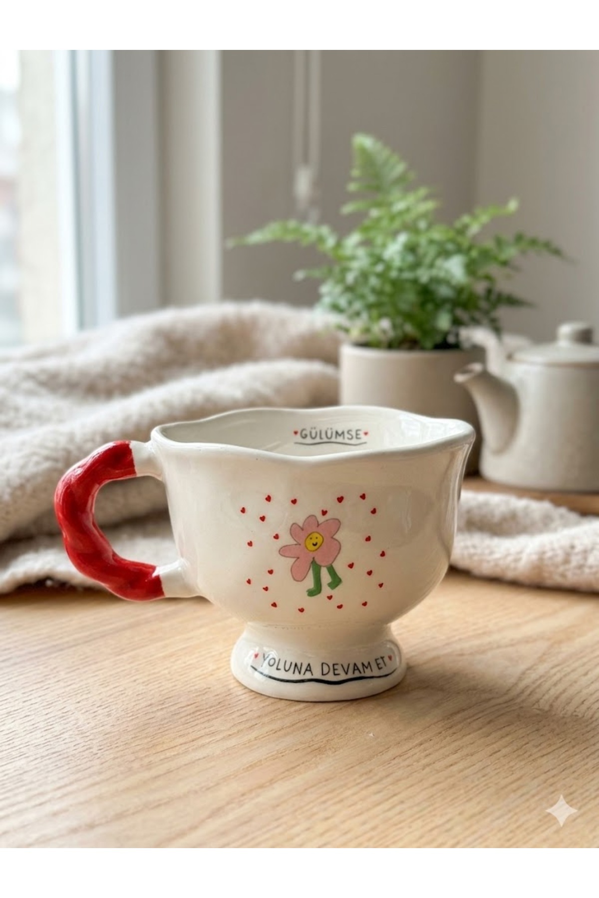 PALTO TASARIM Smile, Move On! Printed Handmade Cream Shiny Ballerina Mug - Handcrafted Gift Mug Ba | ByTR