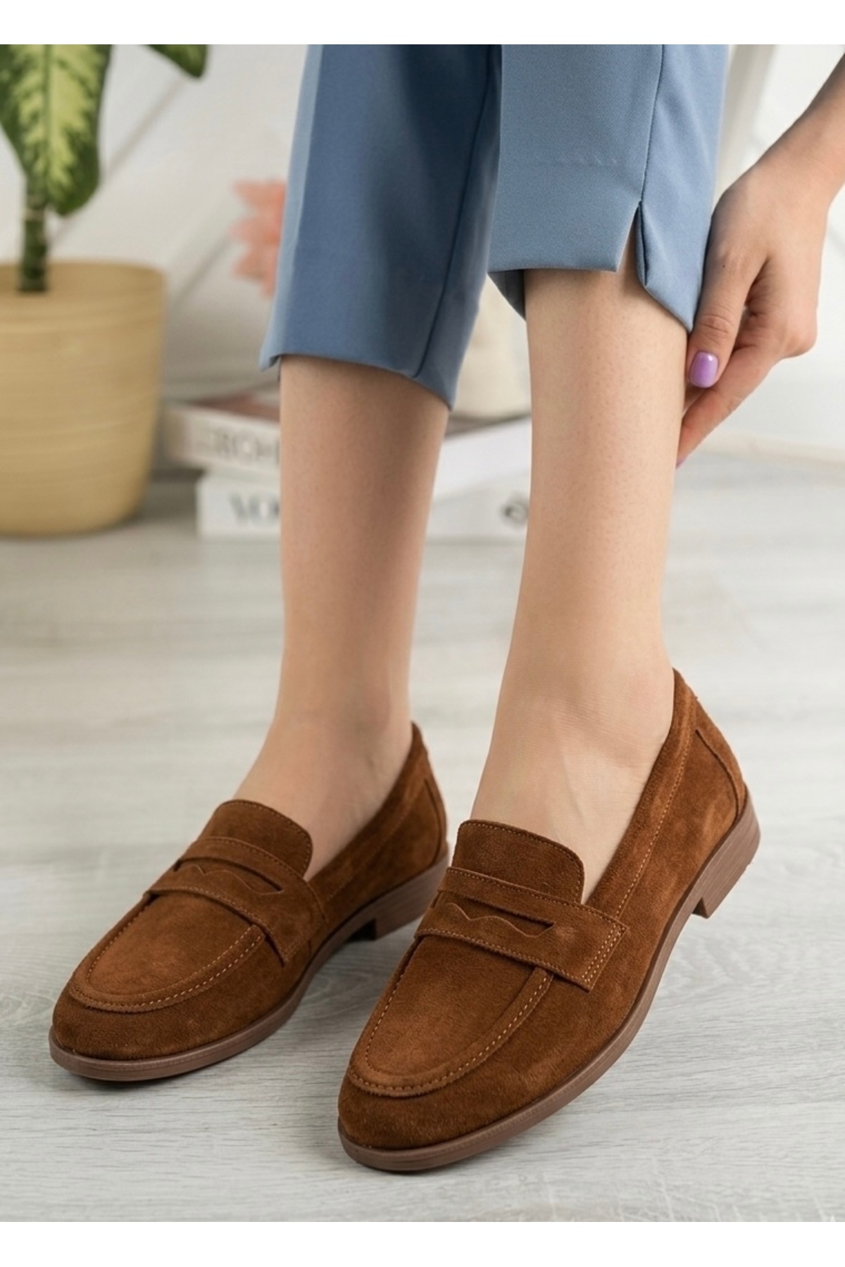 While giving an elegant look with its suede texture, it adapts to all kinds of clothes with its plain pattern.