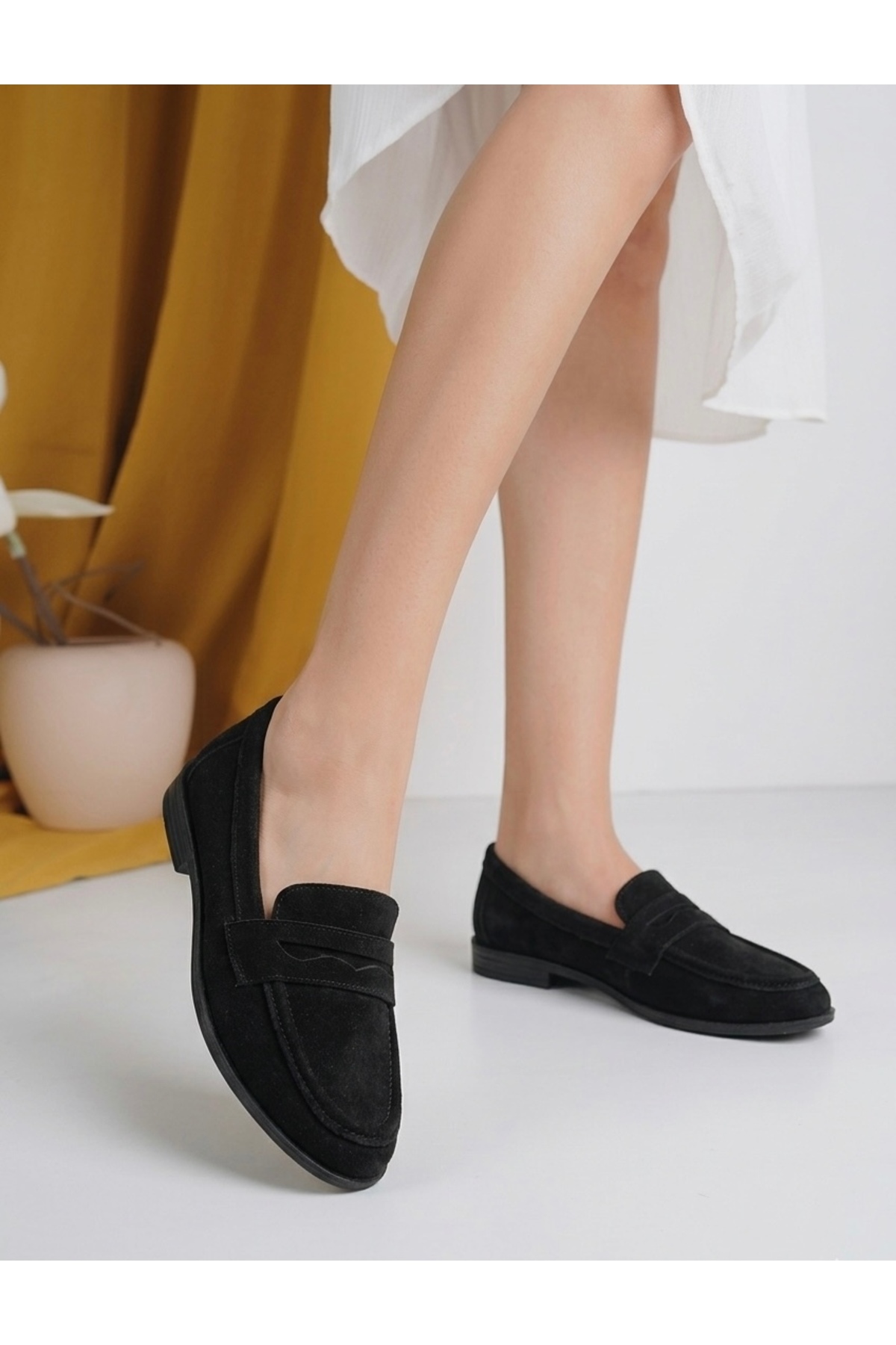 It offers comfort throughout the day with its flat-heeled structure and short heel length (1-4 cm).