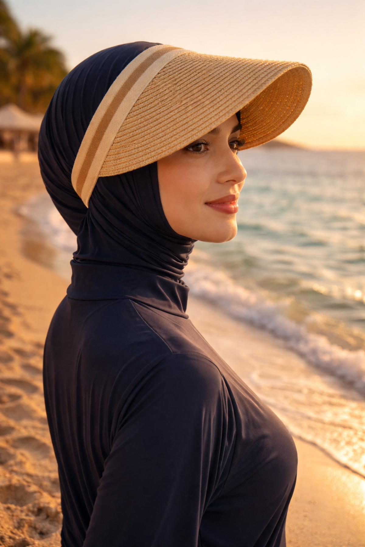 Protect yourself from the sun and complete your style with the wicker visor hat, which is indispensable in the summer months. ☀️ Thanks to its crown model design suitable for the hijab, it offers a comfortable use without tightening the head.