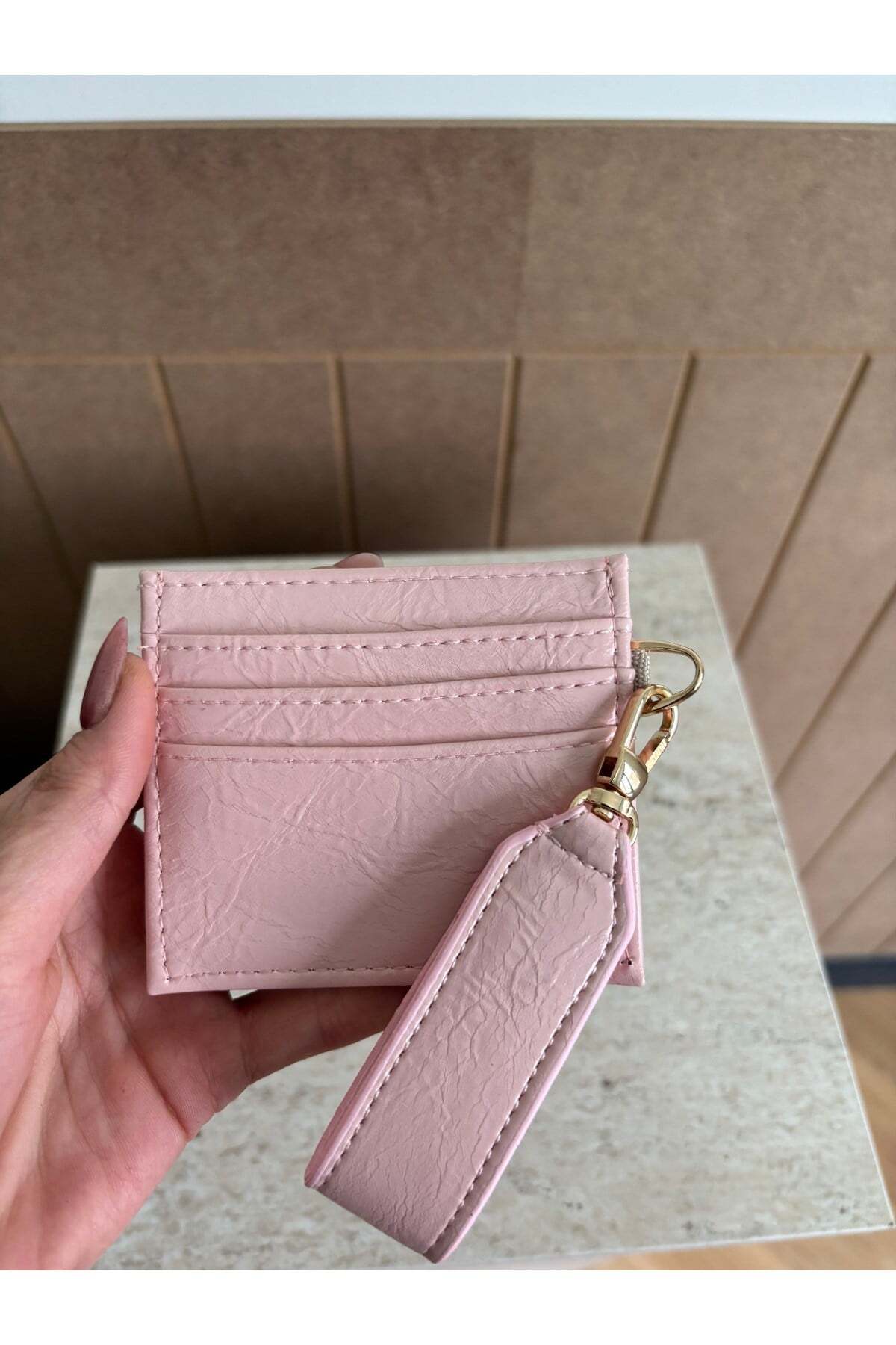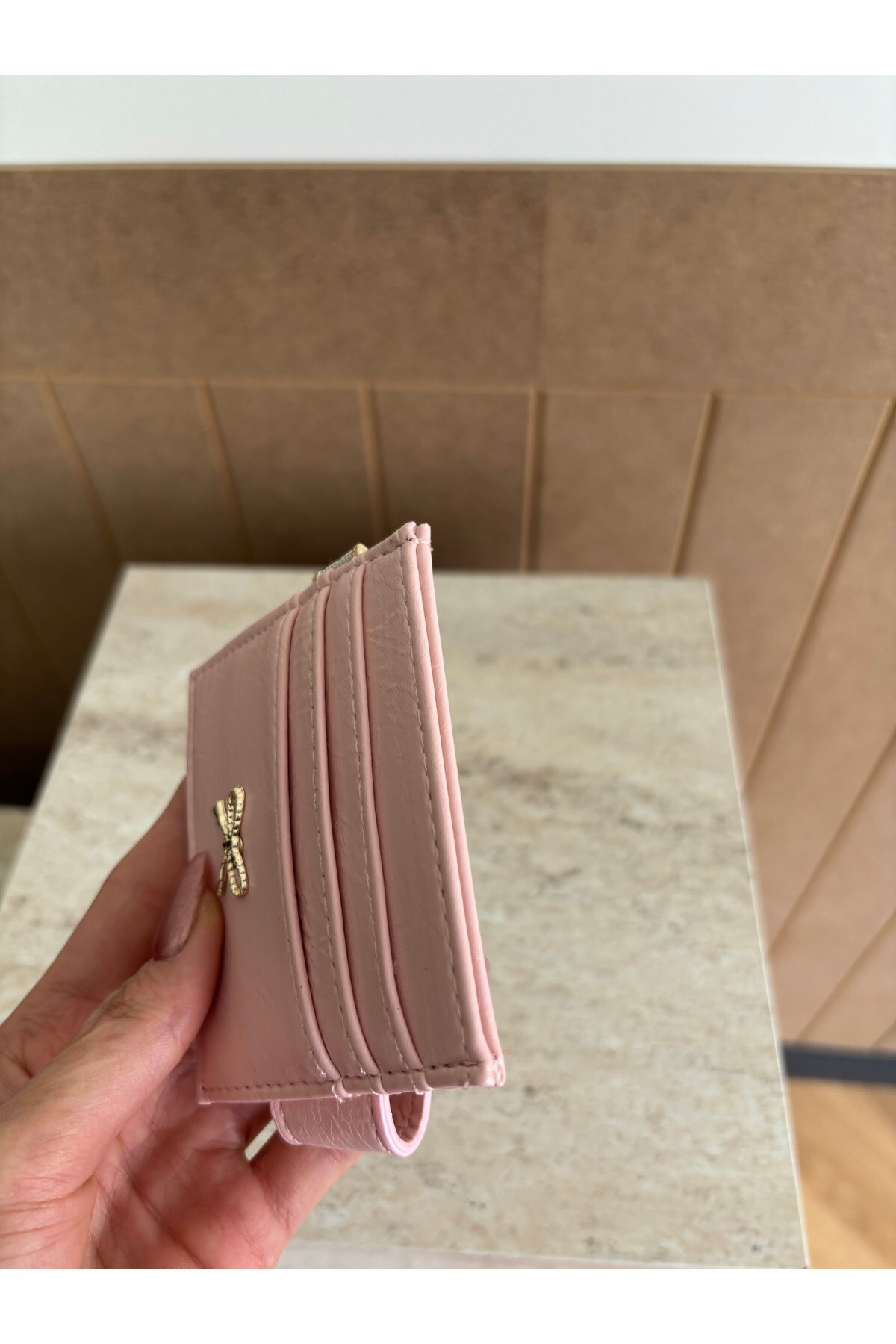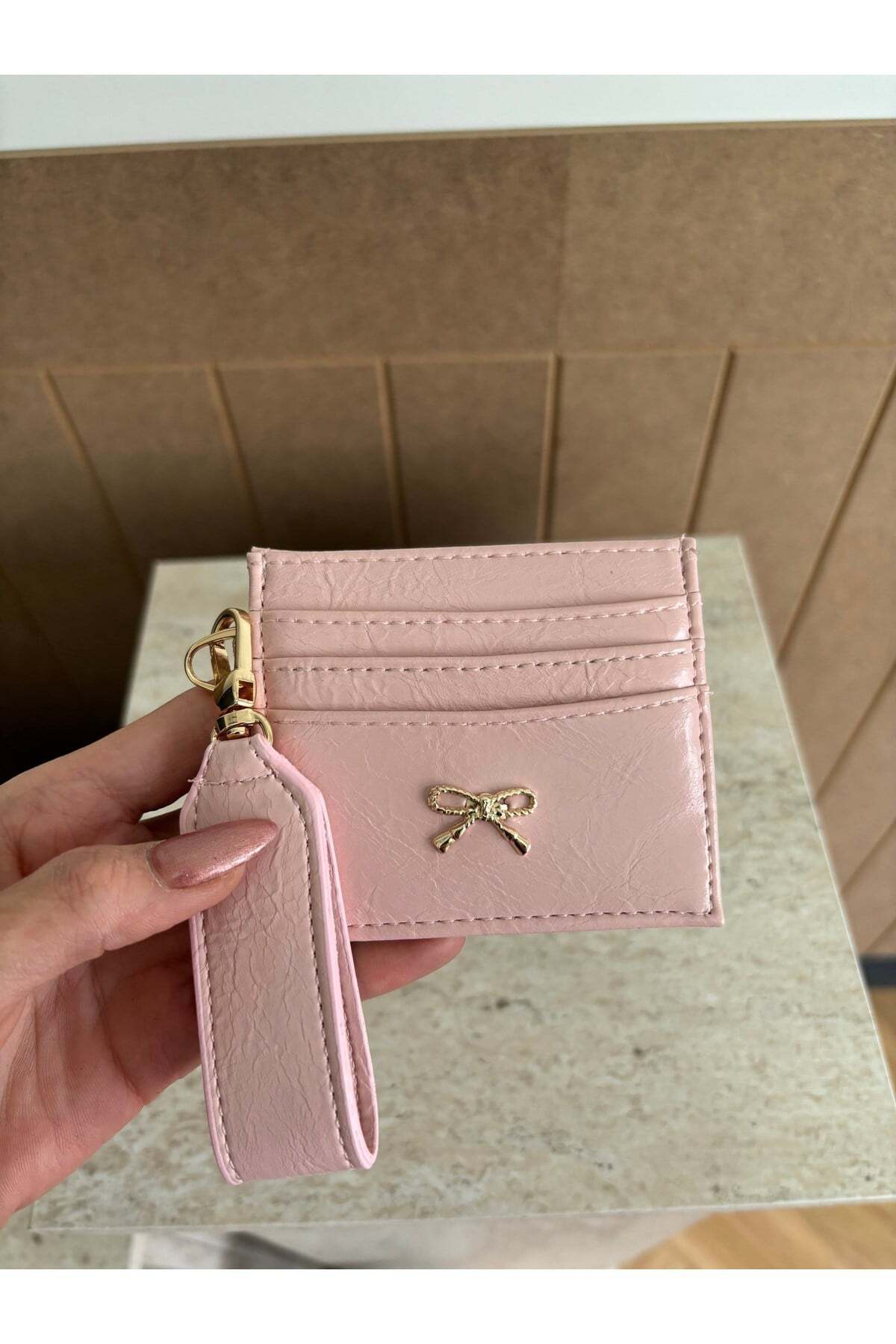 lalettobags Women's Pink Bow Detailed Shiny Faux Leather Card Holder with Keychain | ByTR