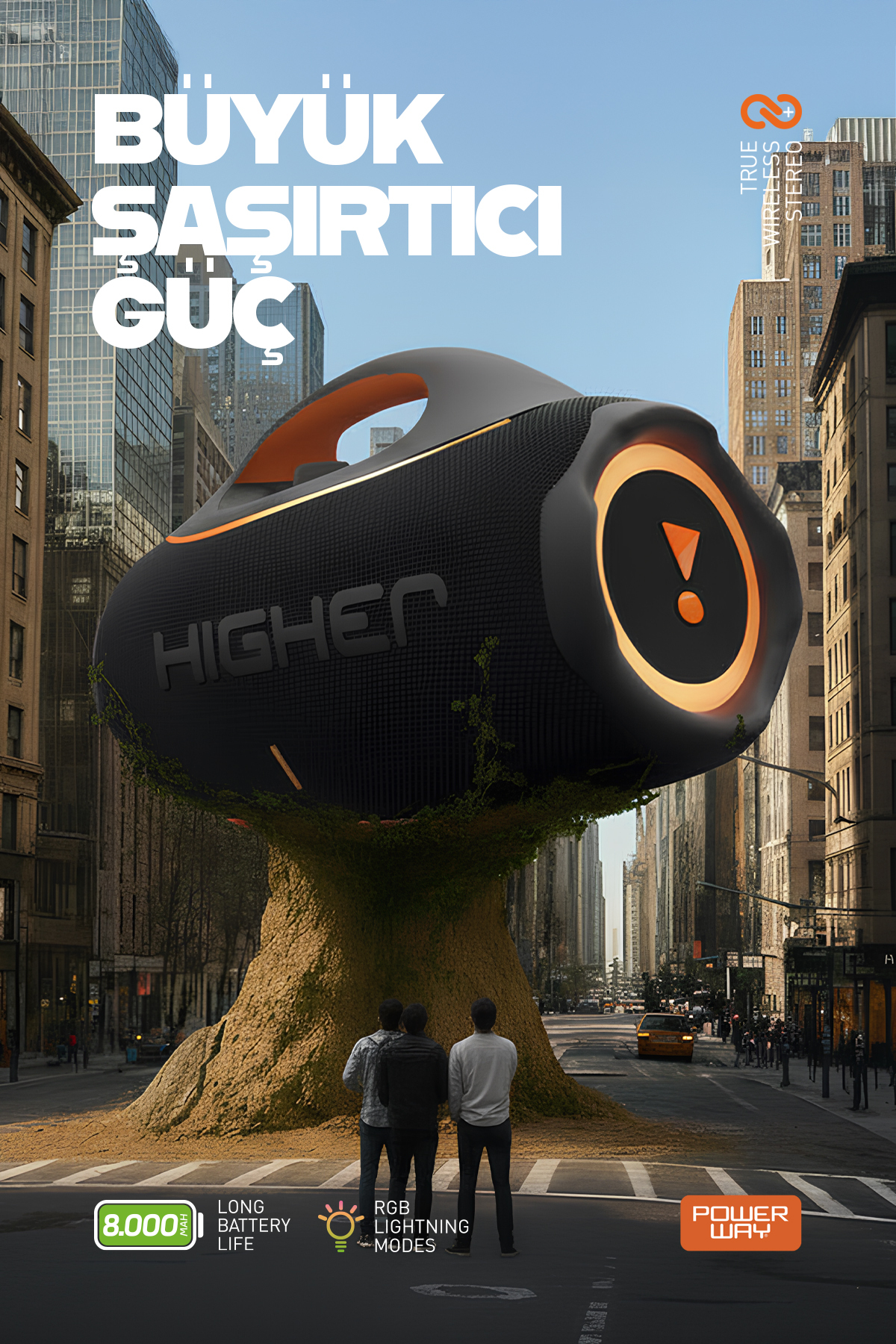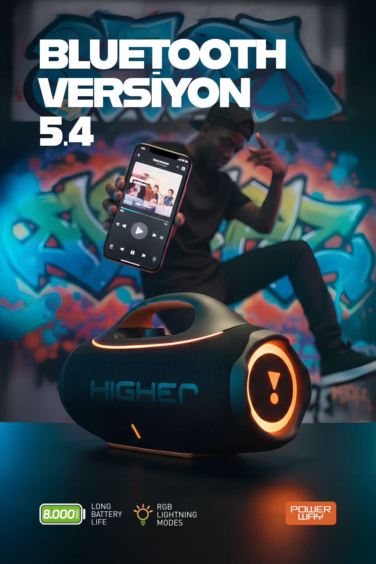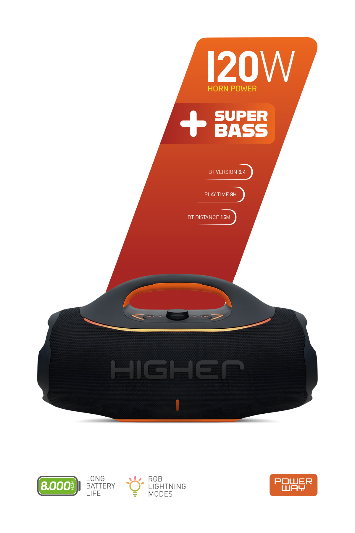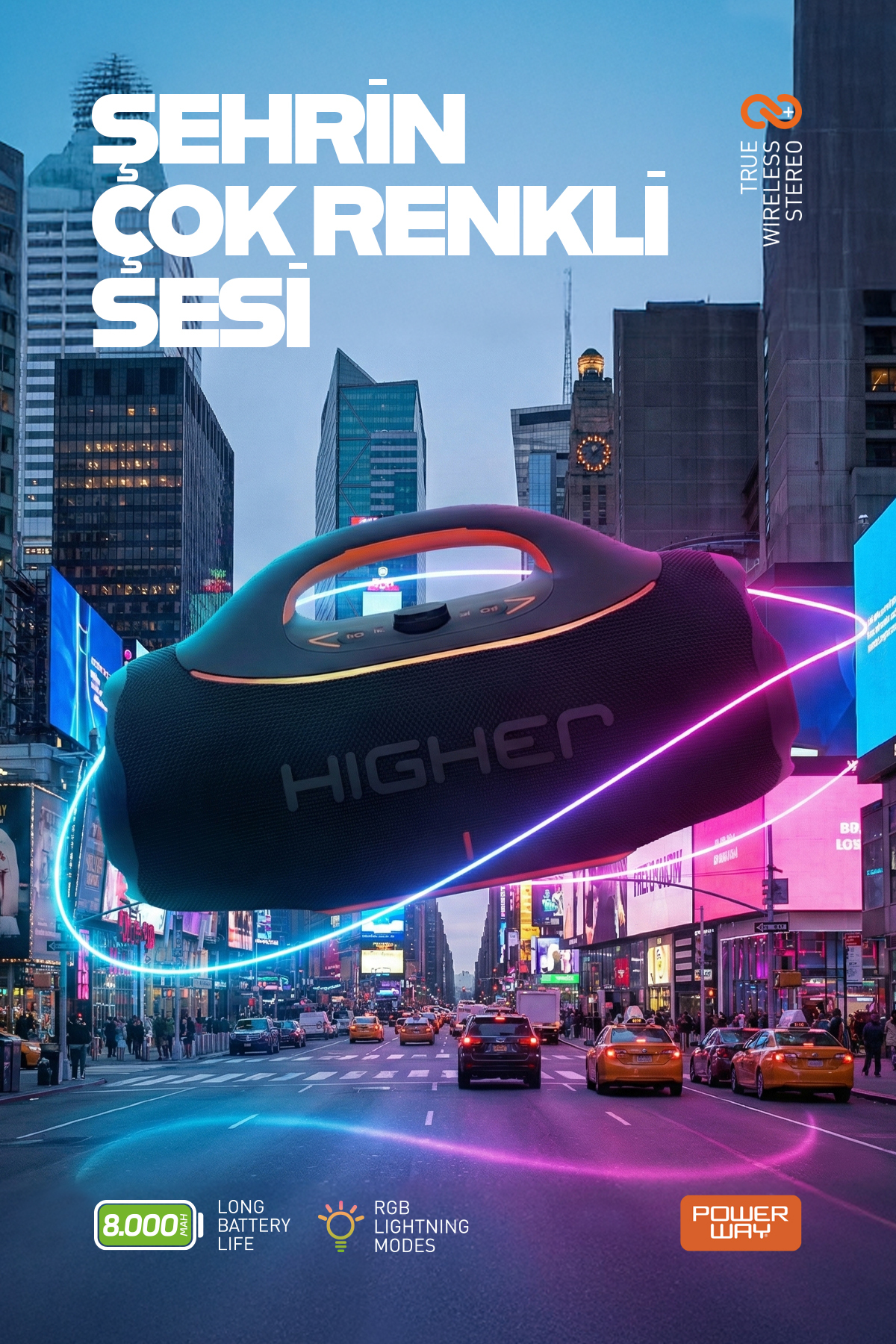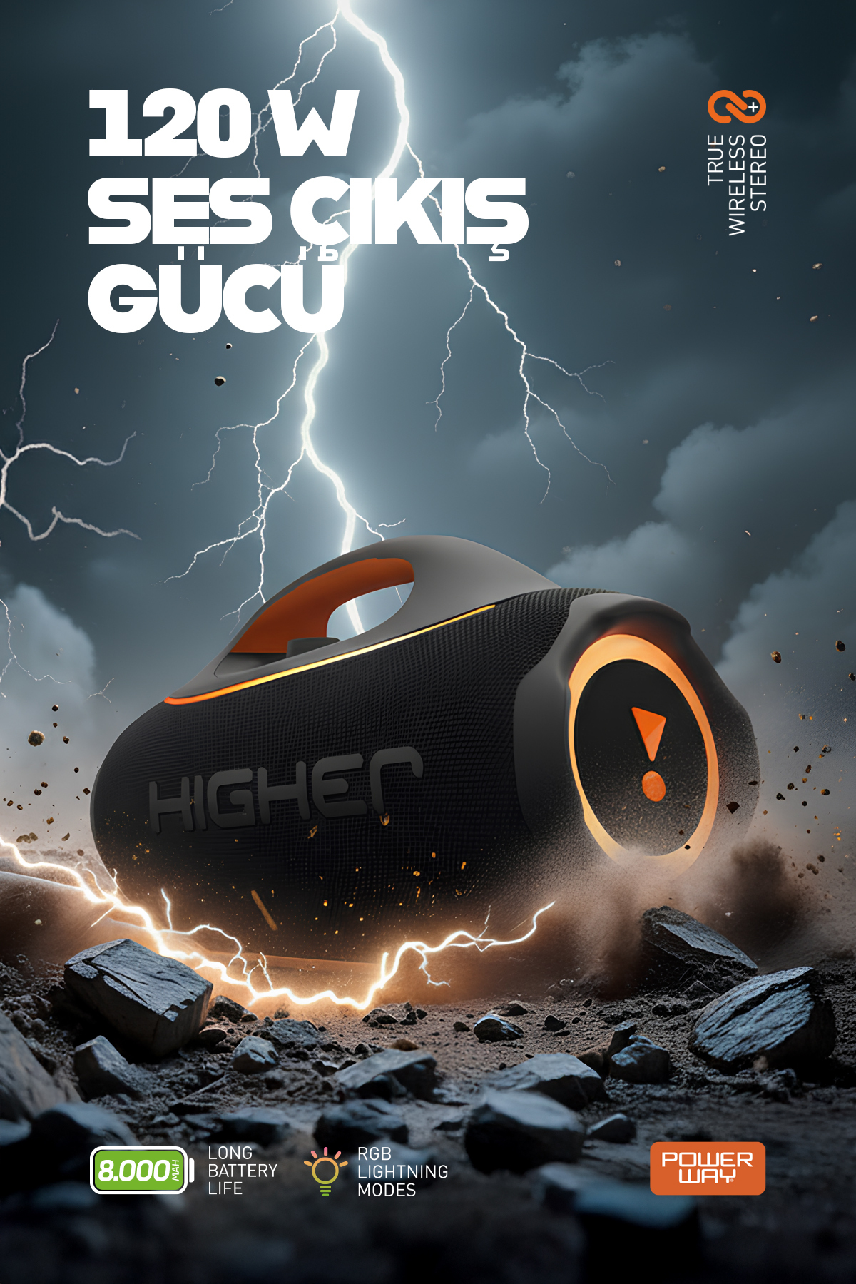 POWERWAY Higher 120W 4x Power Usb Memory Card Aux Fm Led Illuminated Bluetooth Speaker 8000 mAh Sound Bomb | ByTR