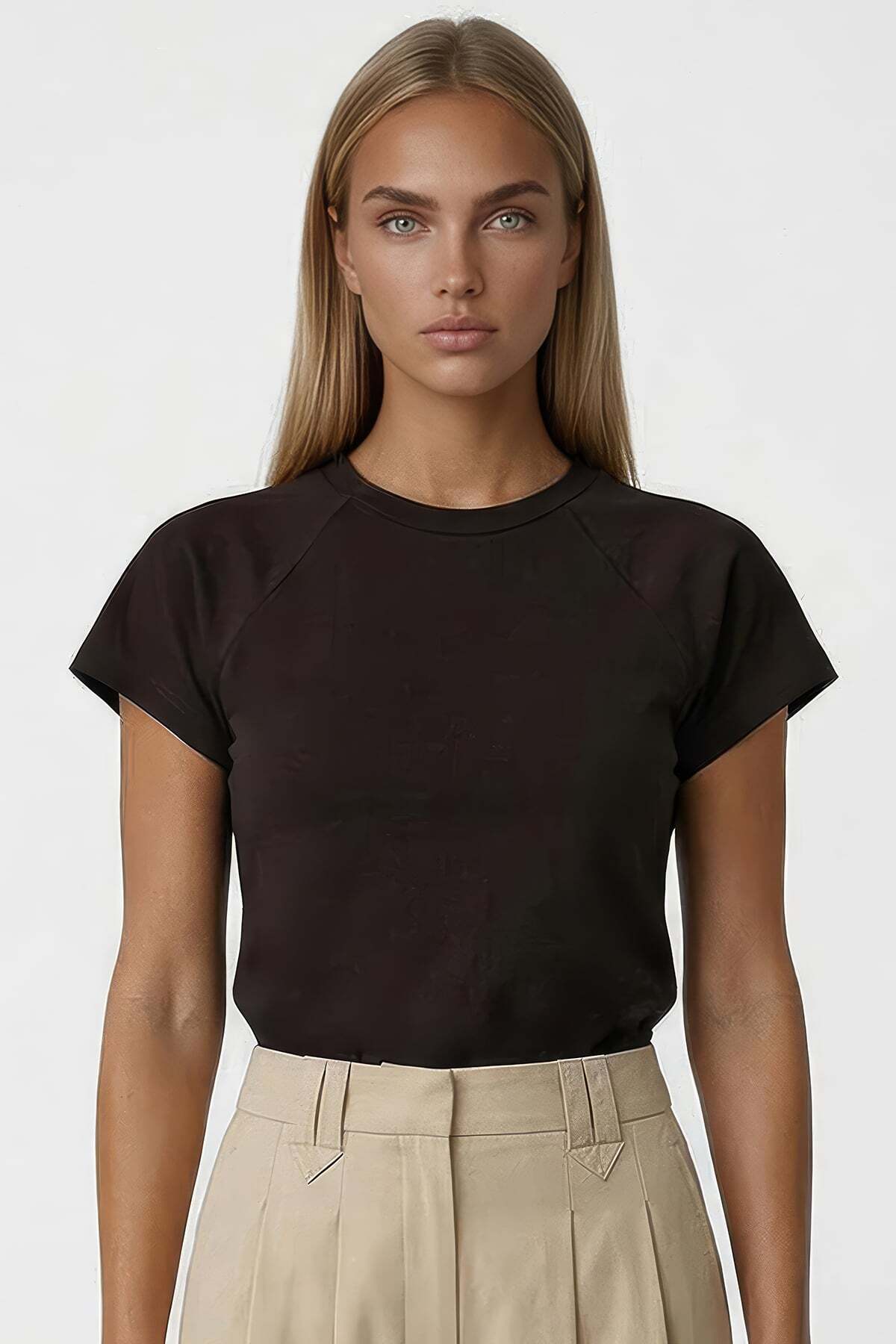 Designed with Crew Neck Form and Raglan Sleeve Cut, this Blouse offers a flexible structure that adapts to the body thanks to its lycra knitted fabric structure.