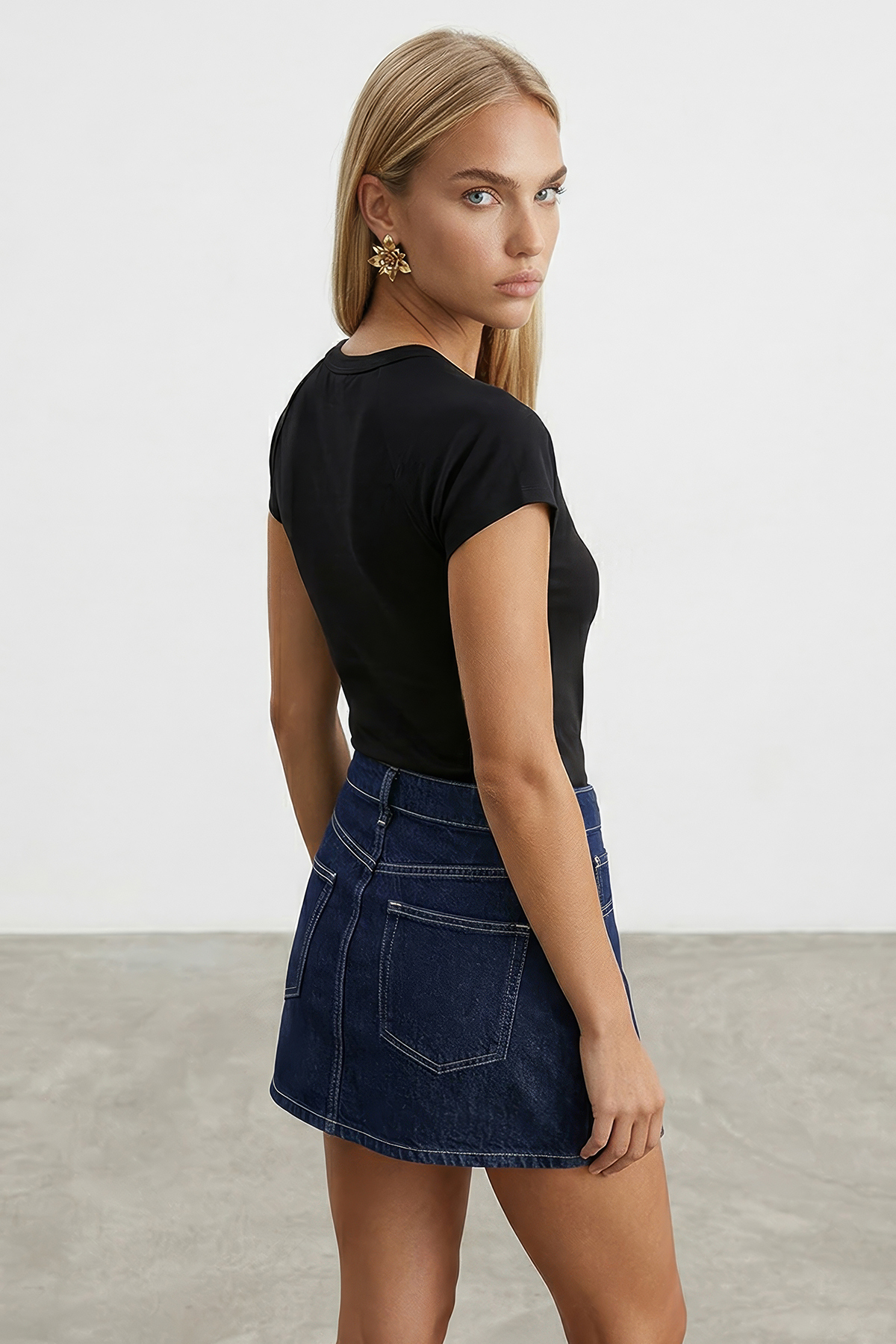 It creates a balanced silhouette with its short arm detail and simple design.